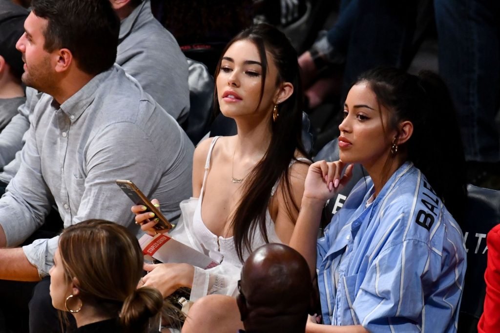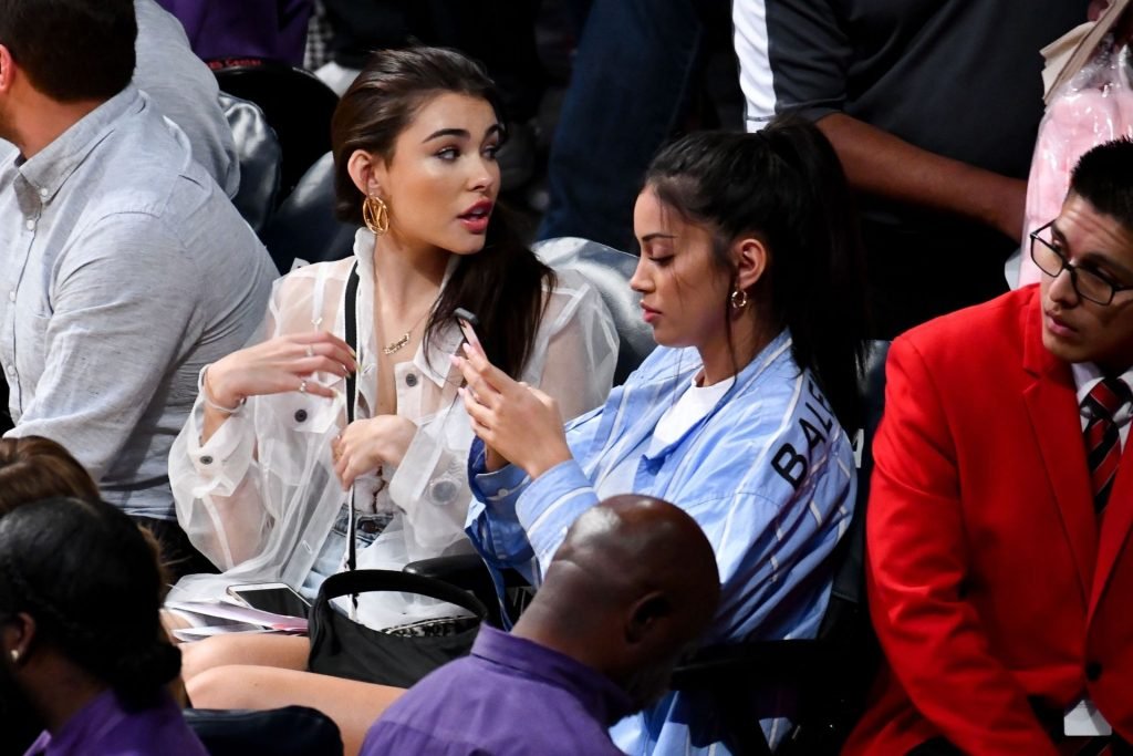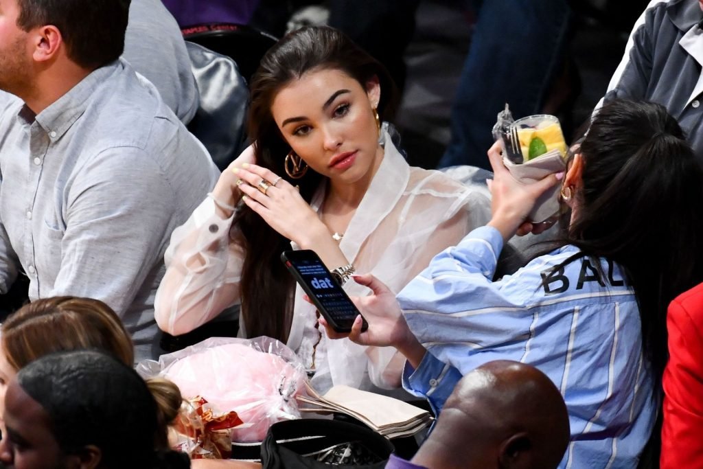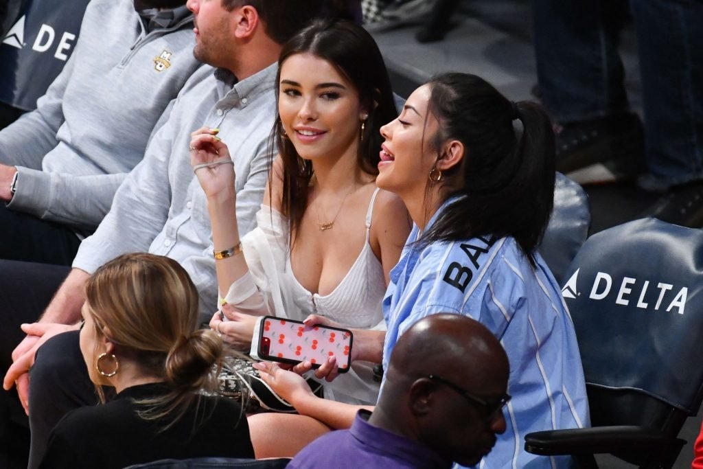 La cantante Madison Beer mostra il suo décolleté indossando un top bianco durante la partita Los Angeles Lakers vs Phoenix Suns a Los Angeles, 27/01/2019.