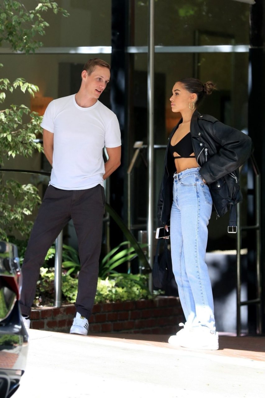 La cantante Madison Beer ha una conversazione animata dopo un incontro di lavoro fuori dal Sunset Marquis a West Hollywood, 19/06/2019. La bellezza era di buon umore, tirando fuori la lingua mentre saliva in macchina per andarsene.