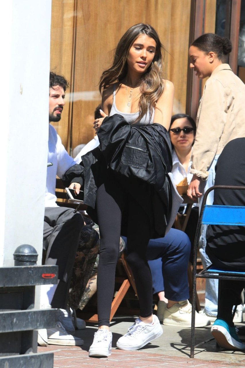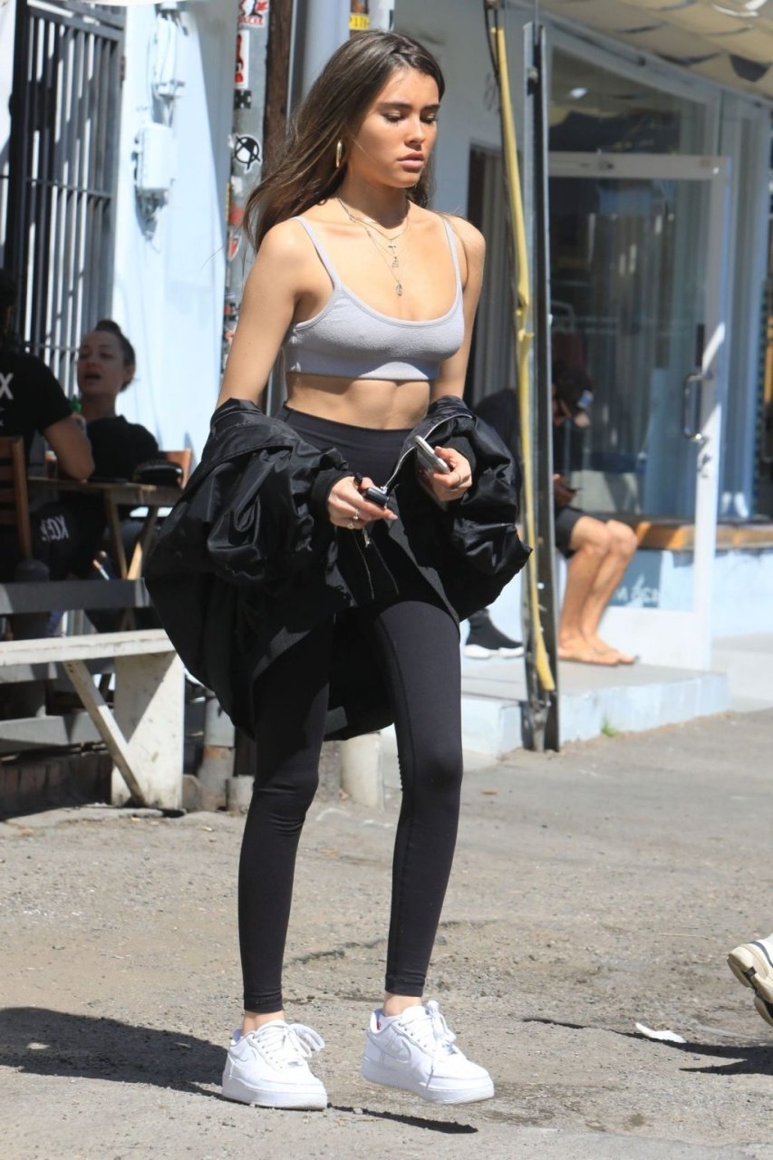 Madison Beer mostra il suo fisico e le sue curve con un’amica a West Hollywood, 04/06/2019. La cantante ha indossato un reggiseno sportivo, leggings e sneakers bianche.