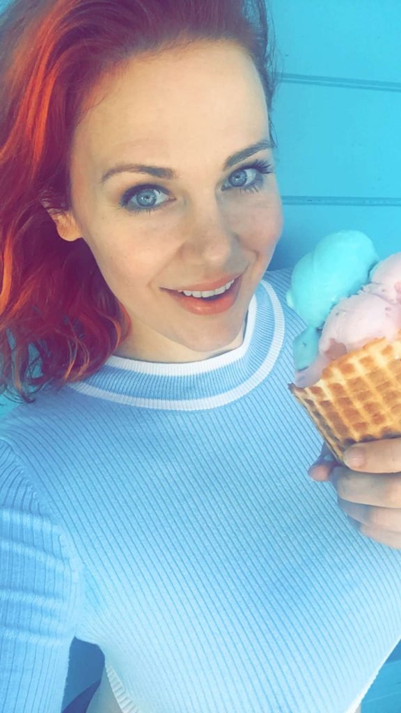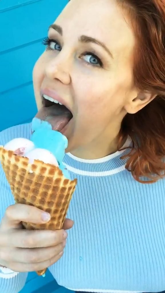 Maitland Ward Baxter mostra le sue abilità utili su un gelato – Instagram, Snapchat, 17/07/2017. Maitland Ward è un’attrice americana (Beautiful). Età: 40.