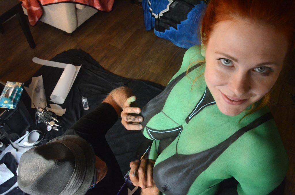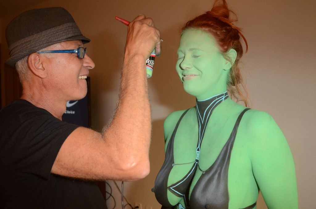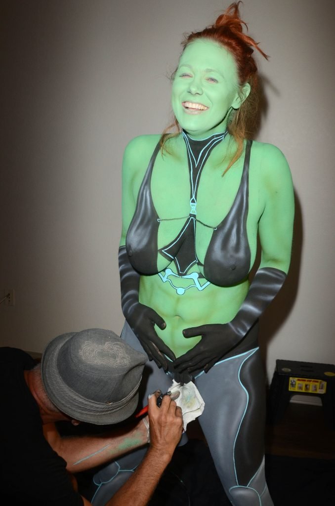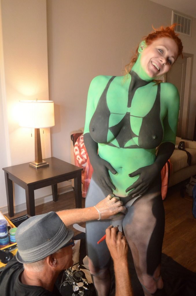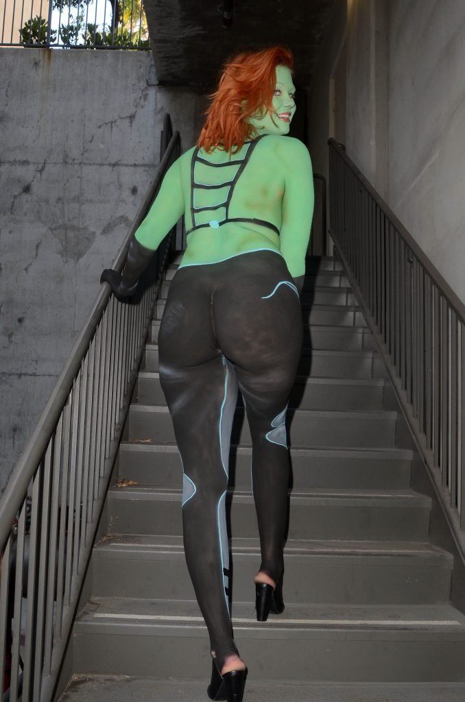 Maitland Ward ha il suo personaggio personalizzato chiamato “Vetra” dipinto sul suo corpo nudo dall’artista aerografo Luciano Paesani prima di dirigersi verso il centro di San Diego per il San Diego Comic-Con, 21/07/2017.
