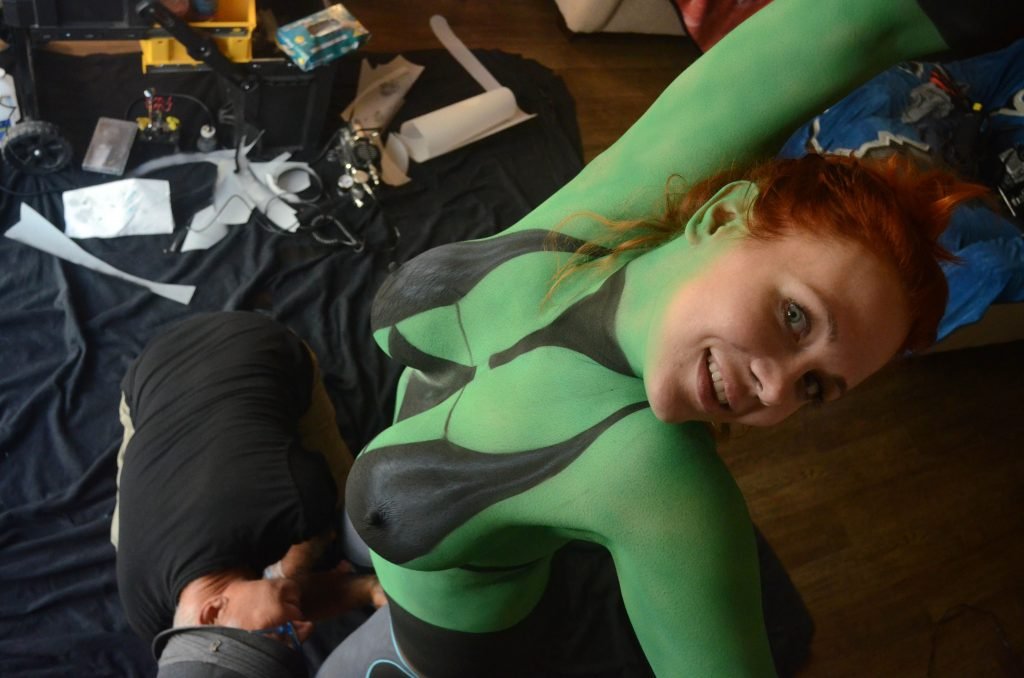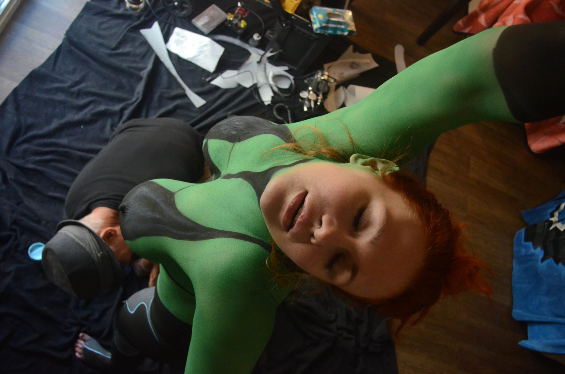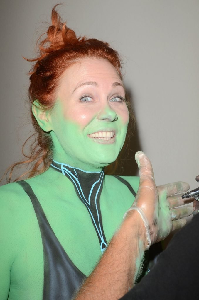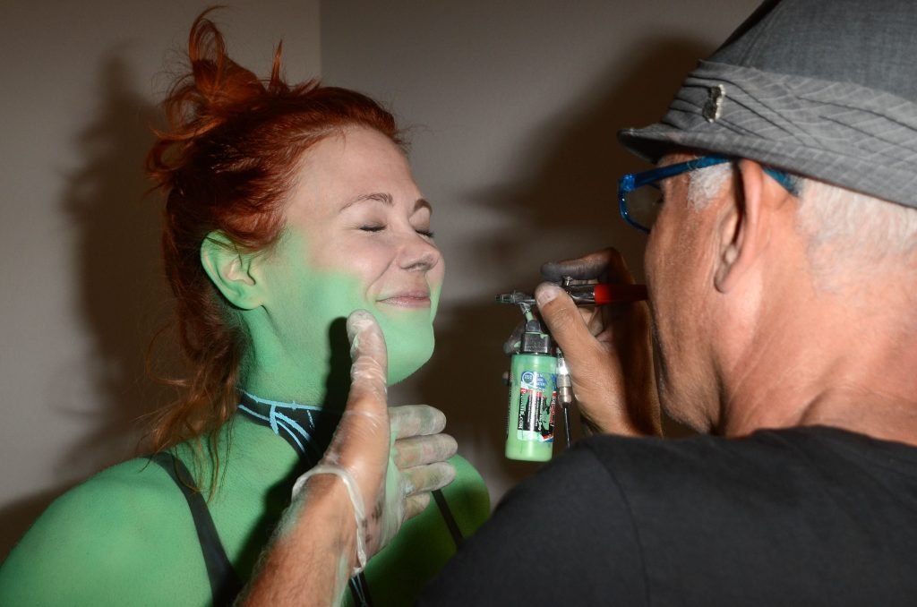 Maitland Ward ha il suo personaggio personalizzato chiamato “Vetra” dipinto sul suo corpo nudo dall’artista aerografo Luciano Paesani prima di dirigersi verso il centro di San Diego per il San Diego Comic-Con, 21/07/2017.