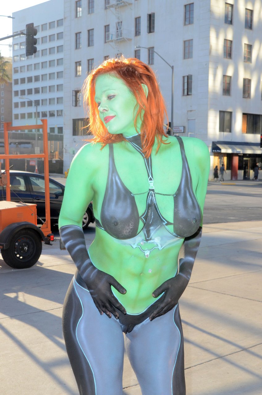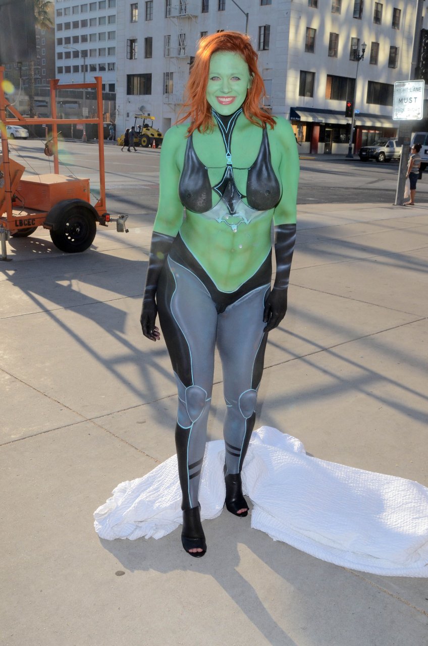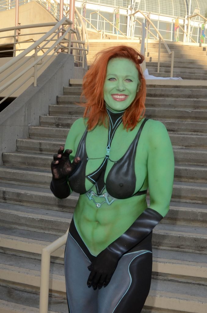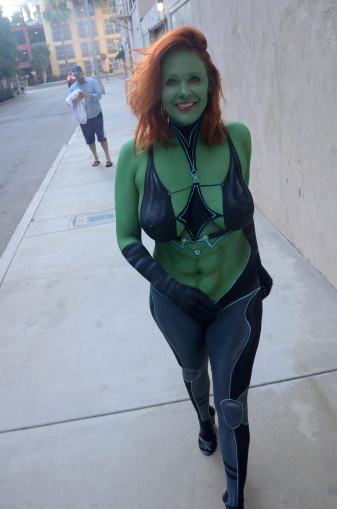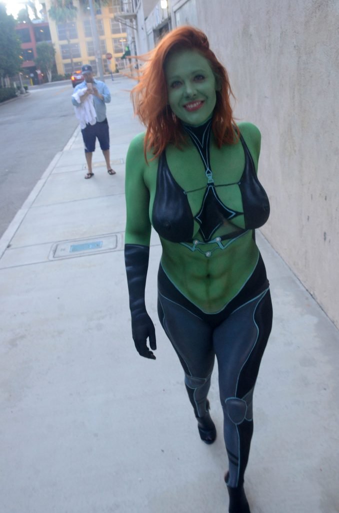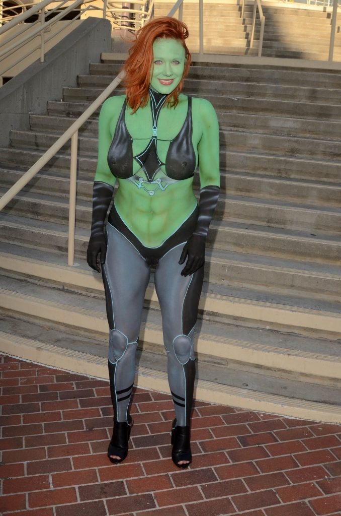 Che lei sia una provocatrice o meno, che sia una 'cosplayer' o una fashionista o meno, c'è un fatto indiscutibile... questa donna non sarebbe mai ammessa da nessuna parte vicino al Comic Con con questo 'outfit'. Anche se le persone lì sono abbastanza permissive riguardo agli abiti che indossano, sono piuttosto rigide (senza gioco di parole) riguardo alla nudità. Adrianne Curry, che ha molta più credibilità nella comunità cosplay e Comic Con, è stata invitata a coprirsi o andarsene qualche anno fa per aver indossato quelli che erano, fondamentalmente, shorts molto corti. Oltre al fatto che questo è ovviamente body paint — voglio dire, dai, i suoi capezzoli e le sue labbra sono visibili — non le sarebbe permesso entrare in nessuna delle sale. Il Comic Con ha un giusto mix di sensualità (ci sono stato e c'è parecchia pelle visibile, anche se non nudità). Questo va oltre ciò che chiunque troverebbe minimamente accettabile.