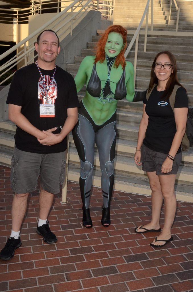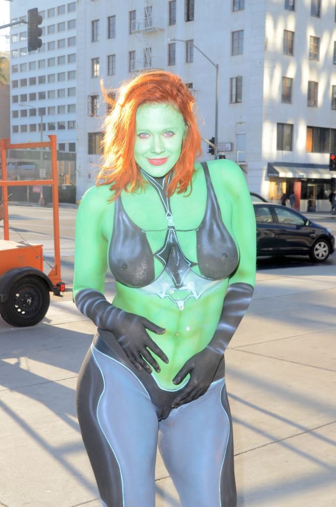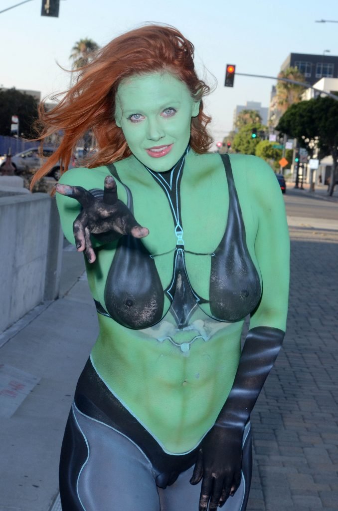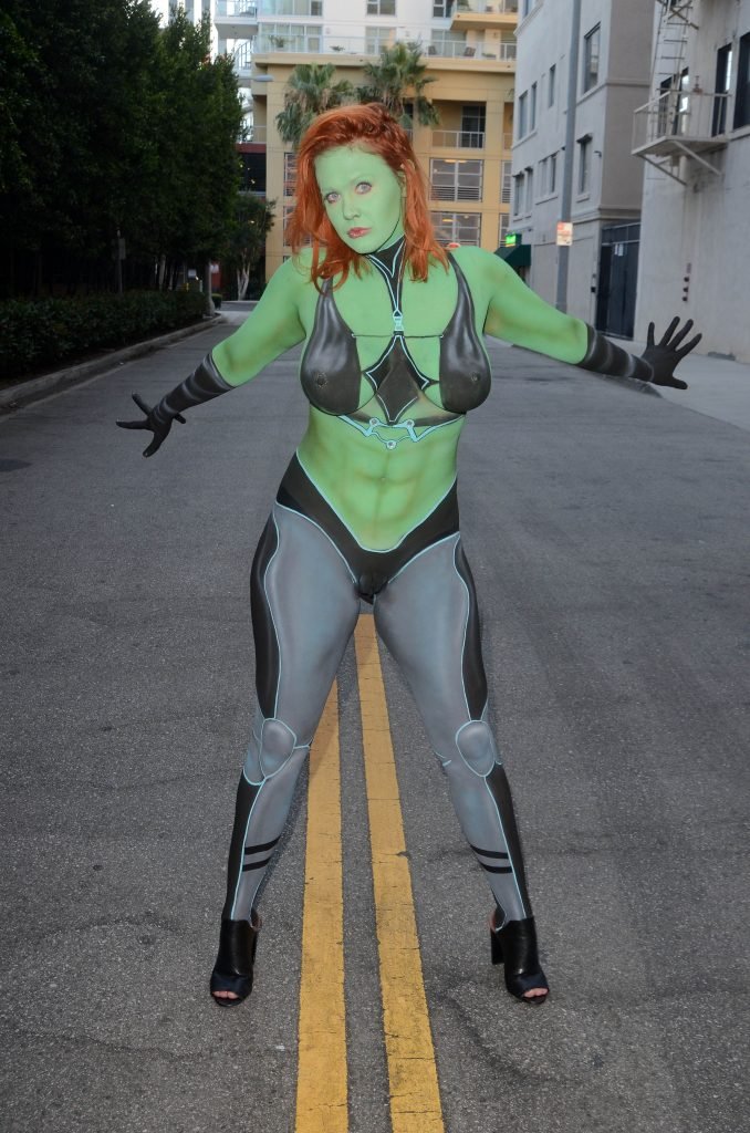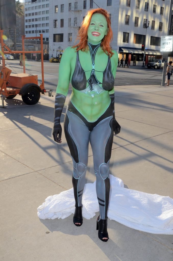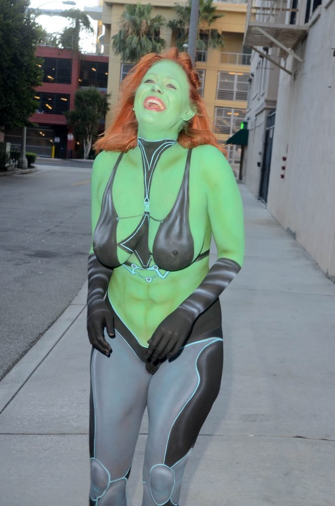 Che lei sia una provocatrice o meno, che sia una 'cosplayer' o una fashionista o meno, c'è un fatto indiscutibile... questa donna non sarebbe mai ammessa da nessuna parte vicino al Comic Con con questo 'outfit'. Anche se le persone lì sono abbastanza permissive riguardo agli abiti che indossano, sono piuttosto rigide (senza gioco di parole) riguardo alla nudità. Adrianne Curry, che ha molta più credibilità nella comunità cosplay e Comic Con, è stata invitata a coprirsi o andarsene qualche anno fa per aver indossato quelli che erano, fondamentalmente, shorts molto corti. Oltre al fatto che questo è ovviamente body paint — voglio dire, dai, i suoi capezzoli e le sue labbra sono visibili — non le sarebbe permesso entrare in nessuna delle sale. Il Comic Con ha un giusto mix di sensualità (ci sono stato e c'è parecchia pelle visibile, anche se non nudità). Questo va oltre ciò che chiunque troverebbe minimamente accettabile.