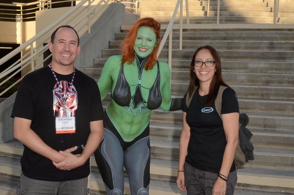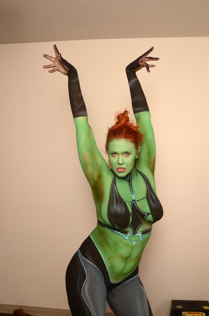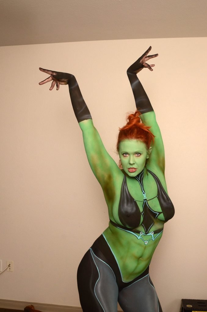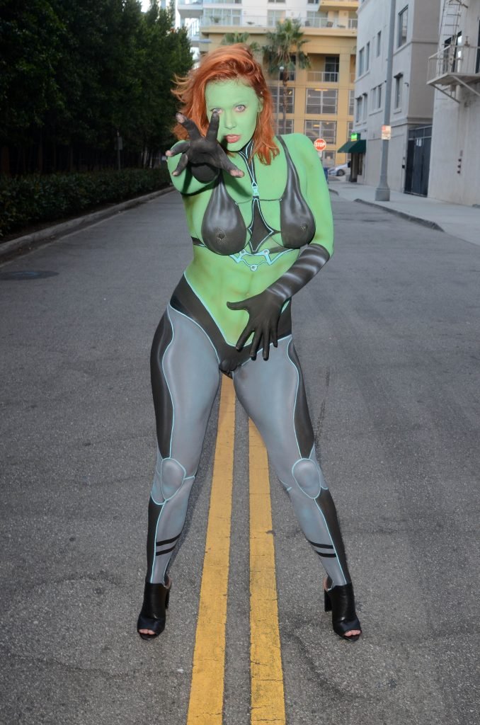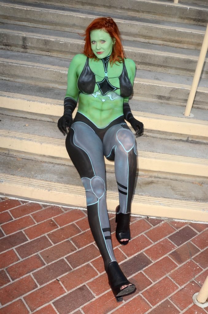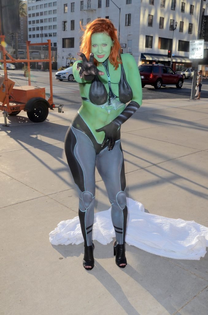Che lei sia una provocatrice o meno, che sia una 'cosplayer' o una fashionista o meno, c'è un fatto indiscutibile... questa donna non sarebbe mai ammessa da nessuna parte vicino al Comic Con con questo 'outfit'. Anche se le persone lì sono abbastanza permissive riguardo agli abiti che indossano, sono piuttosto rigide (senza gioco di parole) riguardo alla nudità. Adrianne Curry, che ha molta più credibilità nella comunità cosplay e Comic Con, è stata invitata a coprirsi o andarsene qualche anno fa per aver indossato quelli che erano, fondamentalmente, shorts molto corti. Oltre al fatto che questo è ovviamente body paint — voglio dire, dai, i suoi capezzoli e le sue labbra sono visibili — non le sarebbe permesso entrare in nessuna delle sale. Il Comic Con ha un giusto mix di sensualità (ci sono stato e c'è parecchia pelle visibile, anche se non nudità). Questo va oltre ciò che chiunque troverebbe minimamente accettabile.
