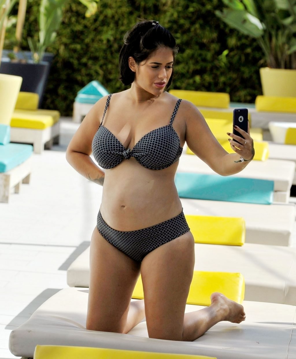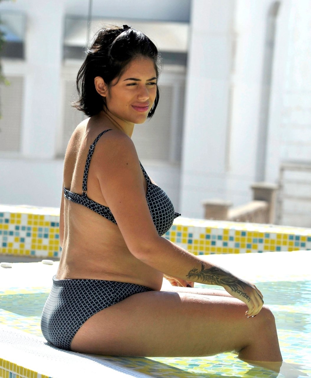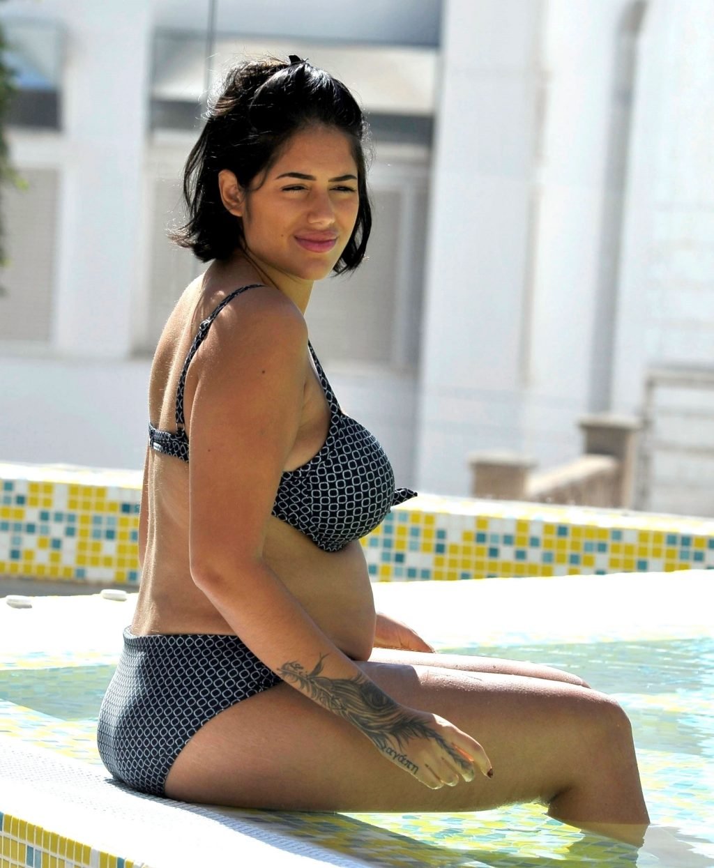 “Love Island” star e la incinta Malin Andersson fotografata a bordo piscina mentre mostra con orgoglio il suo pancione durante una vacanza in Spagna (ottobre 2018). Malin sembrava felice e rilassata, godendosi il sole spagnolo mentre faceva un tuffo in piscina e scattava qualche selfie.
