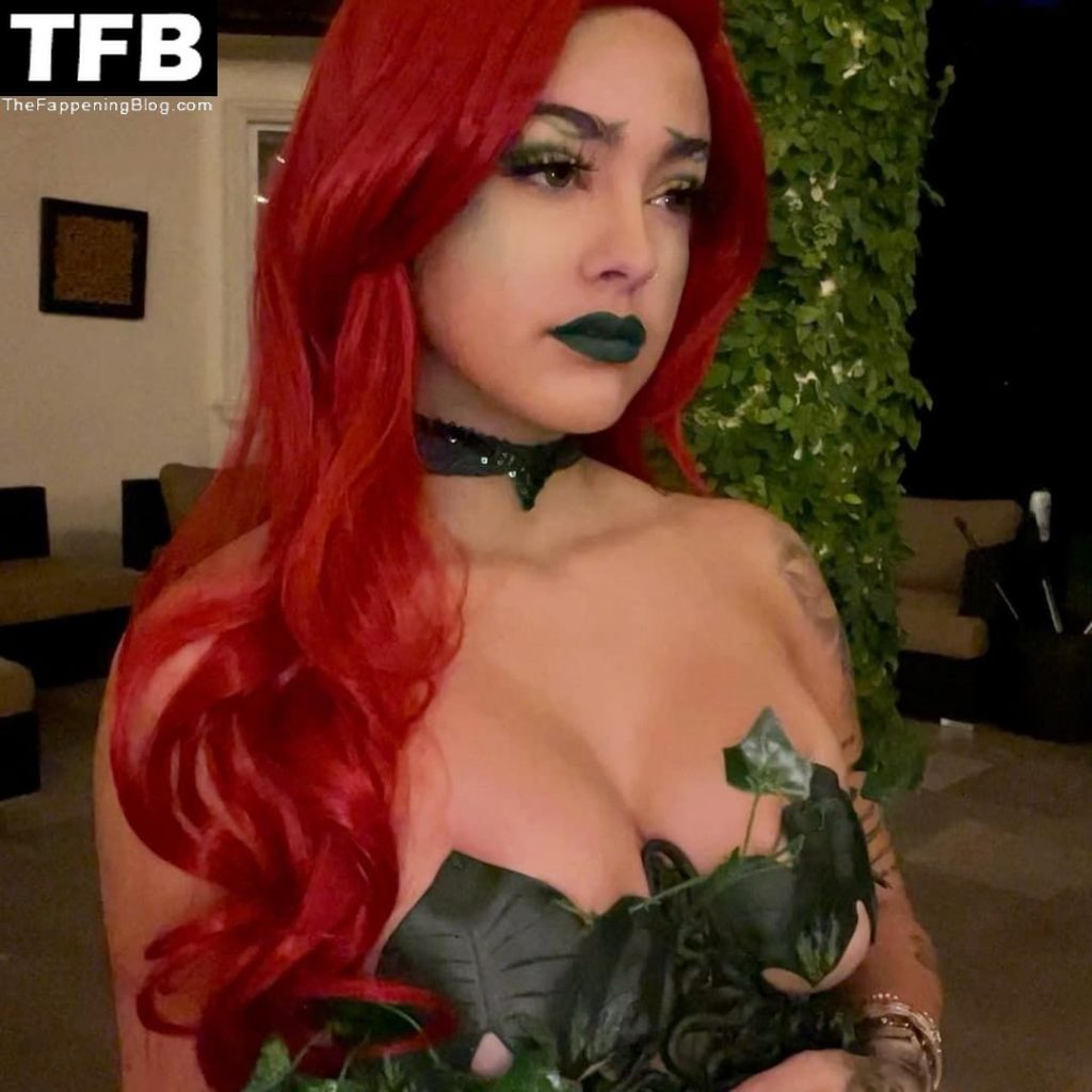 La star di TikTok Malu Trevejo mostra il suo seno, posando con un caldo costume di Halloween da “Poison Ivy” con una scollatura profonda – Instagram, 26/10/2021.