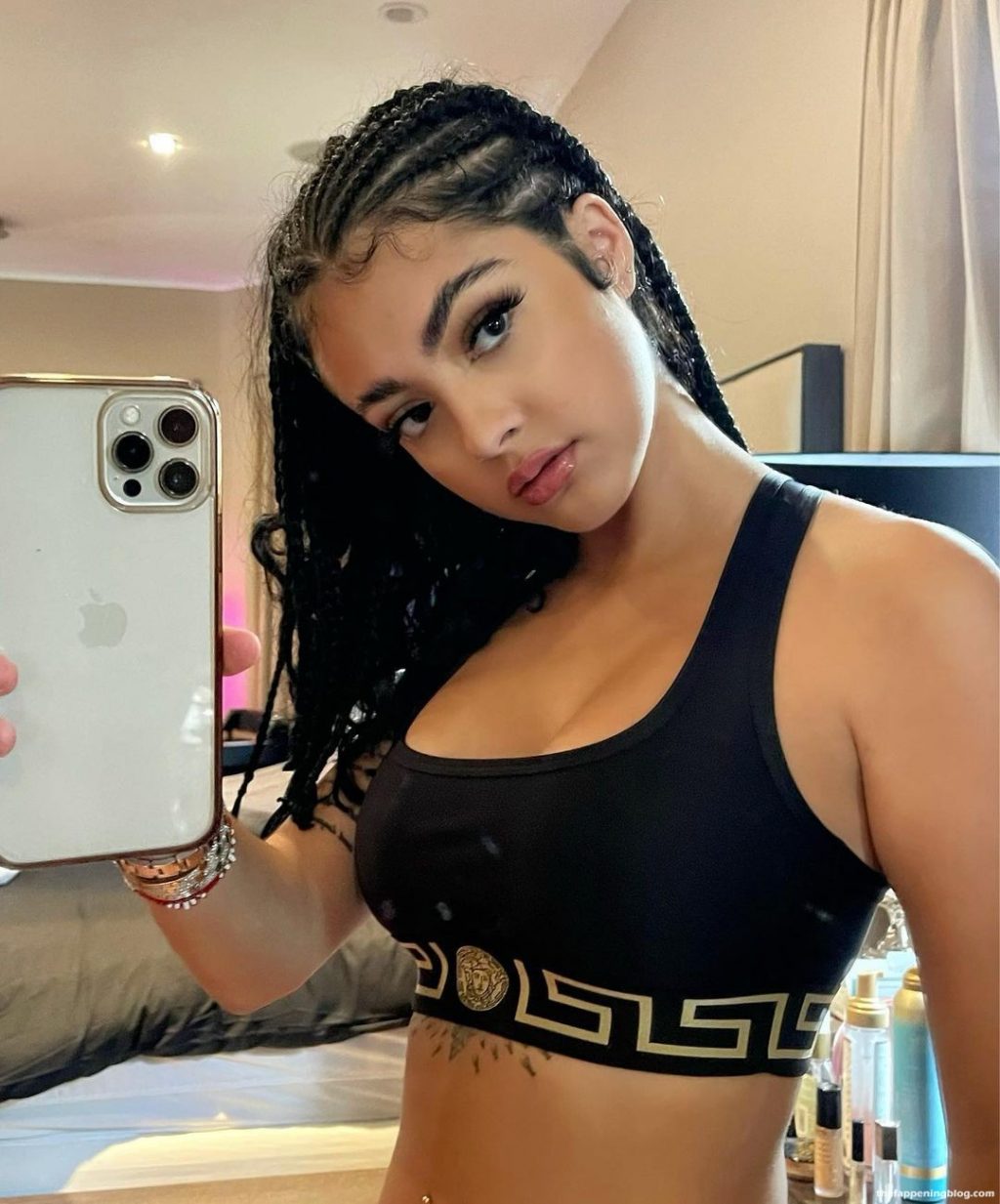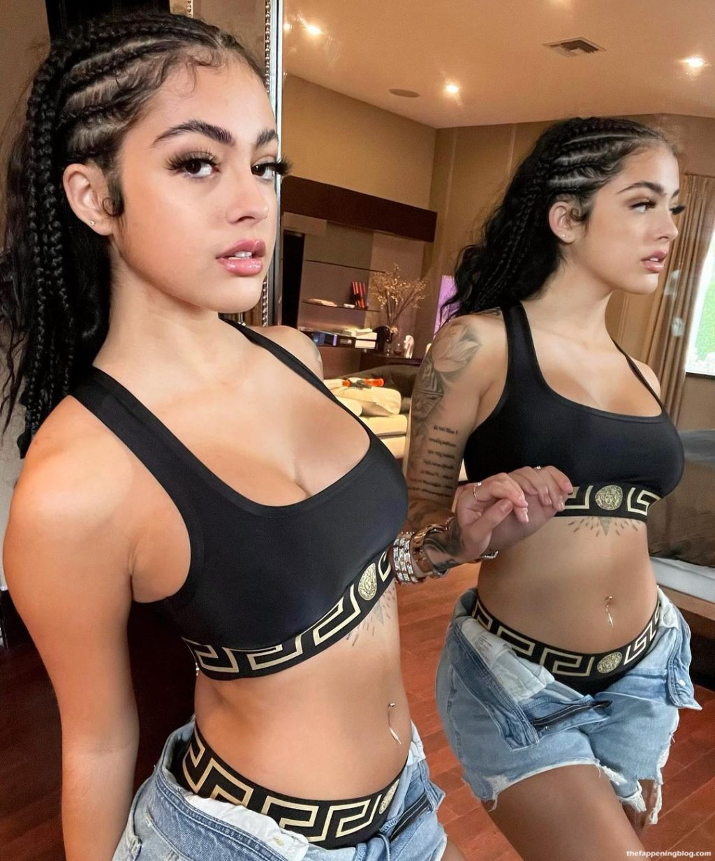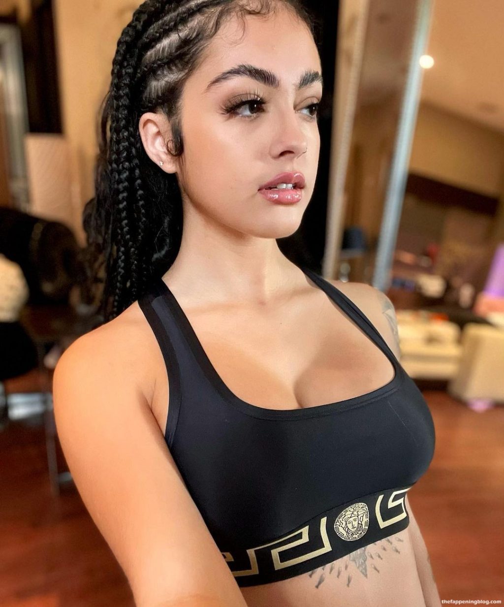 La star dei social media Malu Trevejo mostra un bel décolleté con il suo grande seno e il sedere sexy, posando e ballando con un completo sportivo nero aderente – Instagram, TikTok, 10/04/2021.