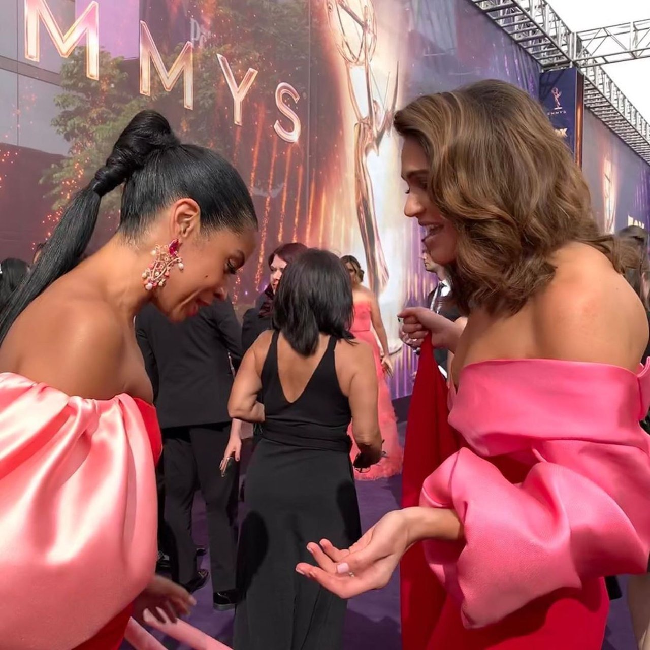 Un’altra ospite in un vestito rosso-rosa è qui! L’attrice/cantante di 35 anni Mandy Moore è apparsa alla 71ª cerimonia degli Emmy Awards a Los Angeles, mostrando il suo décolleté e le gambe snelle.