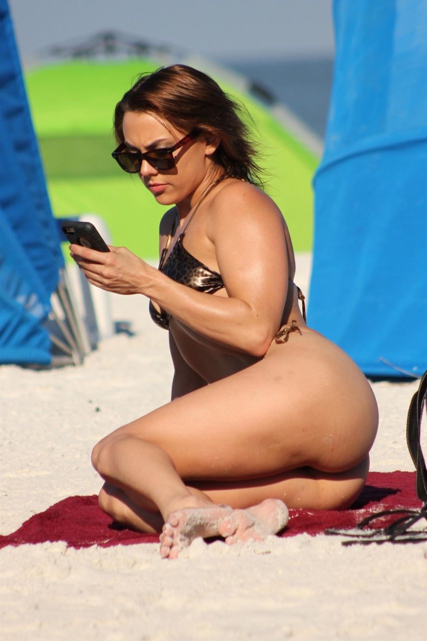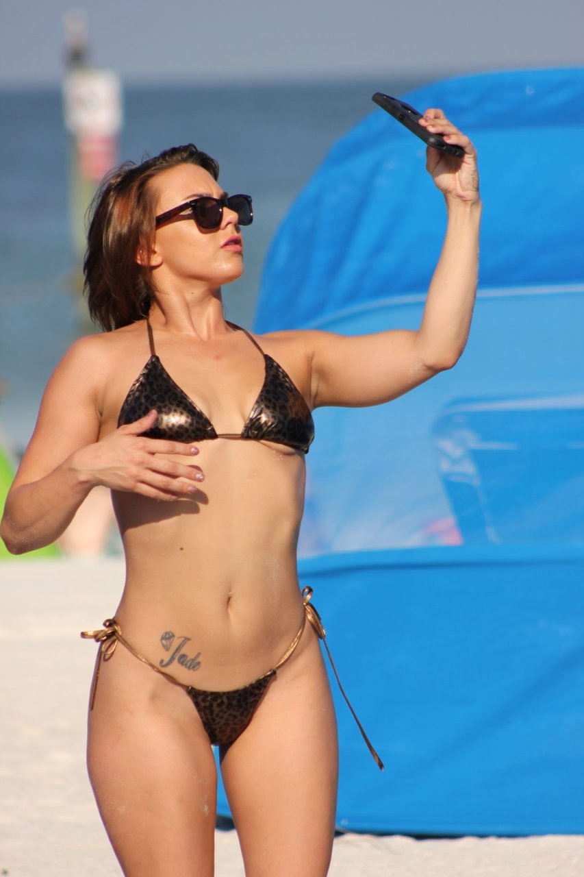 Attrice di film per adulti e modella Maria Jade (25) è vista sulla spiaggia di Miami, rilassandosi e scattando selfie per i suoi fan con un bikini appena accennato, 20/11/2018.