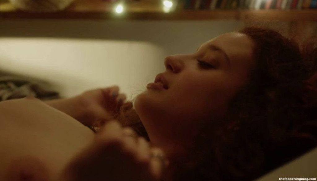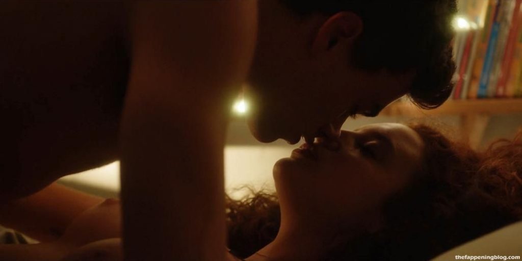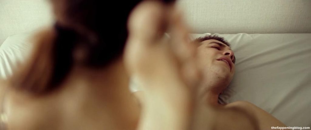 Here’s Maria Pedraza’s sex scene. Then having a guy kiss her nipples and stomach before he puts on a condom and has sex with her on her back, then she’s riding his cock, with his face pressing into the boobs! She is seen here naked too, removing her clothes and revealing nude tits!