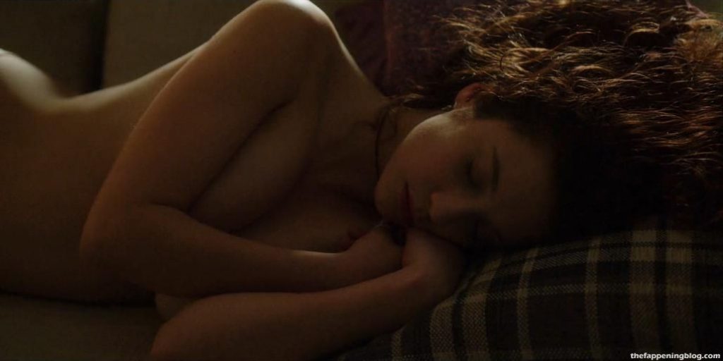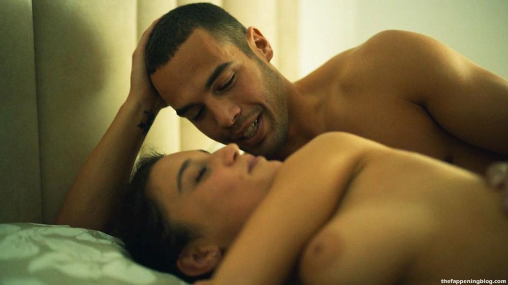 María Pedraza nude is lying on her side in bed. She is showing a side boob as the guy strokes her back to wake her up. She then talks to the guy and rolls over to face him, revealing her breasts in the process.