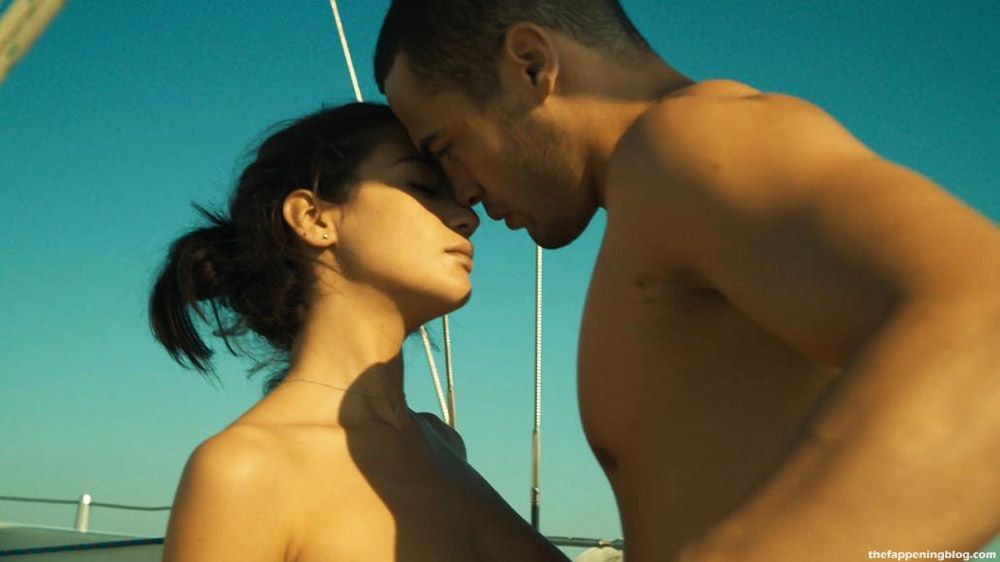 Beautiful María Pedraza topless is kissing a guy on a boat. She is undressing and having the guy take her bra off, so we see her naked boobs as she and the guy begin to have sex.