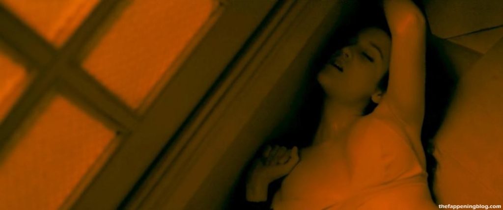 María is here in the second sex scene. She is again making out with a guy and laying back on a bed in the bra. The guy then takes her lingerie off and licks Maria’s pussy as we see her naked boobs! She then shows more; these two have sex before ending up lying in bed naked!