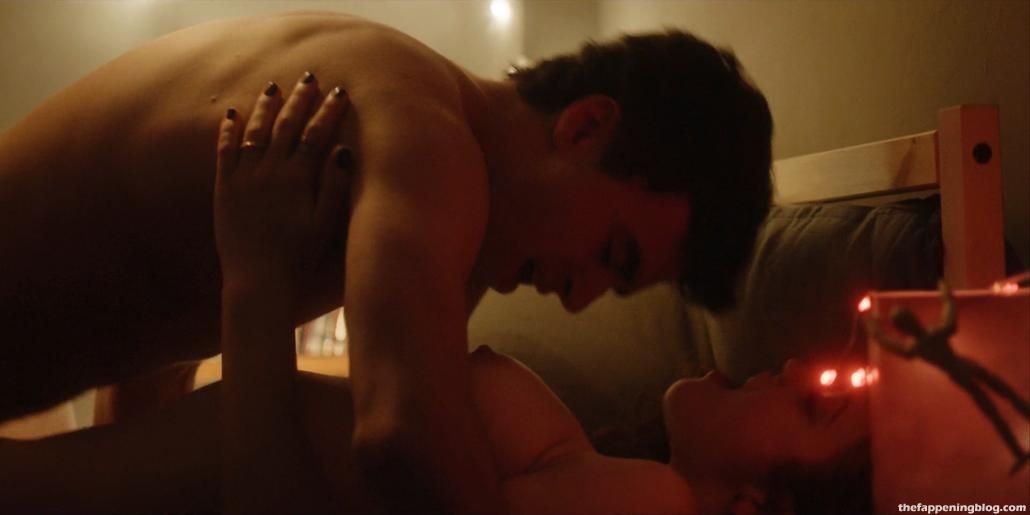 Here’s Maria Pedraza’s sex scene. Then having a guy kiss her nipples and stomach before he puts on a condom and has sex with her on her back, then she’s riding his cock, with his face pressing into the boobs! She is seen here naked too, removing her clothes and revealing nude tits!