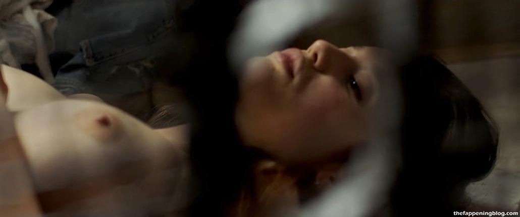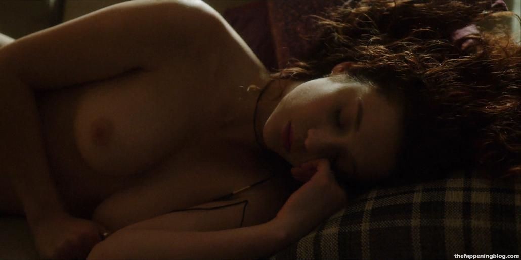 María is here in the second sex scene. She is again making out with a guy and laying back on a bed in the bra. The guy then takes her lingerie off and licks Maria’s pussy as we see her naked boobs! She then shows more; these two have sex before ending up lying in bed naked!