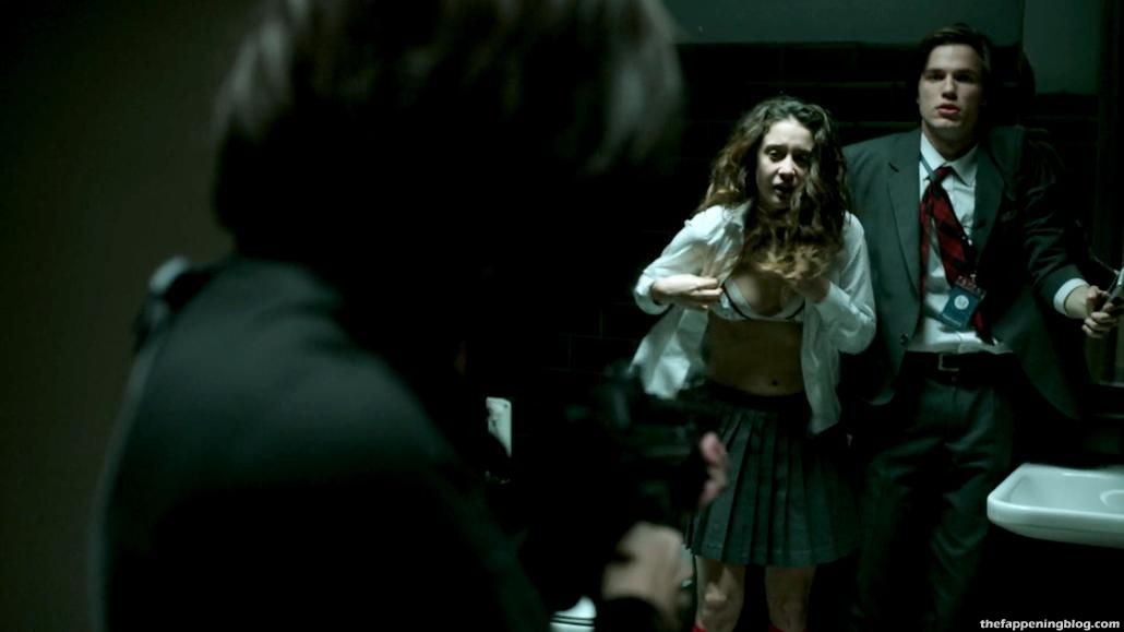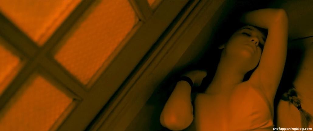 In the third scene, we see María Pedraza lying topless with a guy’s arm around her before he moves away, and we see her breasts. We then look at her in a bra as she gets dressed in a white see-through bra! Enjoy folks!