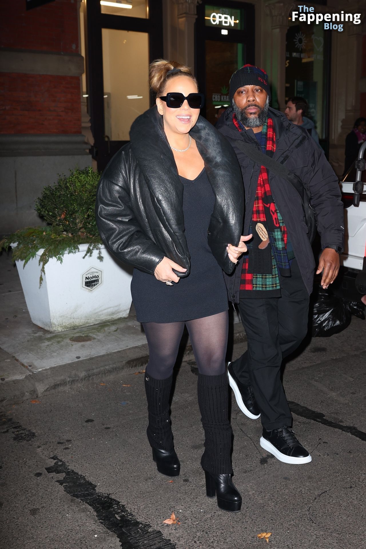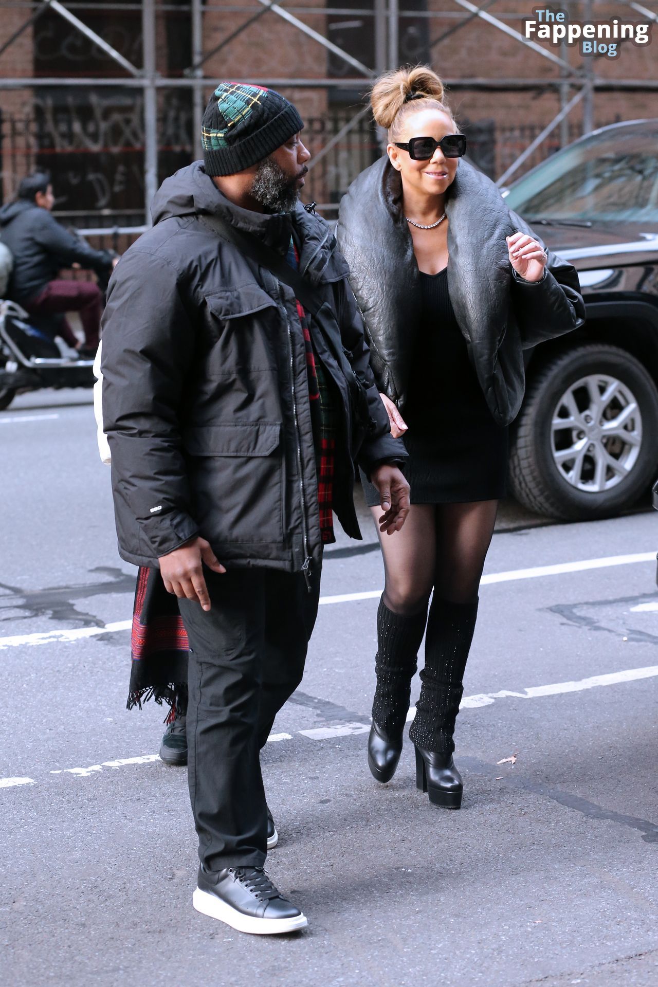 Icona della musica Mariah Carey sorride alla fotocamera, lasciando con grazia uno studio di registrazione nel quartiere alla moda di Soho, New York, suggerendo possibili nuovi progetti musicali.