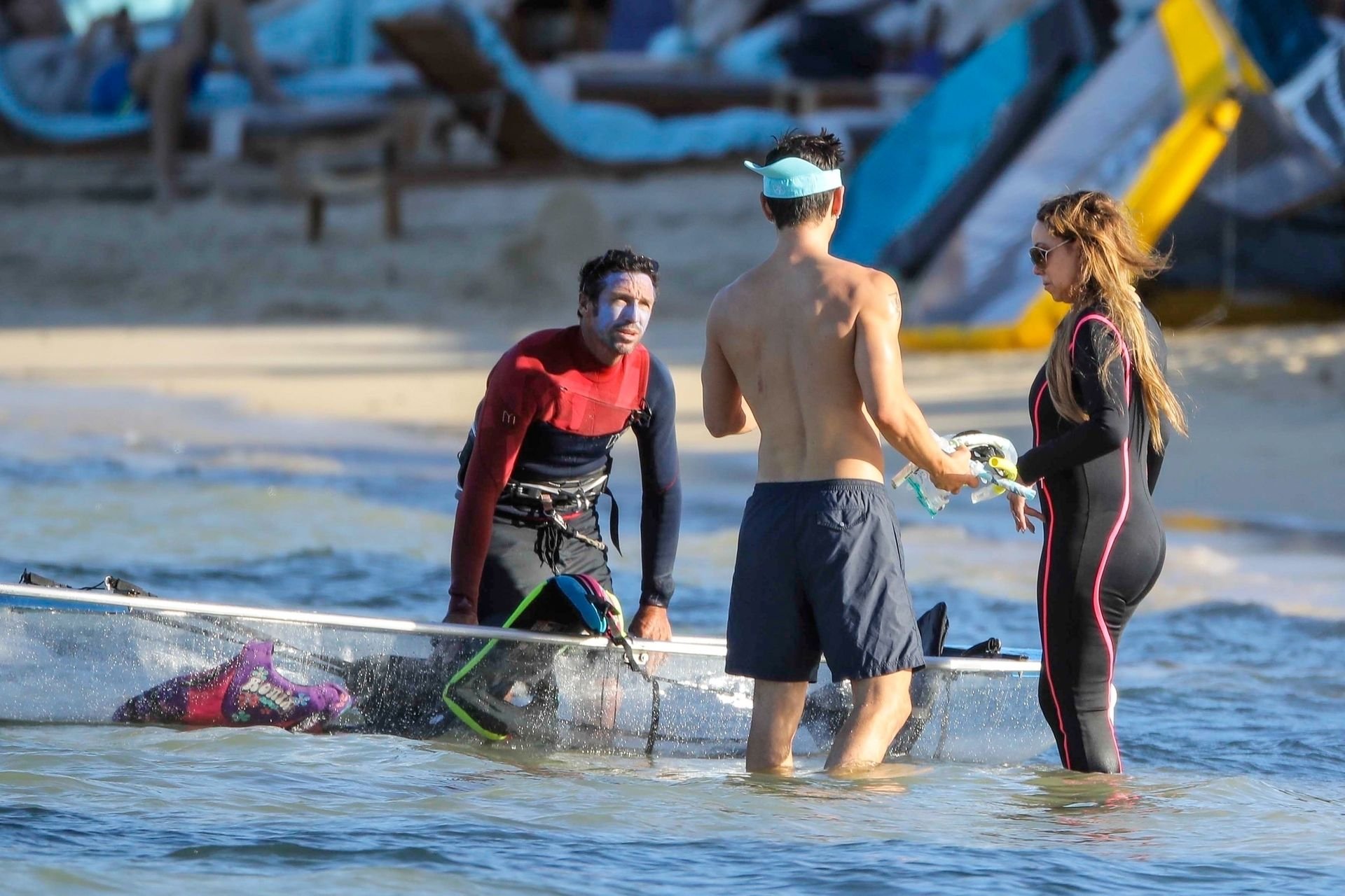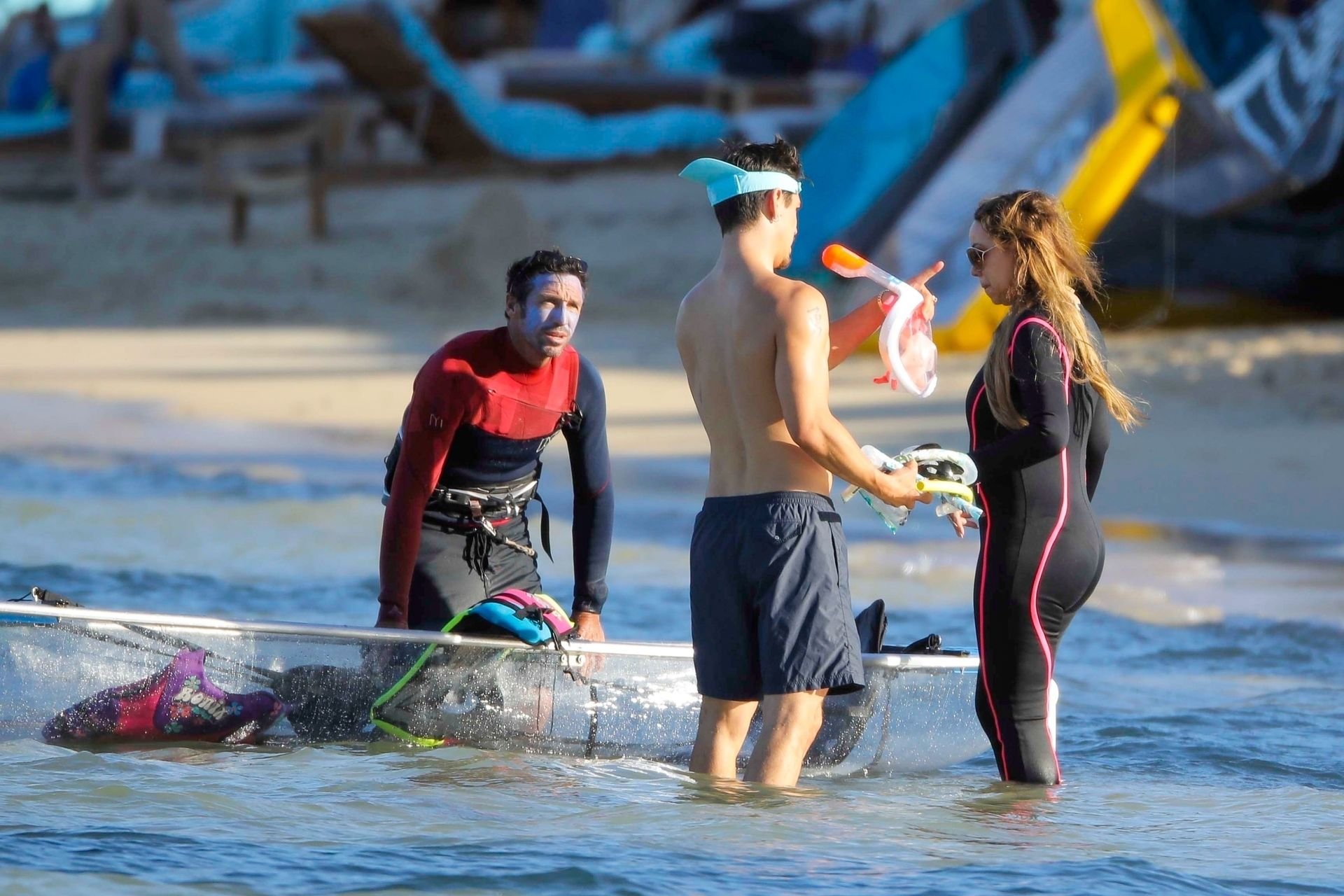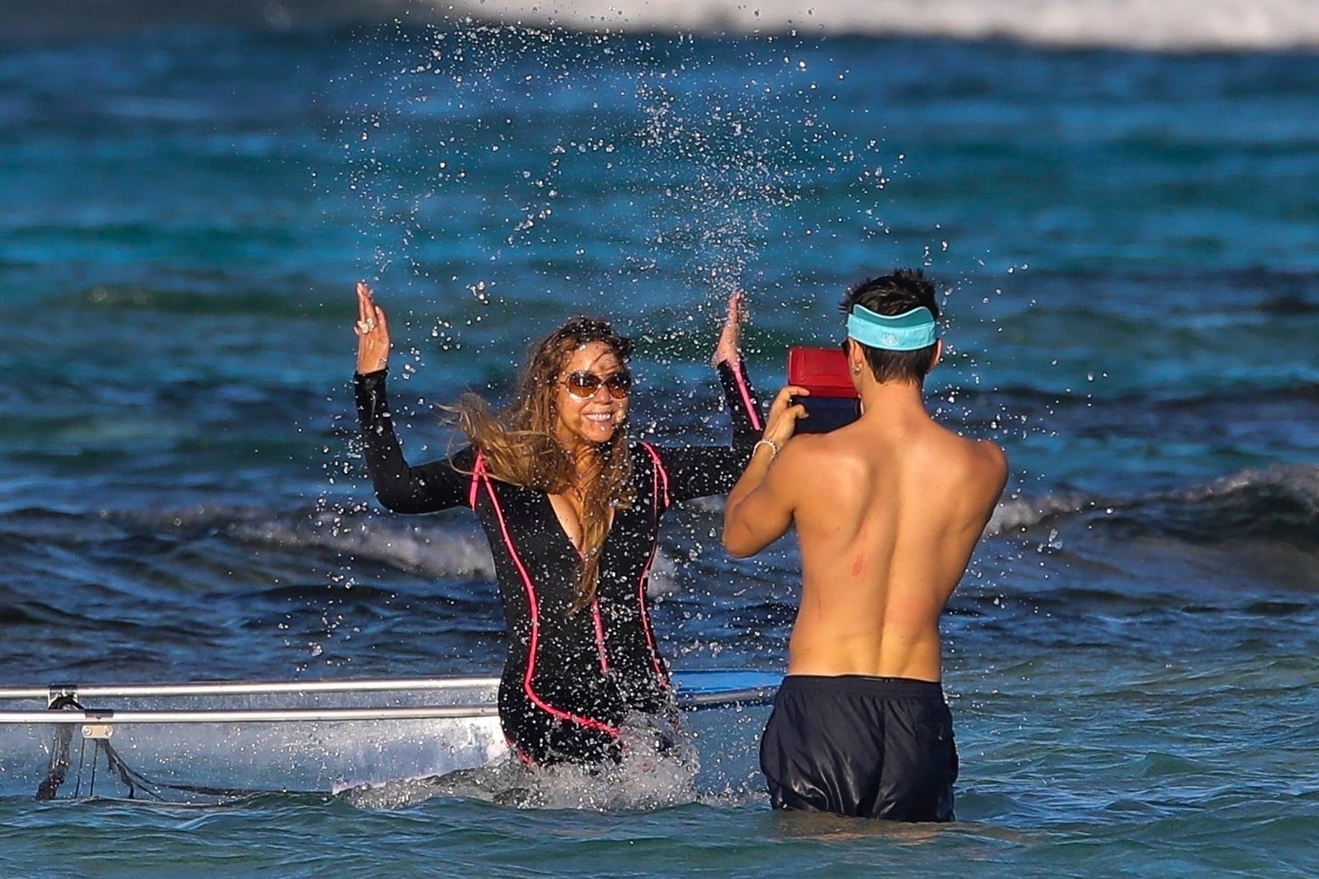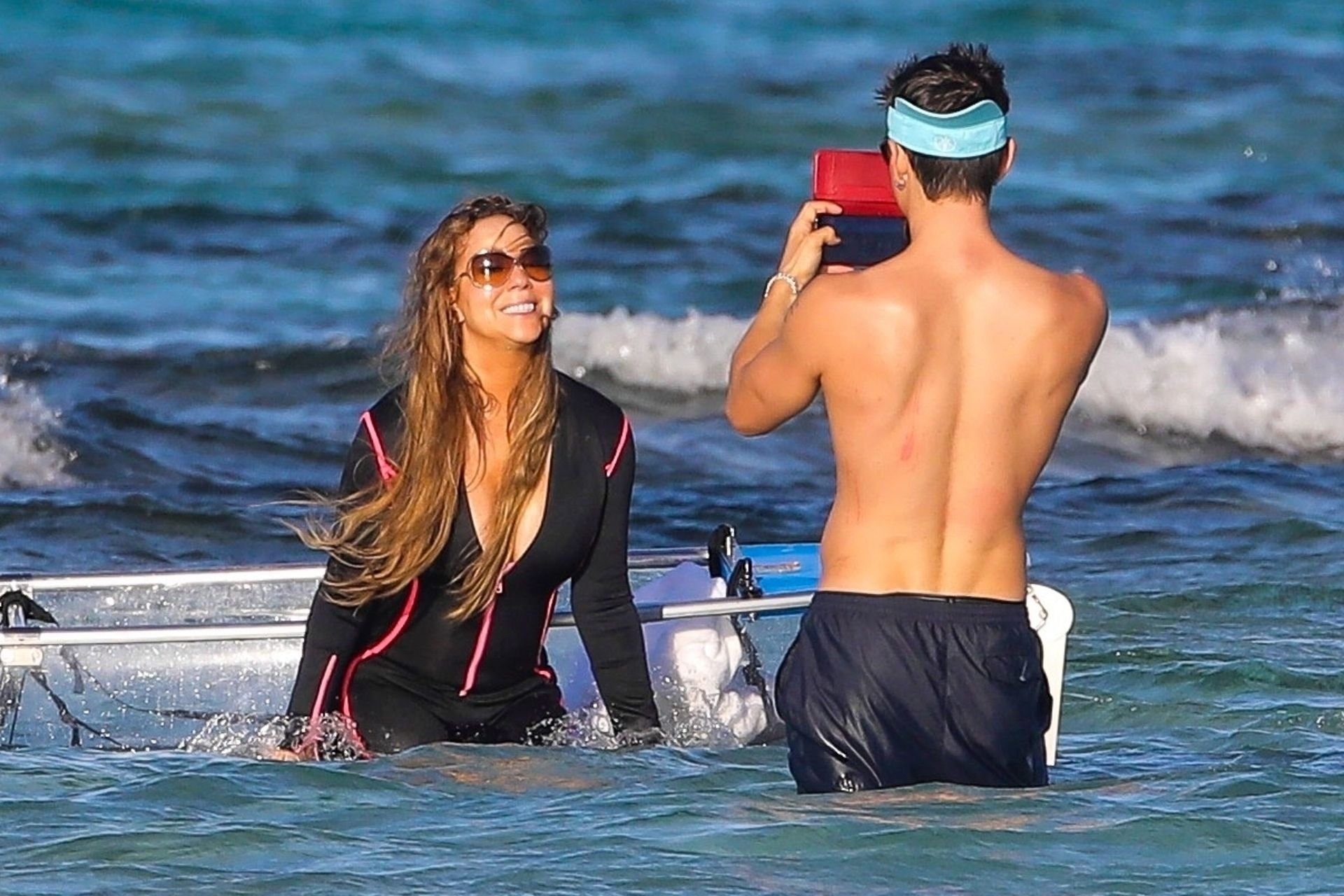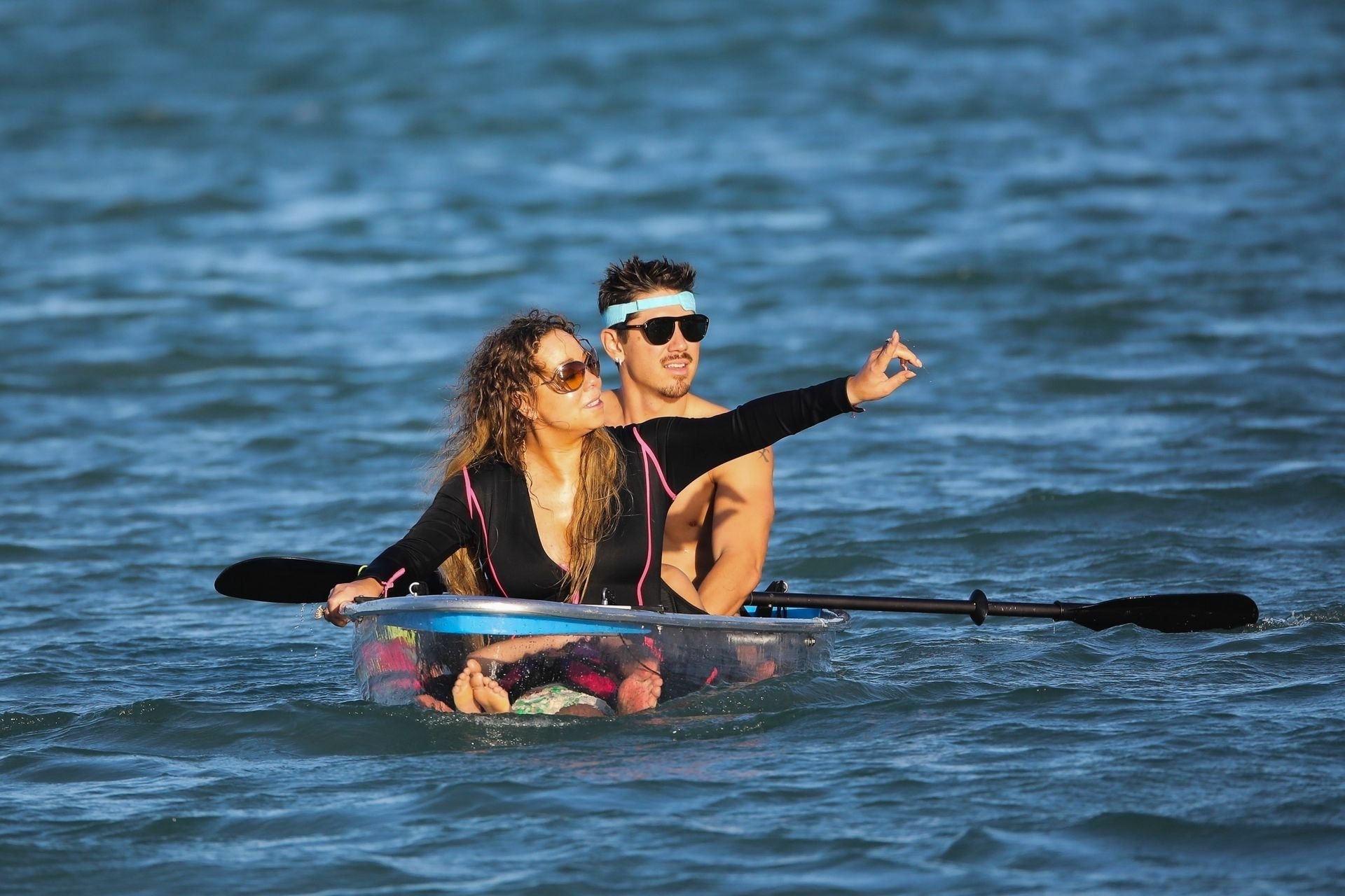 Mariah Carey (48) e Bryan Tanaka (35) si scattano qualche selfie mentre si godono il caldo sole in famiglia alla Grand Cul de Sac Lagoon a St. Barth, con i due figli di Mariah, Moroccan e Monroe, 01/03/2019. Mariah è senza trucco in una muta nera mentre si rilassa in una barca con fondo trasparente.