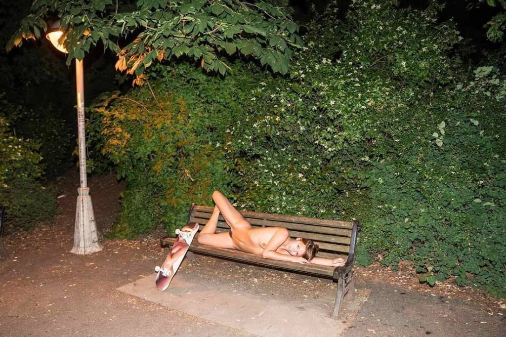 Marisa Papen presenta la sua nuova collaborazione con Spleen Wear (luglio 2018). La modella nuda è stata fotografata da Mike Steegmans per magliette e skateboard negli Stati Uniti.