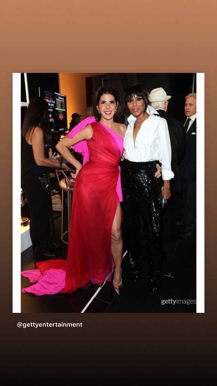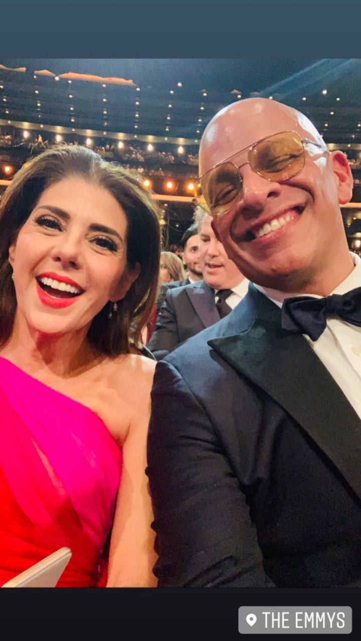 I designer hanno ripetuto di nuovo lo stile rosso-rosa. L’attrice americana di 54 anni, vincitrice dell’Oscar Marisa Tomei, è stata fotografata con Mark Subias e altre celebrità alla 71ª edizione dei Primetime Emmy Awards a Los Angeles, 22/09/2019.
