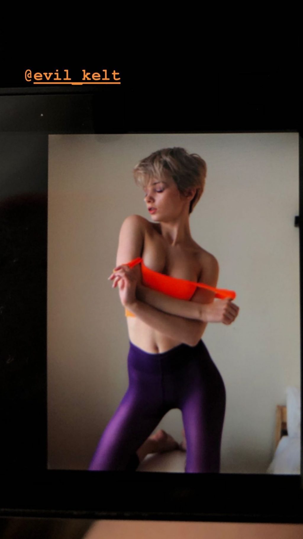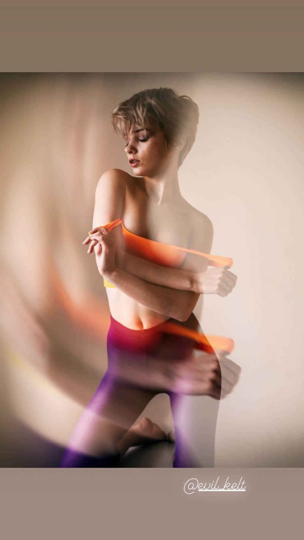 Giovane modella russa Marta Gromova mostra i suoi seni e il sedere posando con un top arancione in un nuovo servizio fotografico di Egor Kondratyev (2020).