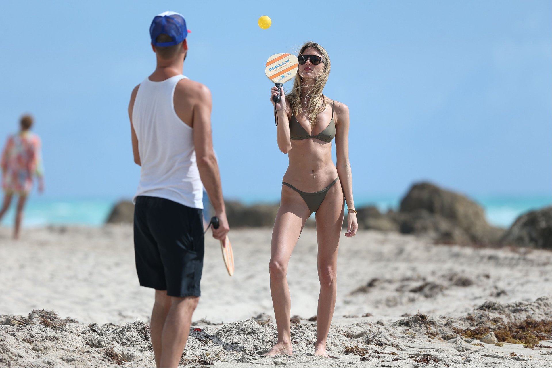 Martha Hunt indossa un bikini minuscolo mentre gioca a paddleball con il suo uomo a Miami Beach, 26/03/2017. Martha Seifert Hunt è una modella di Wilson (U.S.A.). Età – 27 anni (nata il 27 aprile, 1989).