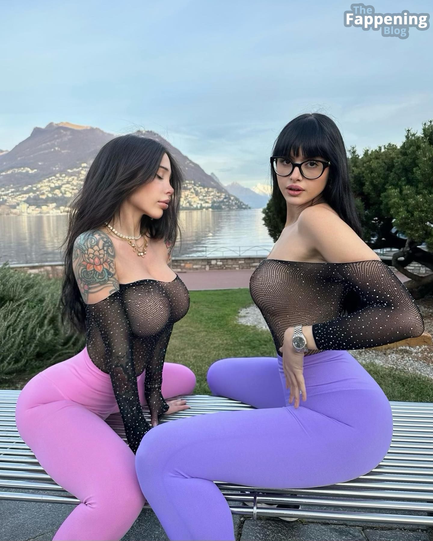 Martina Vismara e Alexis Mucci realizzano un servizio fotografico nudo congiunto posando con top a rete che mostrano i loro grandi seni.