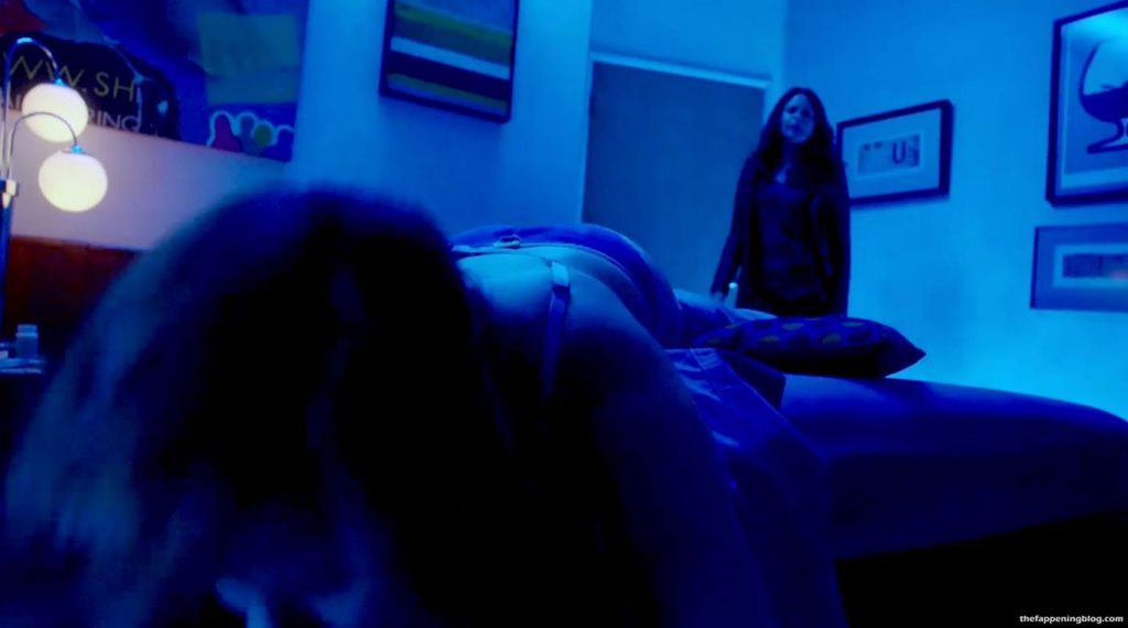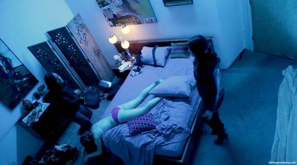 And for the end. We have a scene from a movie called “Scandal”. Mary Mouser is lying on her stomach, very drunk. She’s on her bed in an animal print bra and skimpy pink panties. The panties show off her ass as a woman kneels to take care of her as the other woman makes a phone call to get her help.