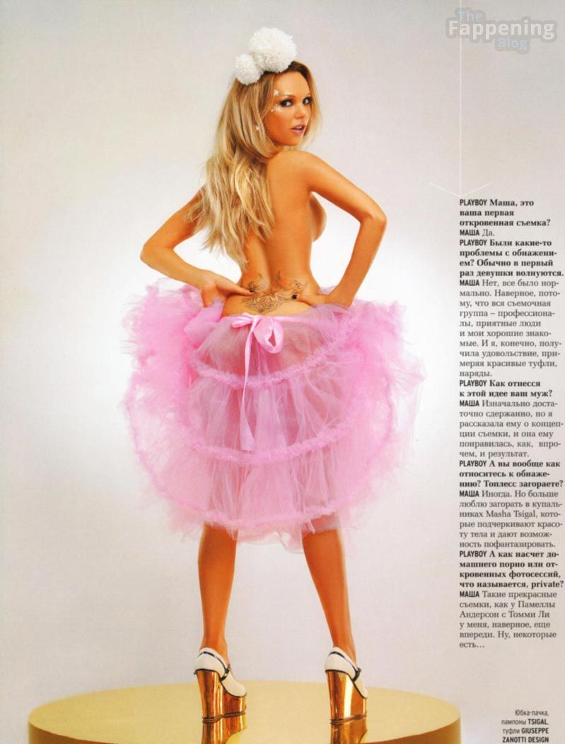 Masha Tsigal ha realizzato un servizio fotografico bollente per Playboy. La stilista è posata nuda come un angelo contro le nuvole, a seno nudo. La star nuda appare sicura e sexy.