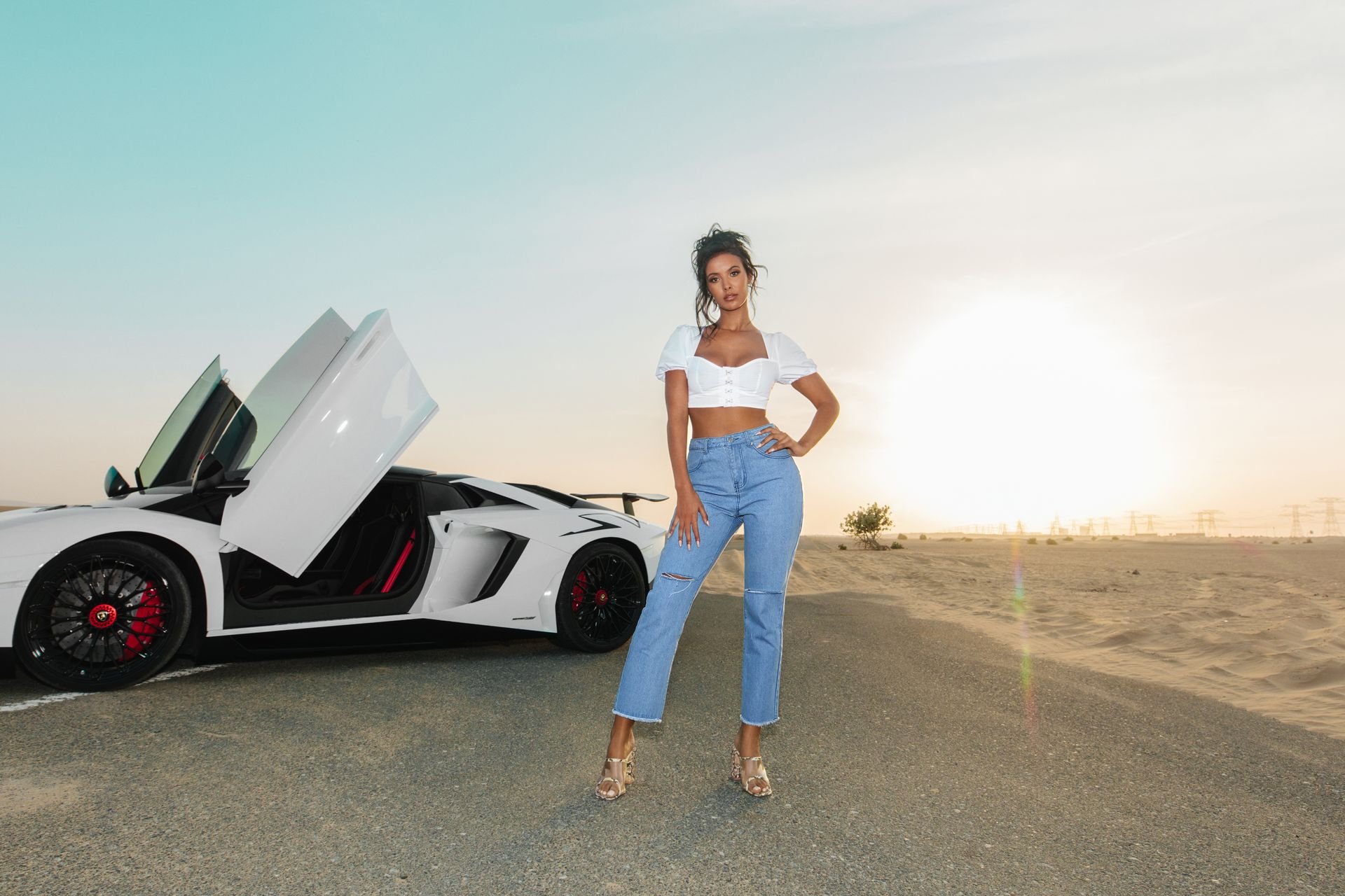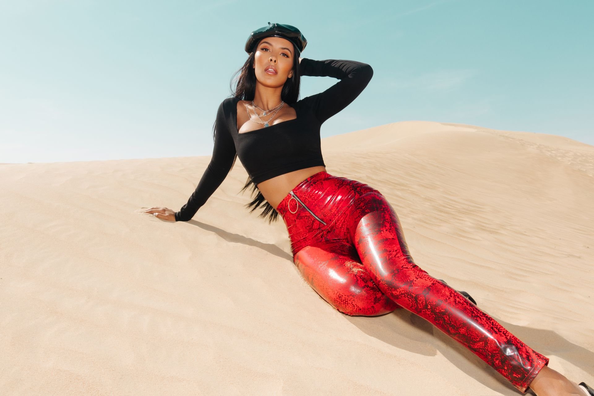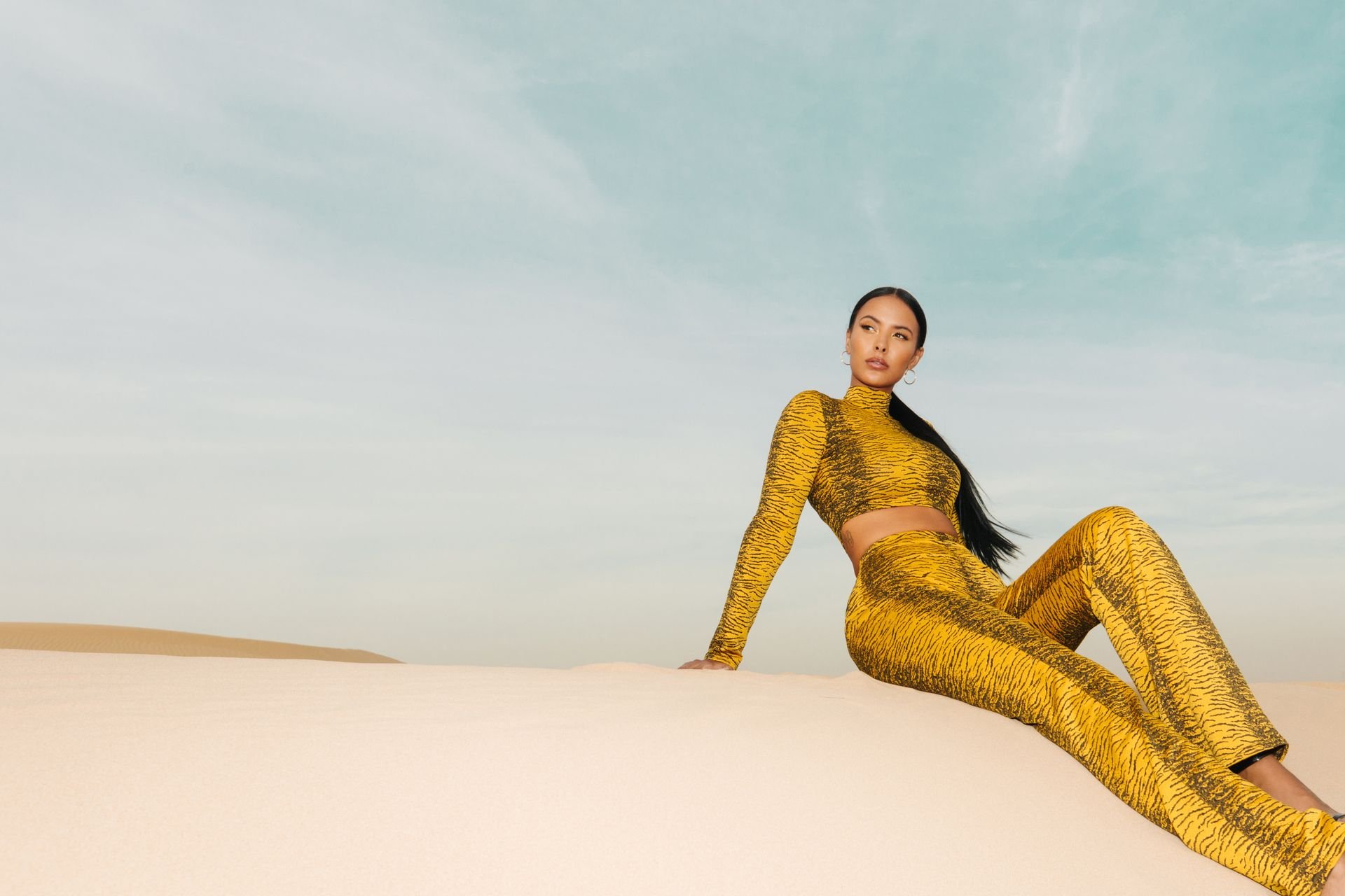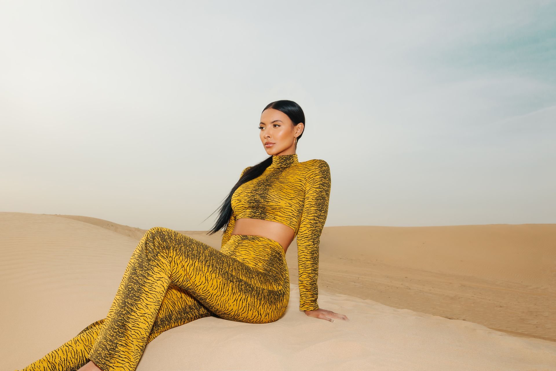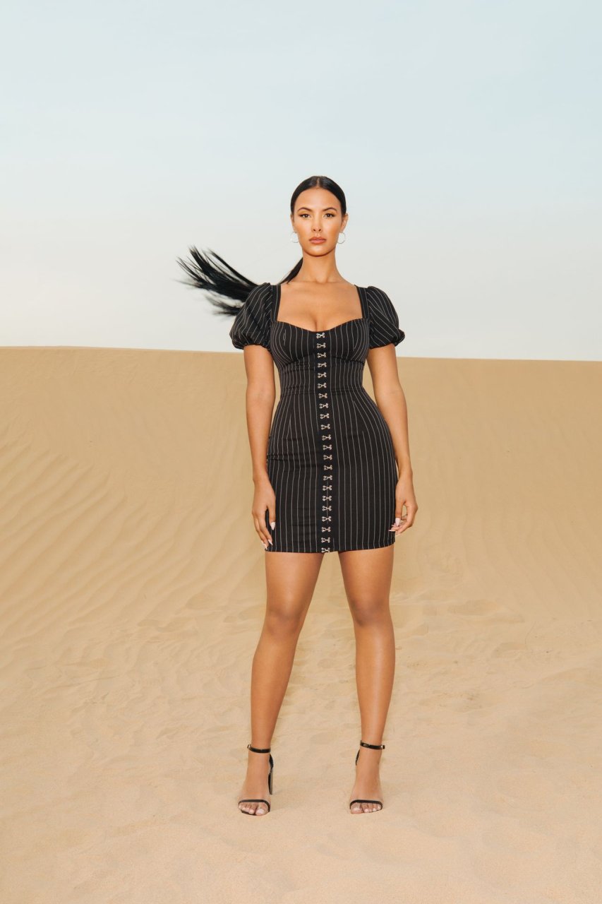 La modella Maya Jama ha collaborato con PrettyLittleThing per lanciare la sua seconda collezione di abbigliamento con il marchio di moda online, che include tute, vestiti e pantaloni da jogging.