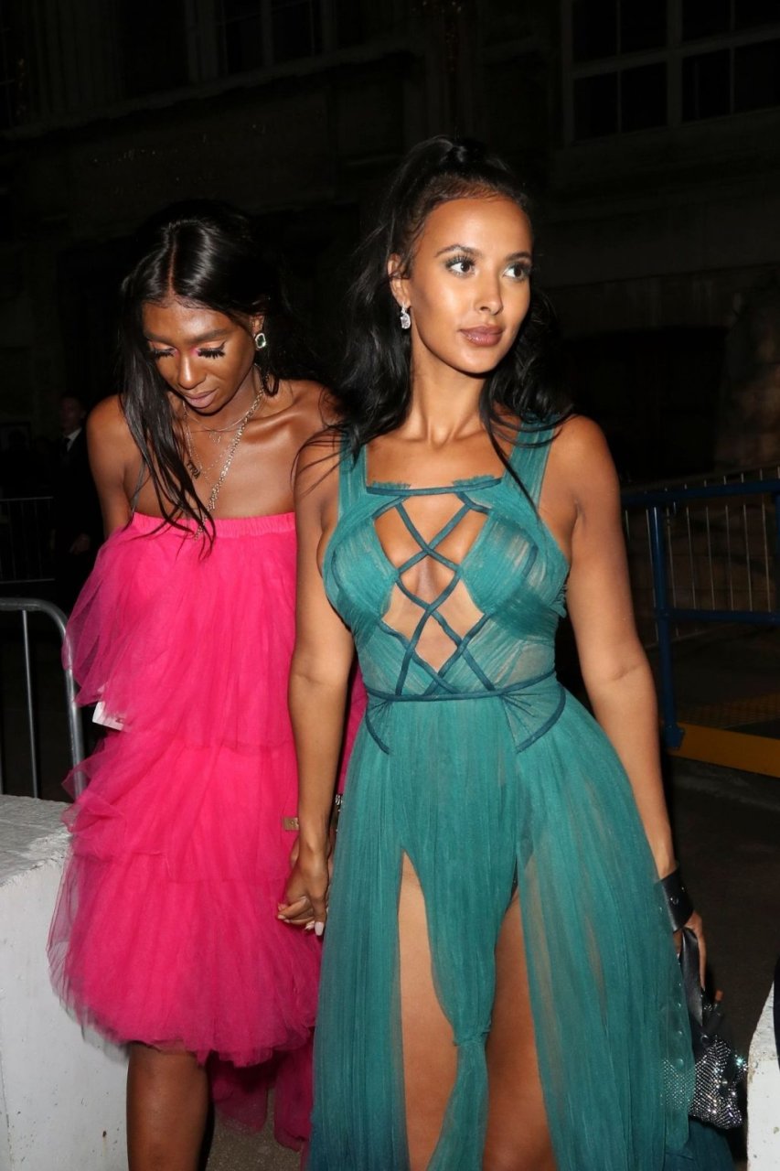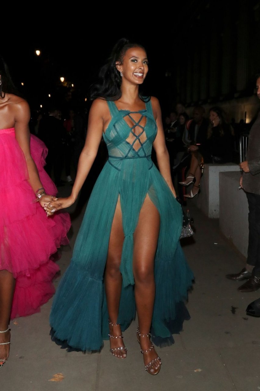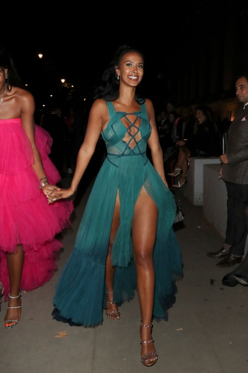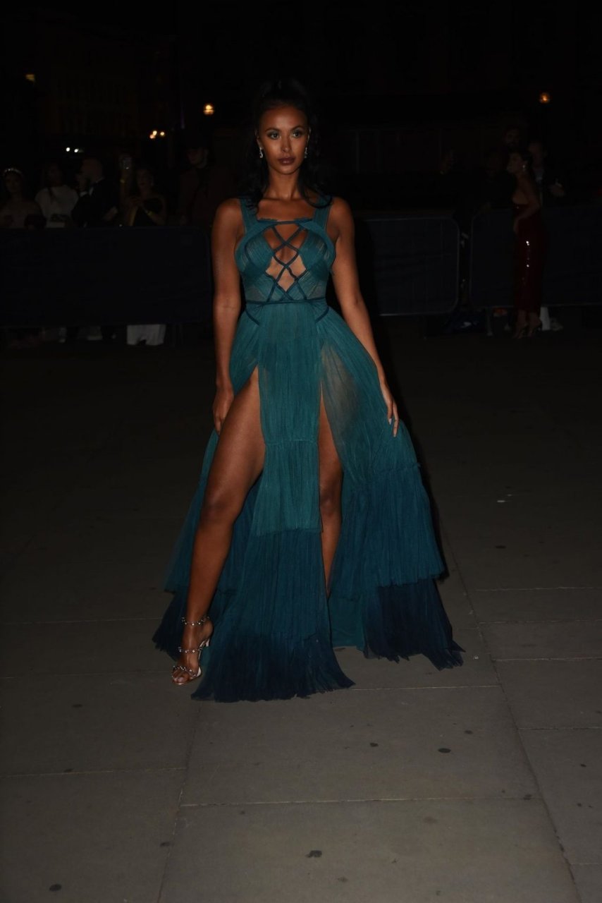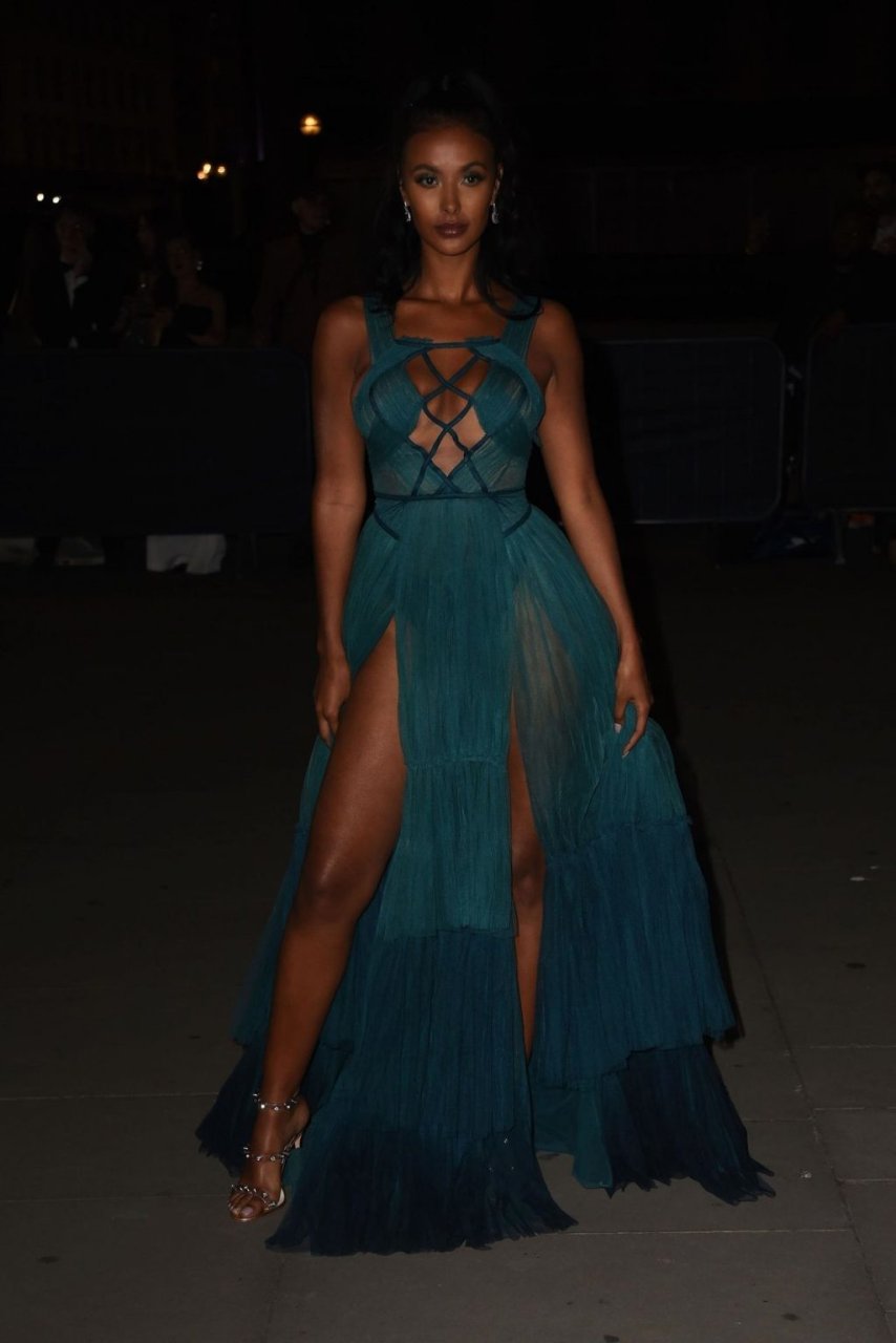 Sexy presentatrice TV Maya Jama partecipa a Fashion For Relief al British Museum di Londra, Inghilterra, 14/09/2019. Maya ha messo in mostra le sue gambe stupende posando con un abito da sera leggero, rivelando le sue mutandine.