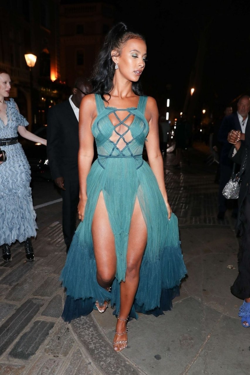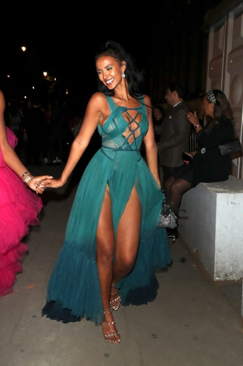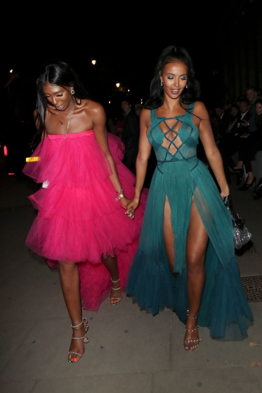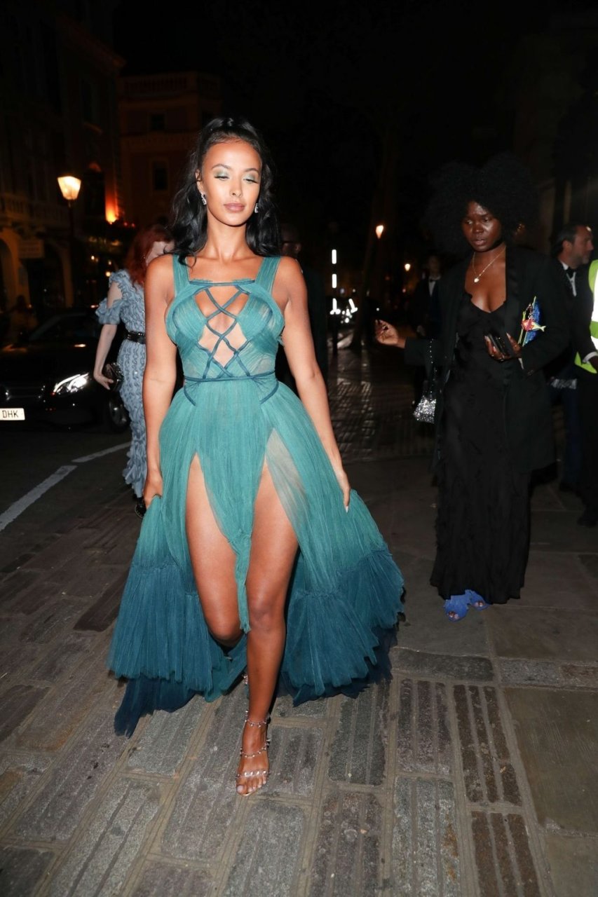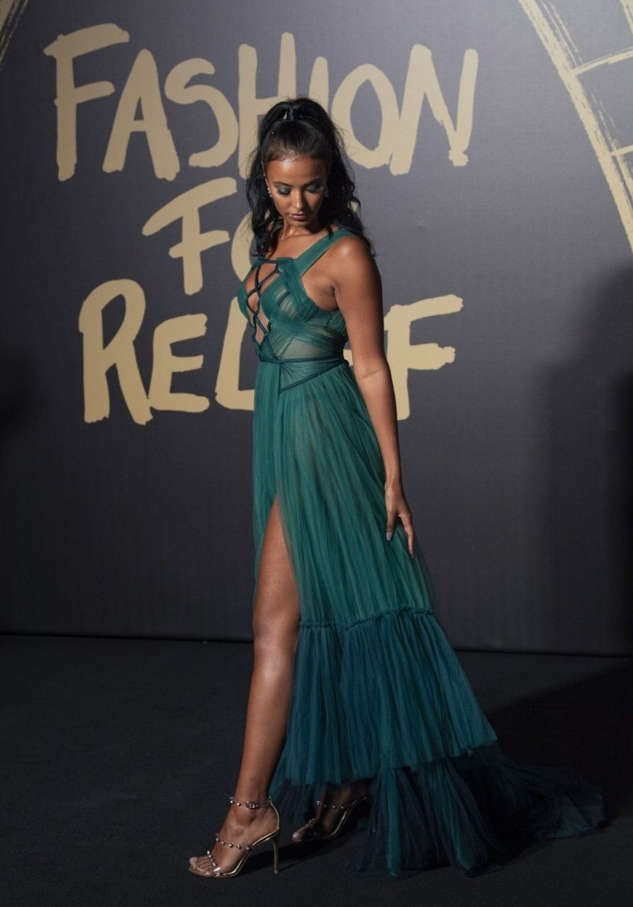 Sexy presentatrice TV Maya Jama partecipa a Fashion For Relief al British Museum di Londra, Inghilterra, 14/09/2019. Maya ha messo in mostra le sue gambe stupende posando con un abito da sera leggero, rivelando le sue mutandine.
