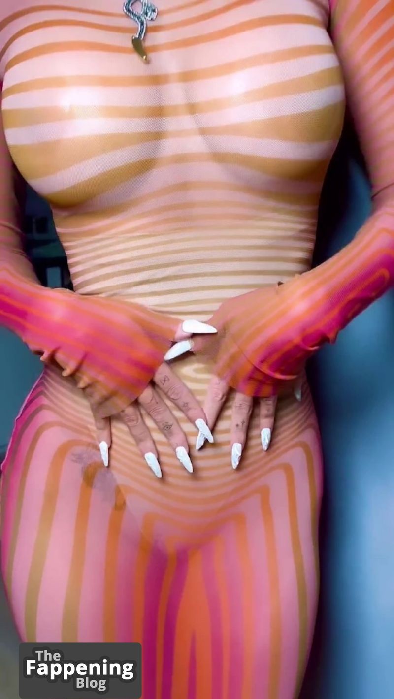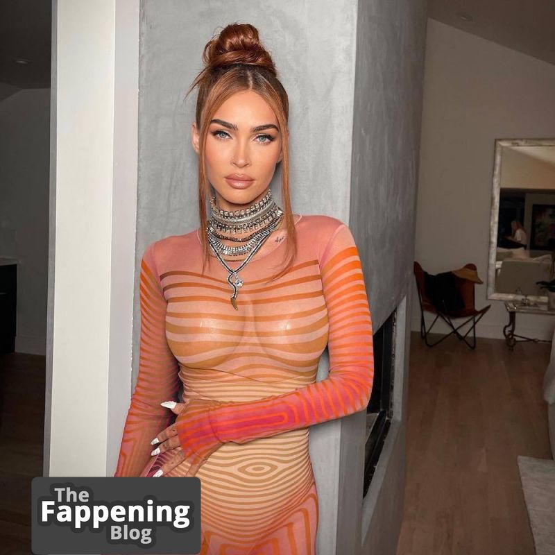 La collezione fotografica di Megan Fox è ricca di contenuti espliciti, con lei in topless che mostra il suo ampio seno, scollatura profonda senza reggiseno, capezzoli esposti, sideboob e parti intime visibili.