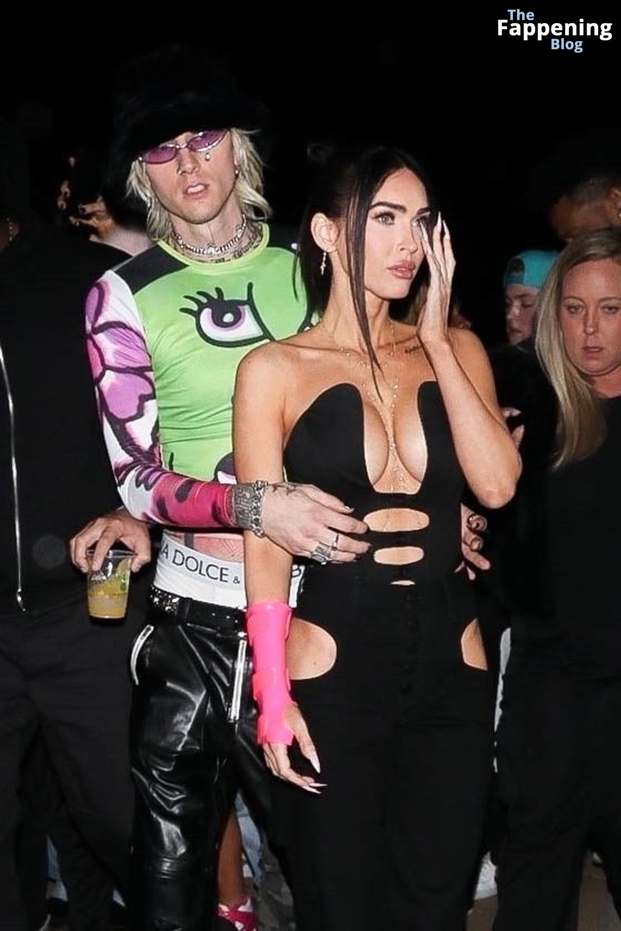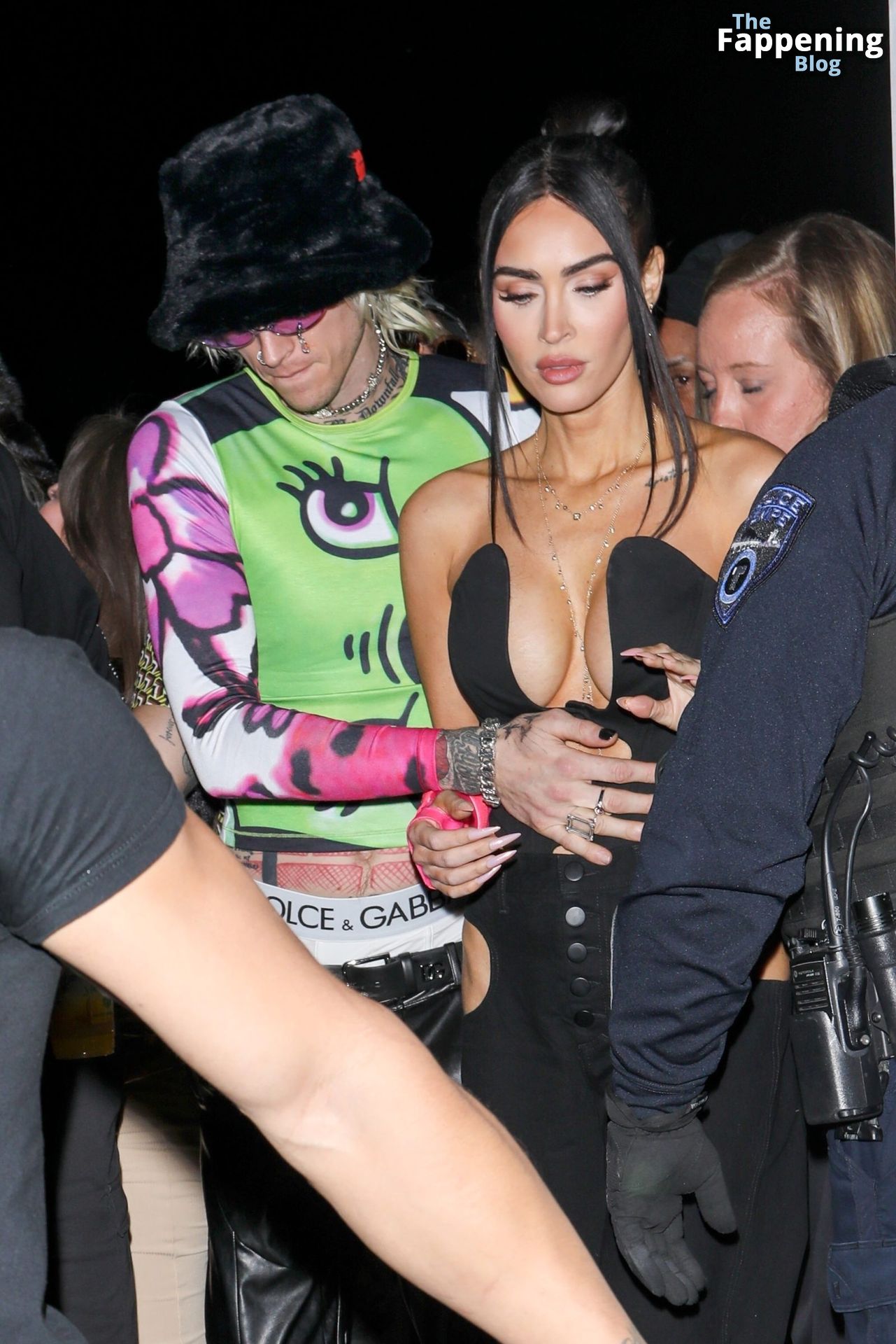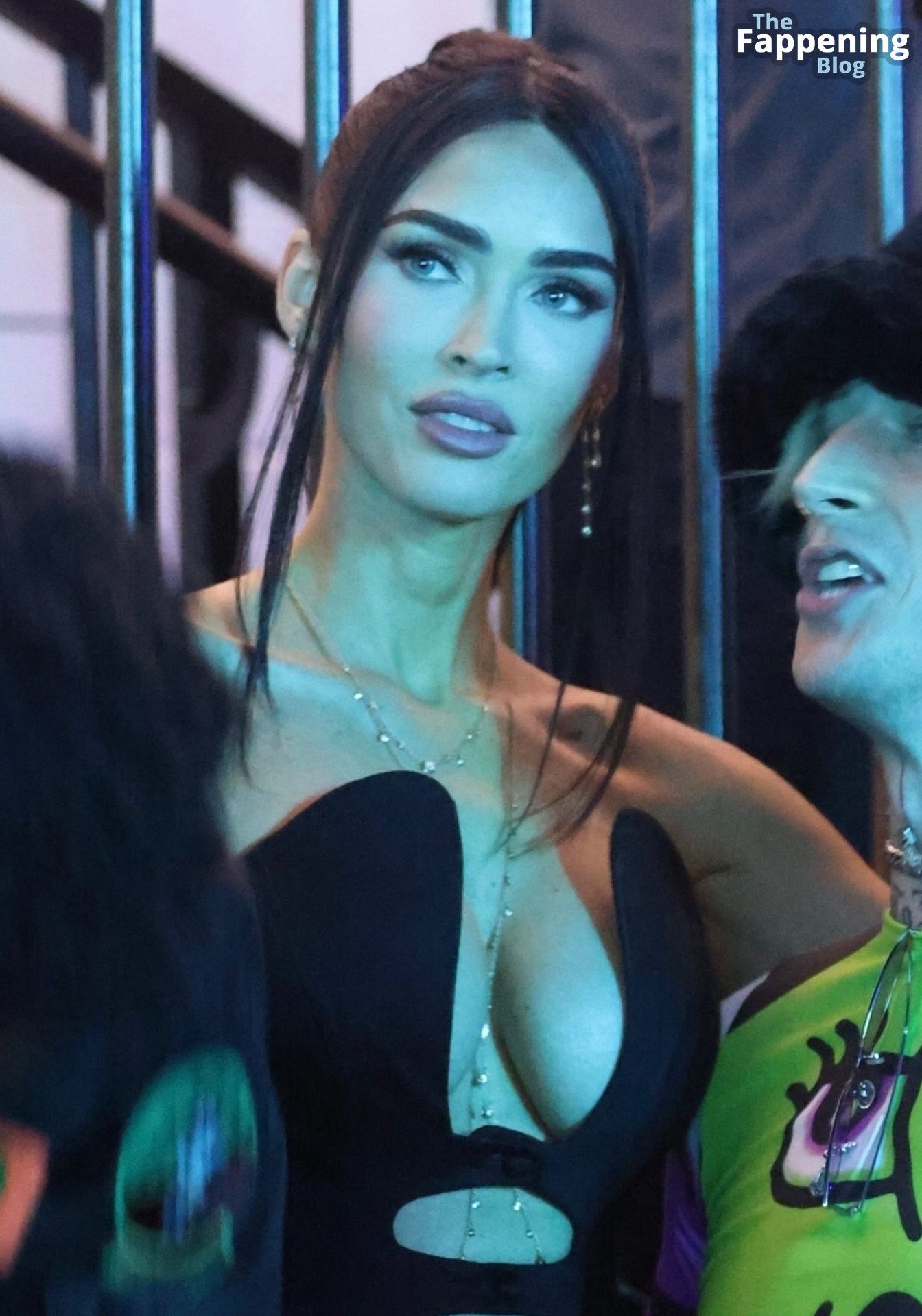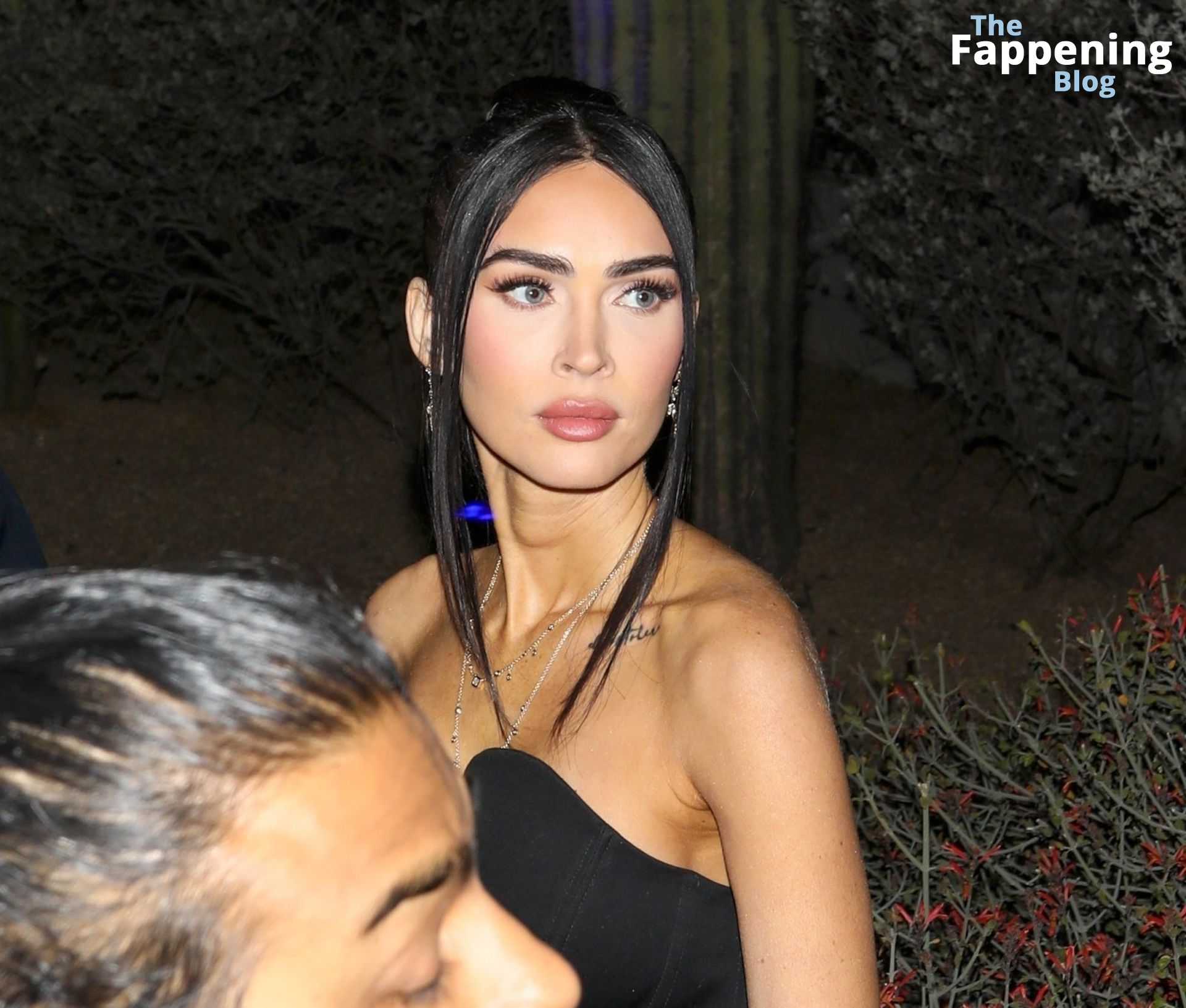 Megan Fox è stata vista alla festa del Super Bowl di Drake con un abito nero scollato, mostrando il suo décolleté. Il look senza reggiseno mette in risalto la sua figura mozzafiato e il suo sex appeal.