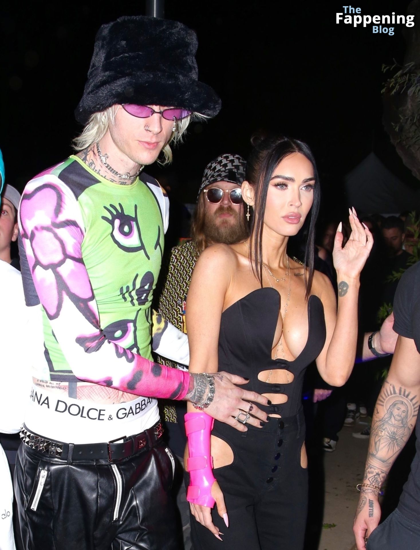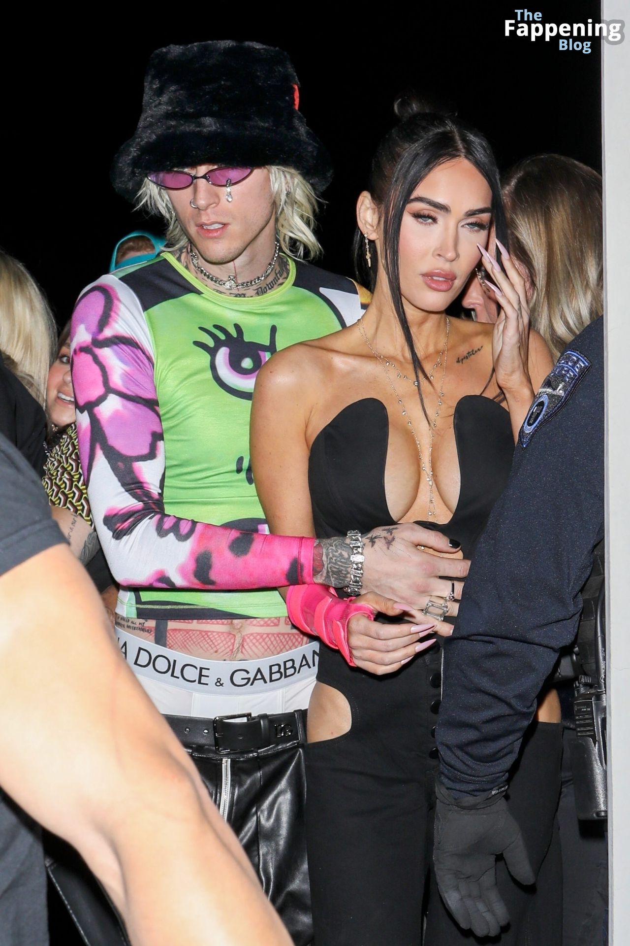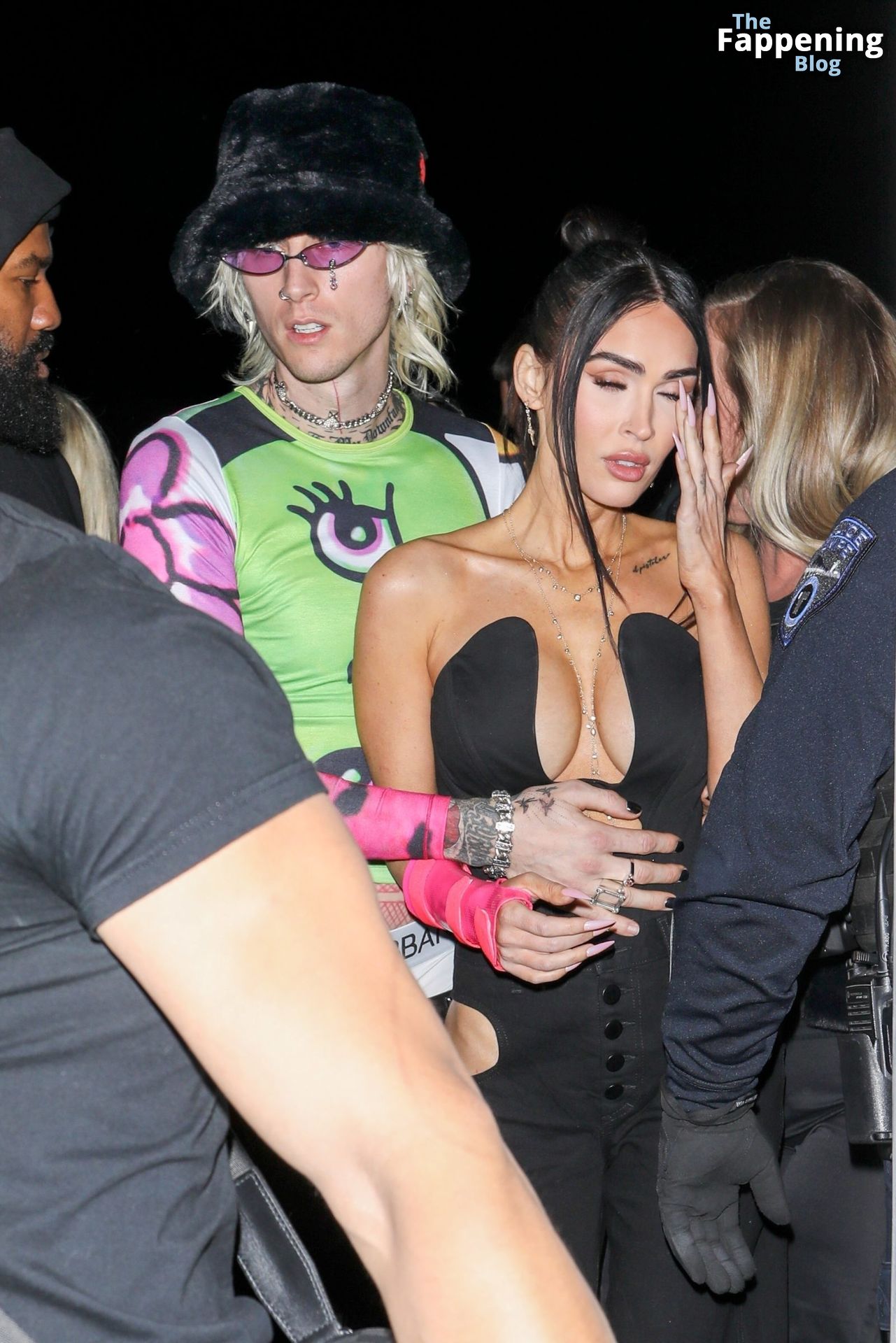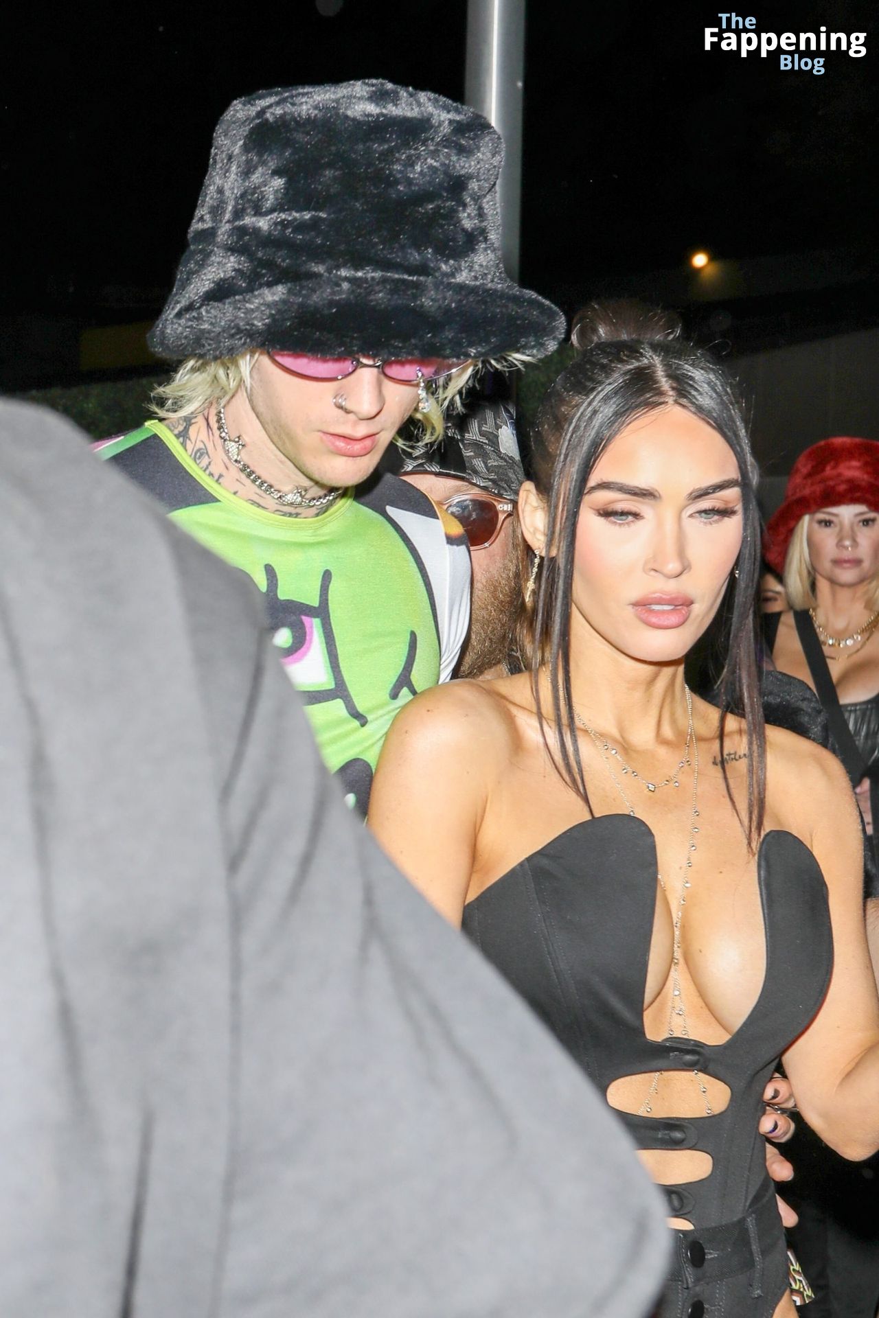 Megan Fox è stata vista alla festa del Super Bowl di Drake con un abito nero scollato, mostrando il suo décolleté. Il look senza reggiseno mette in risalto la sua figura mozzafiato e il suo sex appeal.