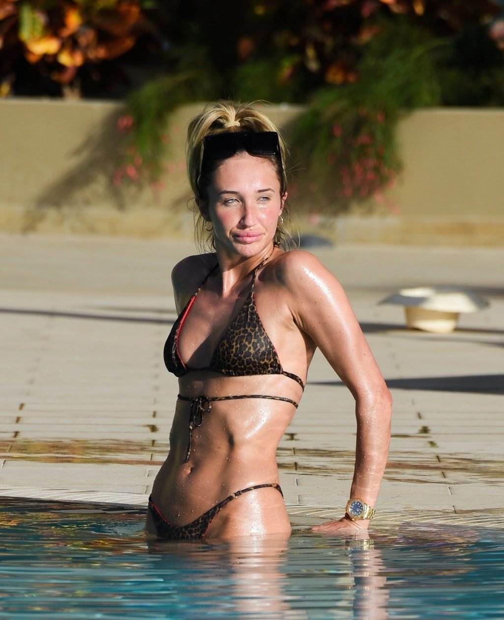 L’ex star di TOWIE e cantante di musica country Megan McKenna mostra i suoi invidiabili addominali scolpiti mentre viene vista prendere il sole a bordo piscina a Tenerife durante una pausa dalle riprese di “Celebs Go Dating” (2019).