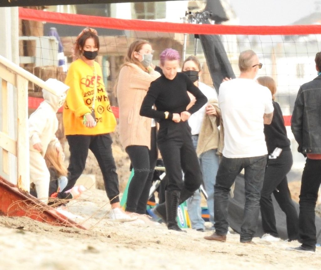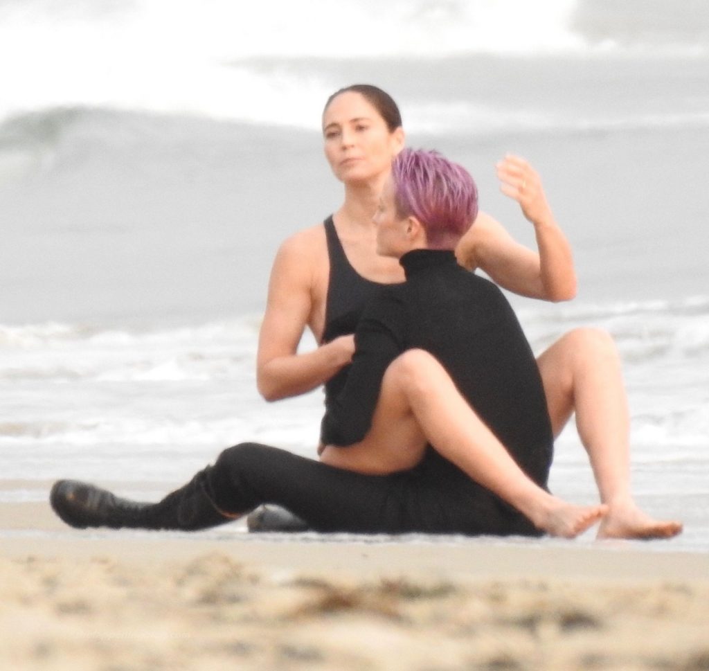 Megan e Sue sono state viste in diverse ambientazioni, tenendosi amorevolmente mentre sedevano sulla sabbia. La coppia si è alternata a sedersi in grembo l’una all’altra e ogni volta si aiutavano a rialzarsi o si spostavano una ciocca di capelli dal viso.