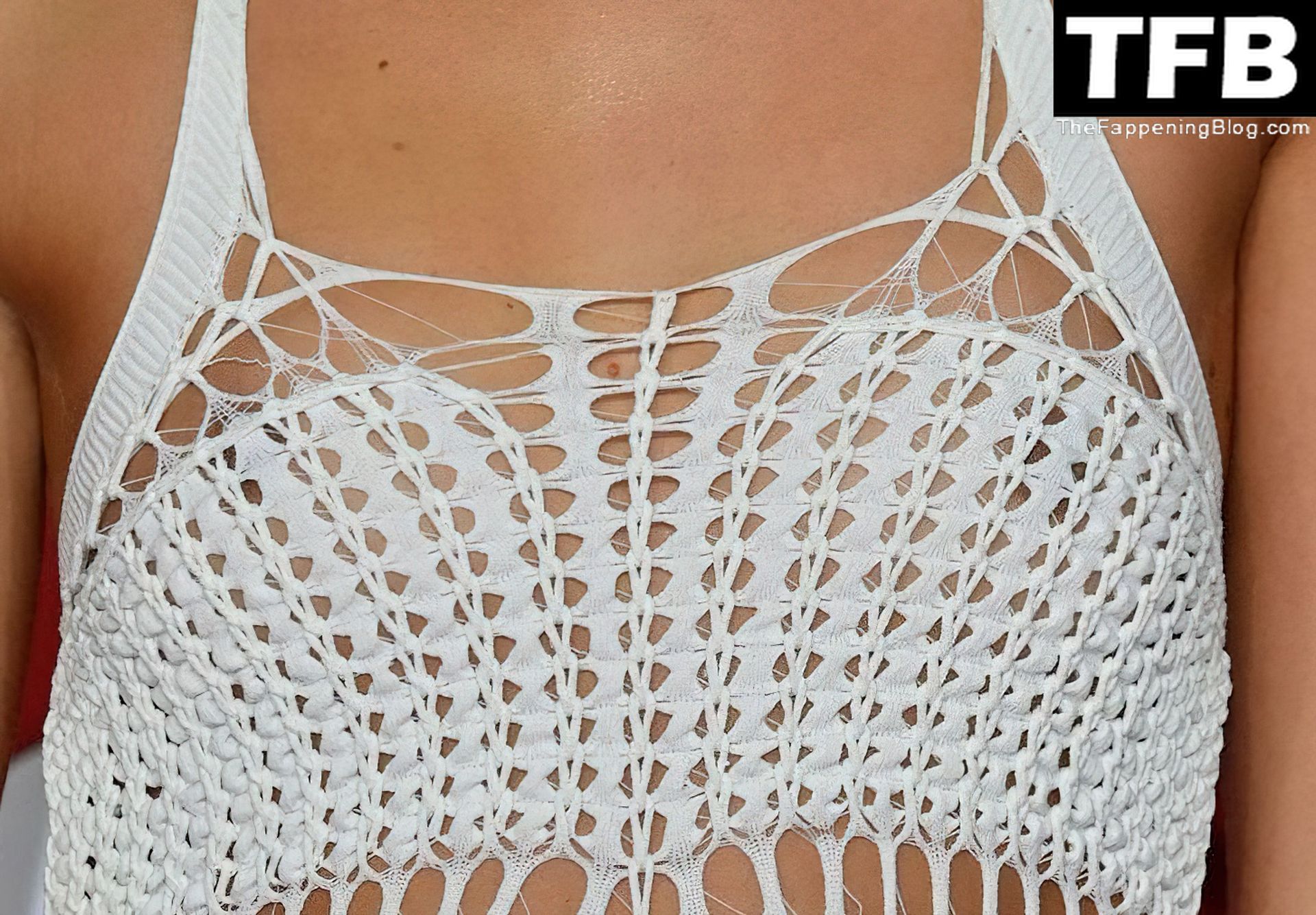 La modella inglese Mia Regan posa con un abito trasparente per i Fashion Awards 2022 al Royal Albert Hall di Londra, 12/05/2022.
