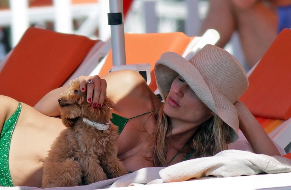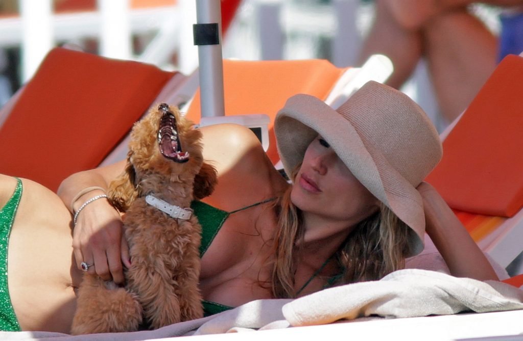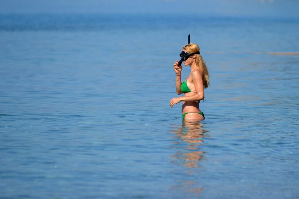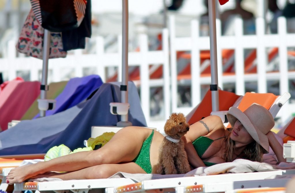 Michelle Hunziker è stata avvistata in bikini verde con il suo cane sulla spiaggia di Varigotti, Italia, 13/05/2018. Michelle Hunziker è un’attrice svizzero/italiana (Antichi Guerrieri), cantante e modella. Nata: 24 gennaio 1977.