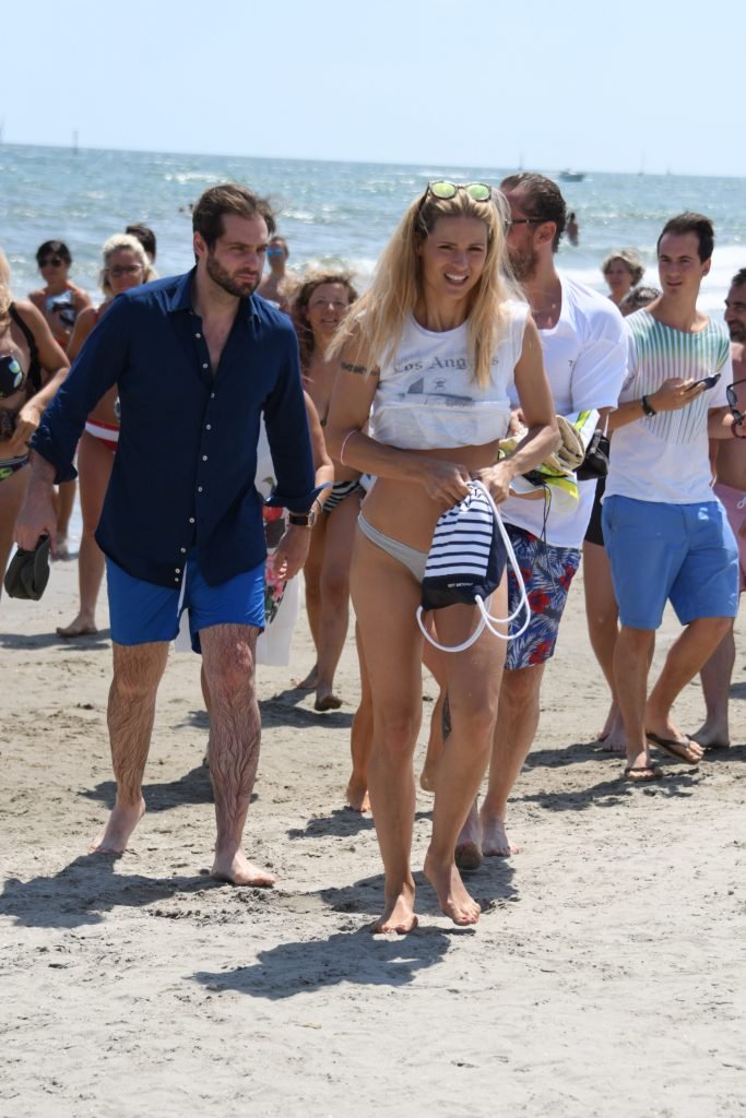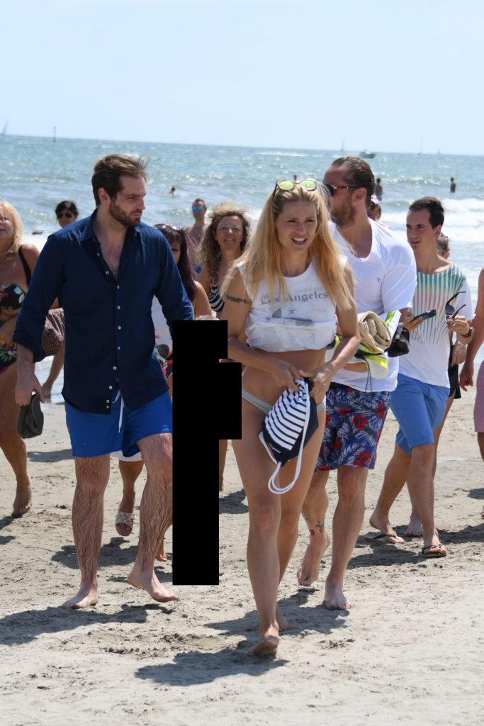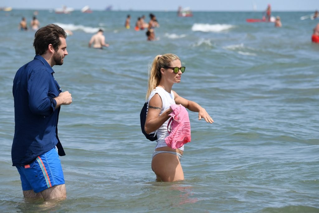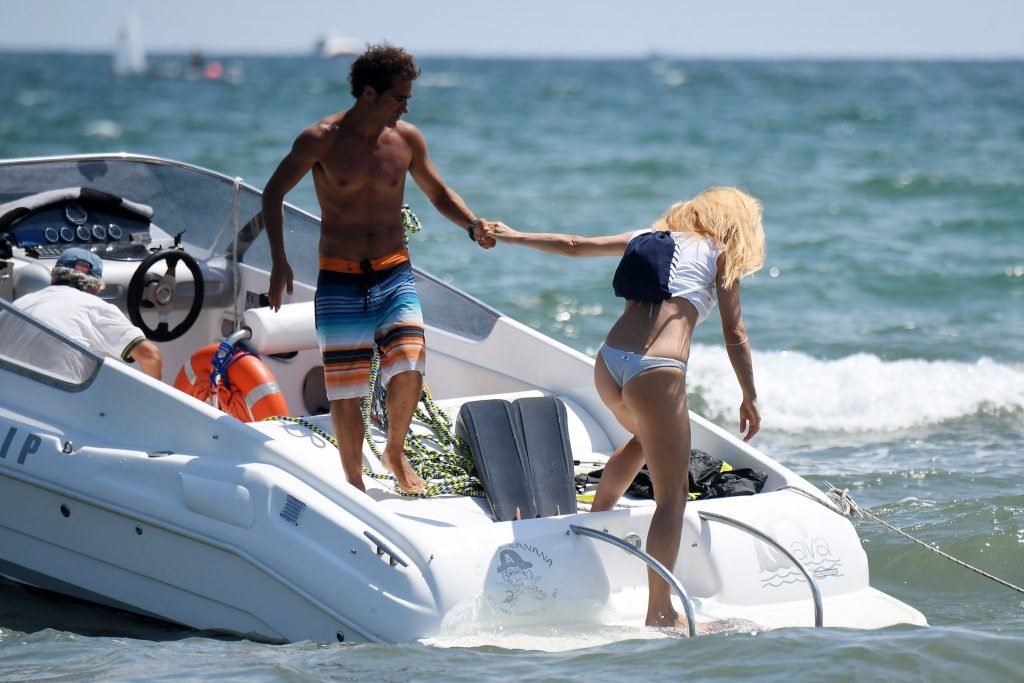 Michelle Hunziker e Tomaso Trussardi sono stati visti dopo un giro in barca a Milano Marittima, Italia, 07/08/2018. La milf bionda ha mostrato il suo bellissimo corpo in bikini sulla spiaggia.