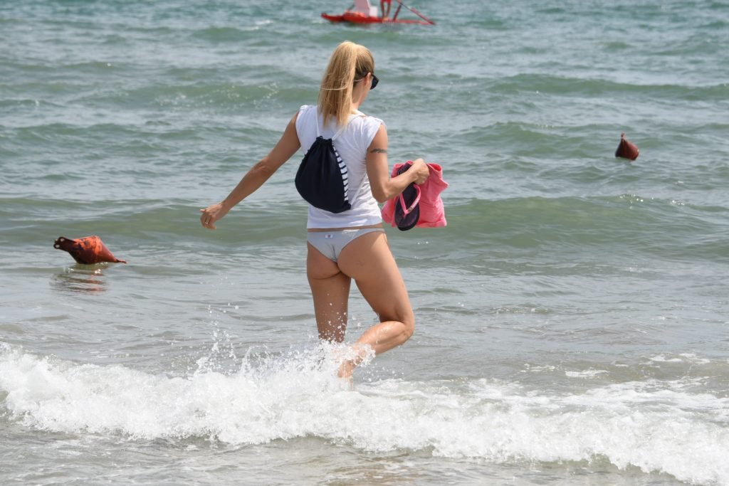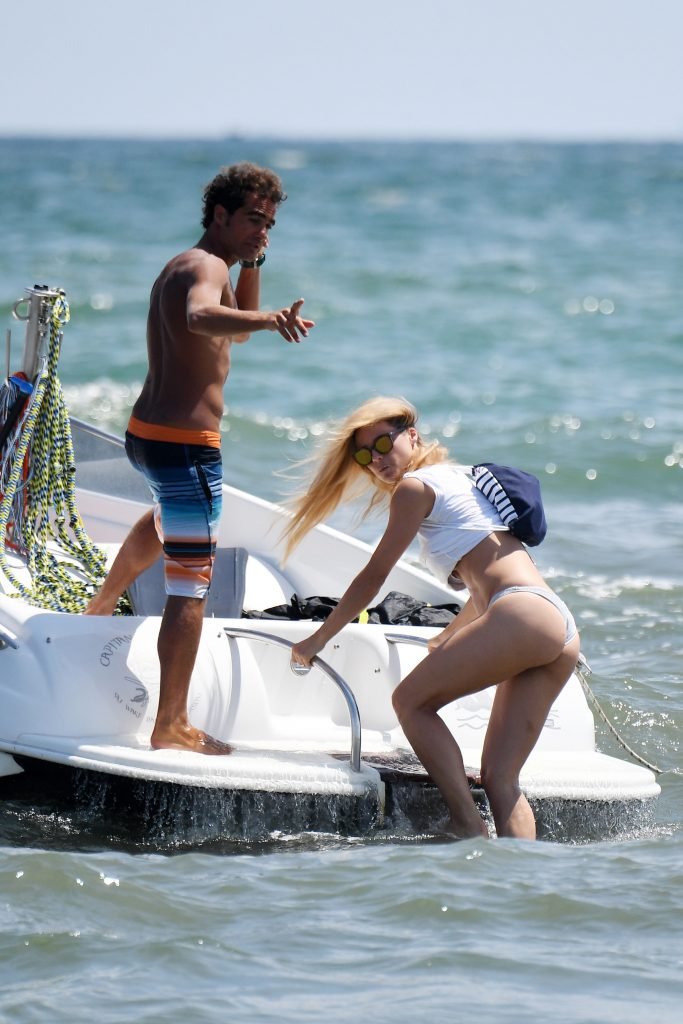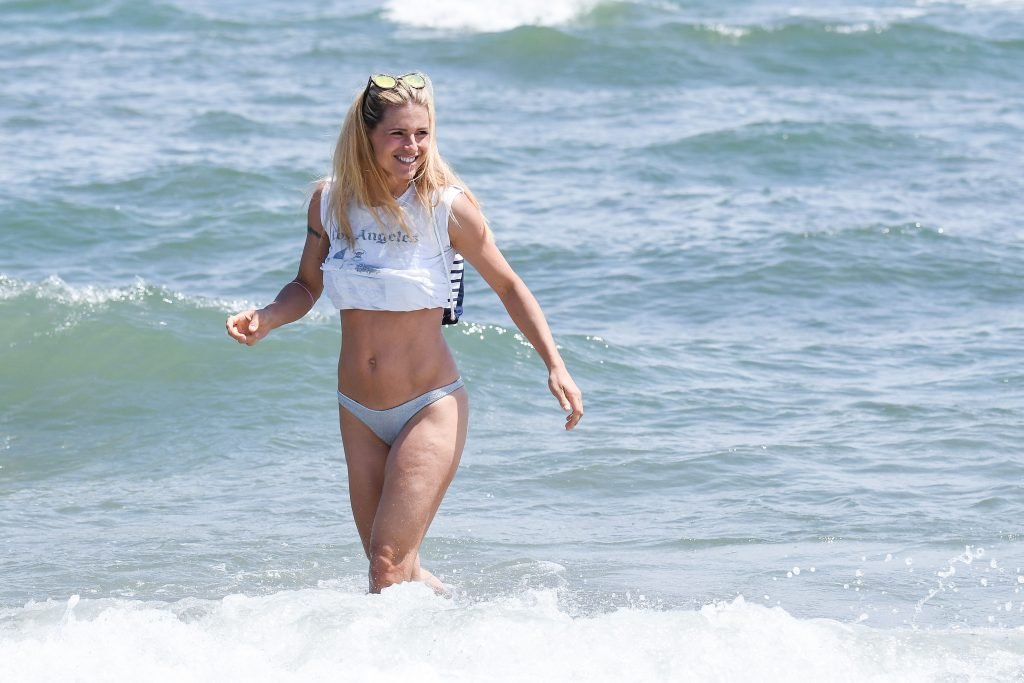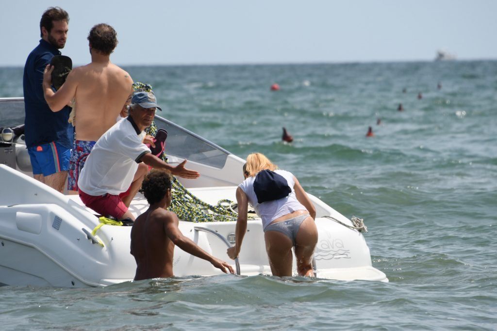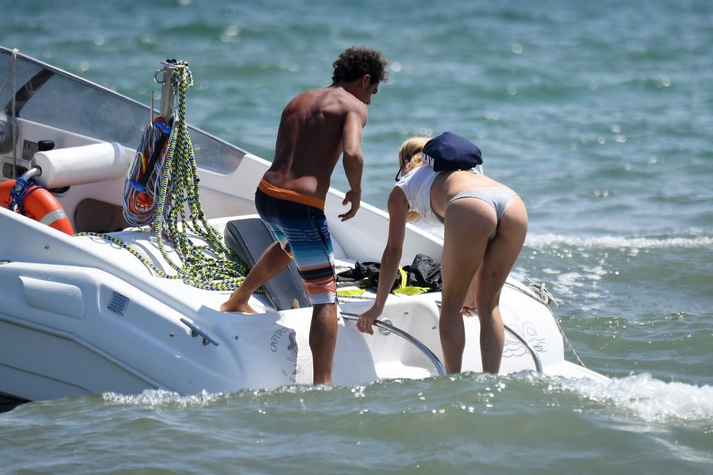 Michelle Hunziker e Tomaso Trussardi sono stati visti dopo un giro in barca a Milano Marittima, Italia, 07/08/2018. La milf bionda ha mostrato il suo bellissimo corpo in bikini sulla spiaggia.
