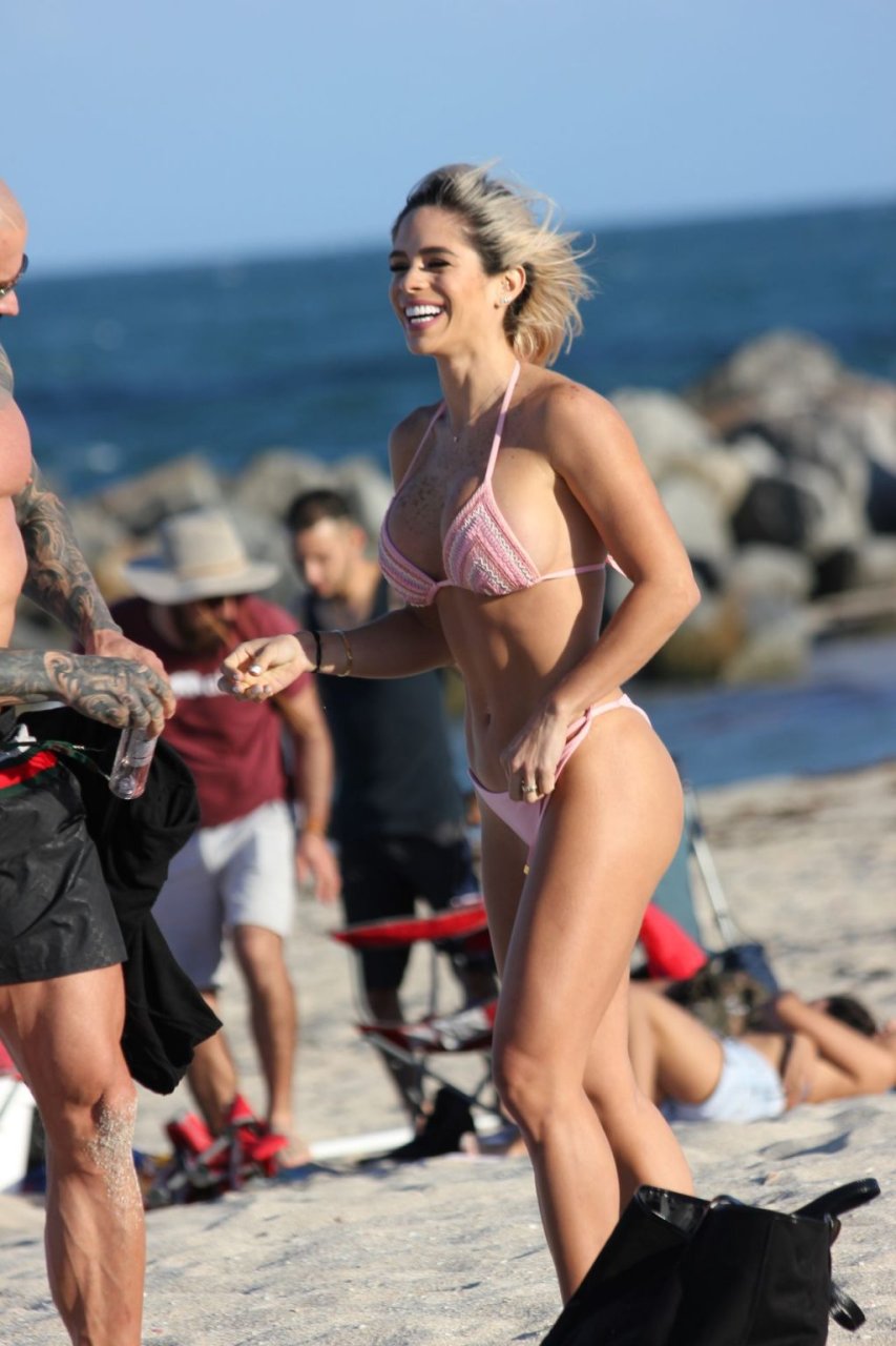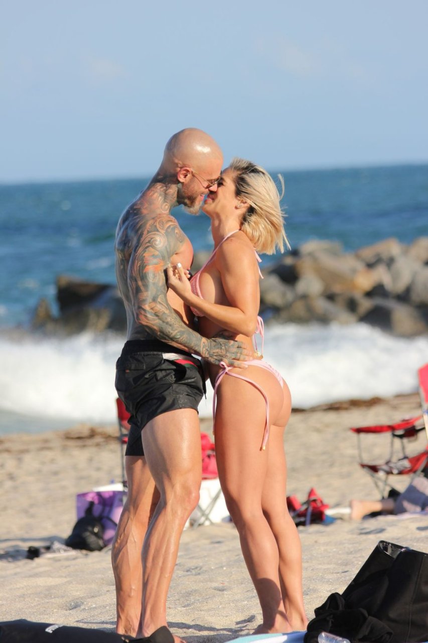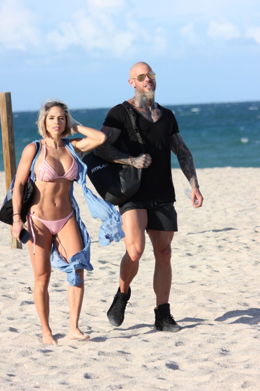 Michelle Lewin, una delle stelle del fitness più ricercate al mondo, è stata vista con suo marito e allenatore Jimmy mentre si godevano una giornata lontano dal suo fitto programma di viaggi sulla spiaggia di Miami Beach, 27/03/2019.