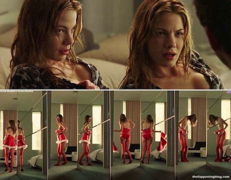 Michelle entra in un’altra stanza mentre si toglie un vestito rosso natalizio per rivelare il seno e il sedere con mutandine rosse, poi si siede su un letto e si toglie le calze a rete rosse prima di infilarsi sotto le coperte, tutto mentre parla con un uomo e ci mostra ancora un po’ di décolleté e un altro breve scorcio del suo capezzolo.