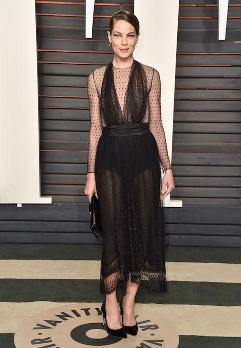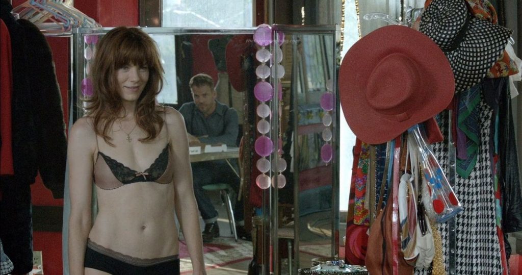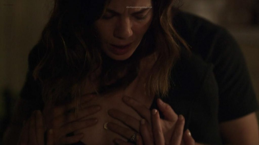 Michelle Monaghan litiga con un uomo indossando un vestito scollato che mostra un po’ di décolleté finché il suo capezzolo destro non spunta fuori dal vestito mentre un uomo non riesce a smettere di guardarlo.