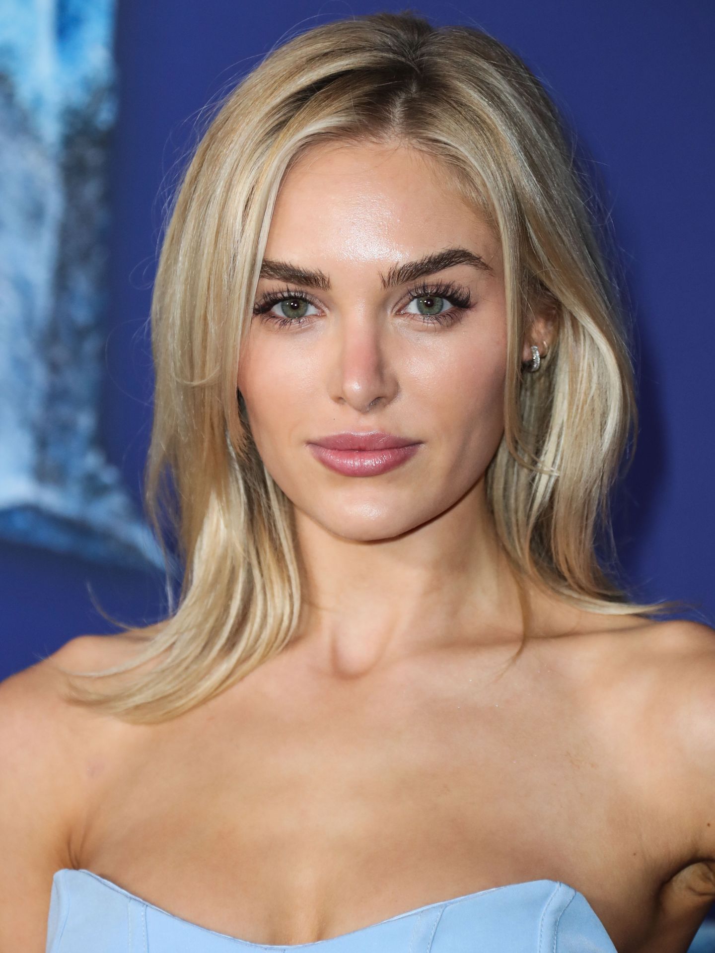 Attrice e modella Michelle Randolph (22) è stata fotografata con un vestito blu scivolato sulle spalle alla prima di “Frozen 2” della Disney al Dolby Theatre di Hollywood, California, 07/11/2019.