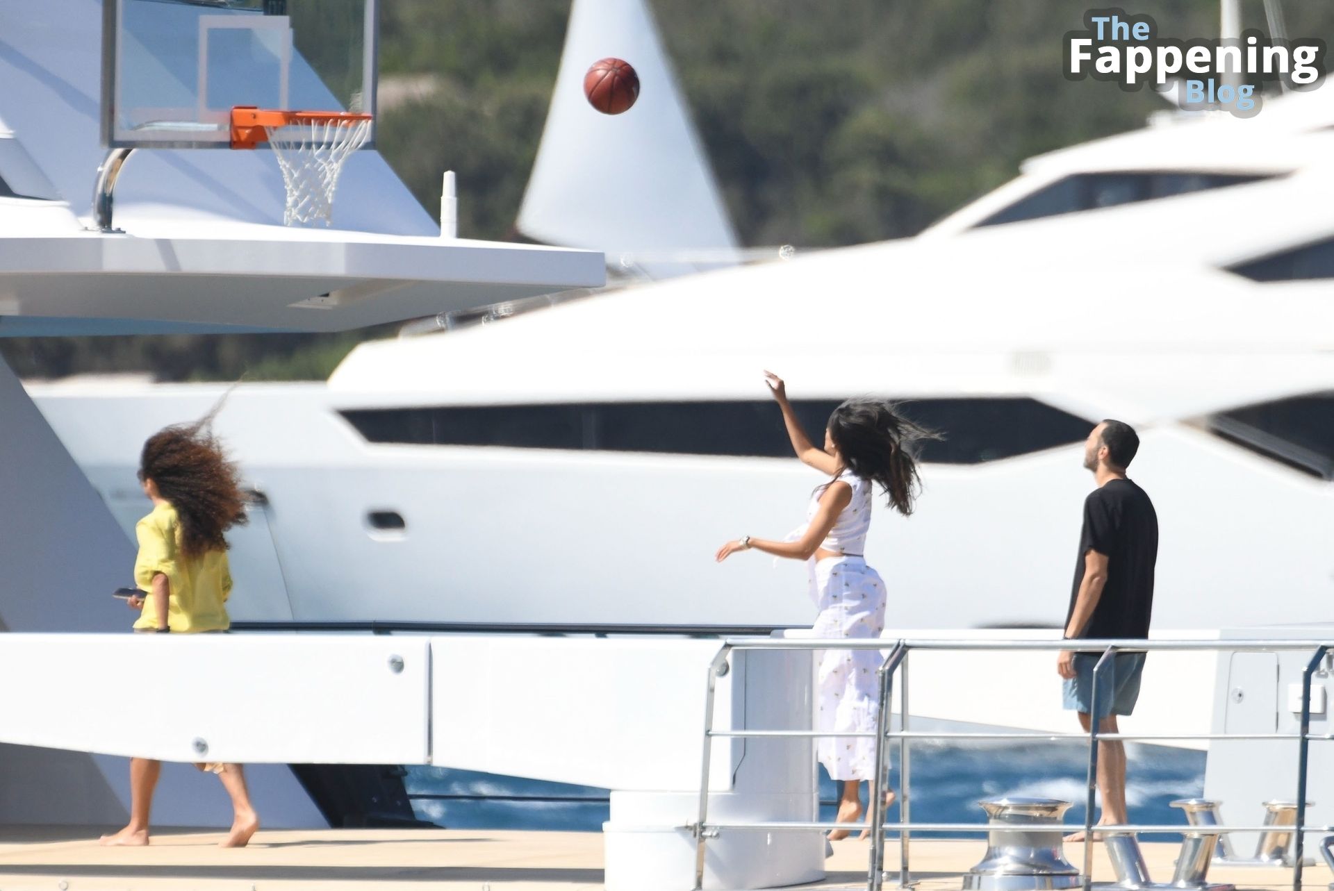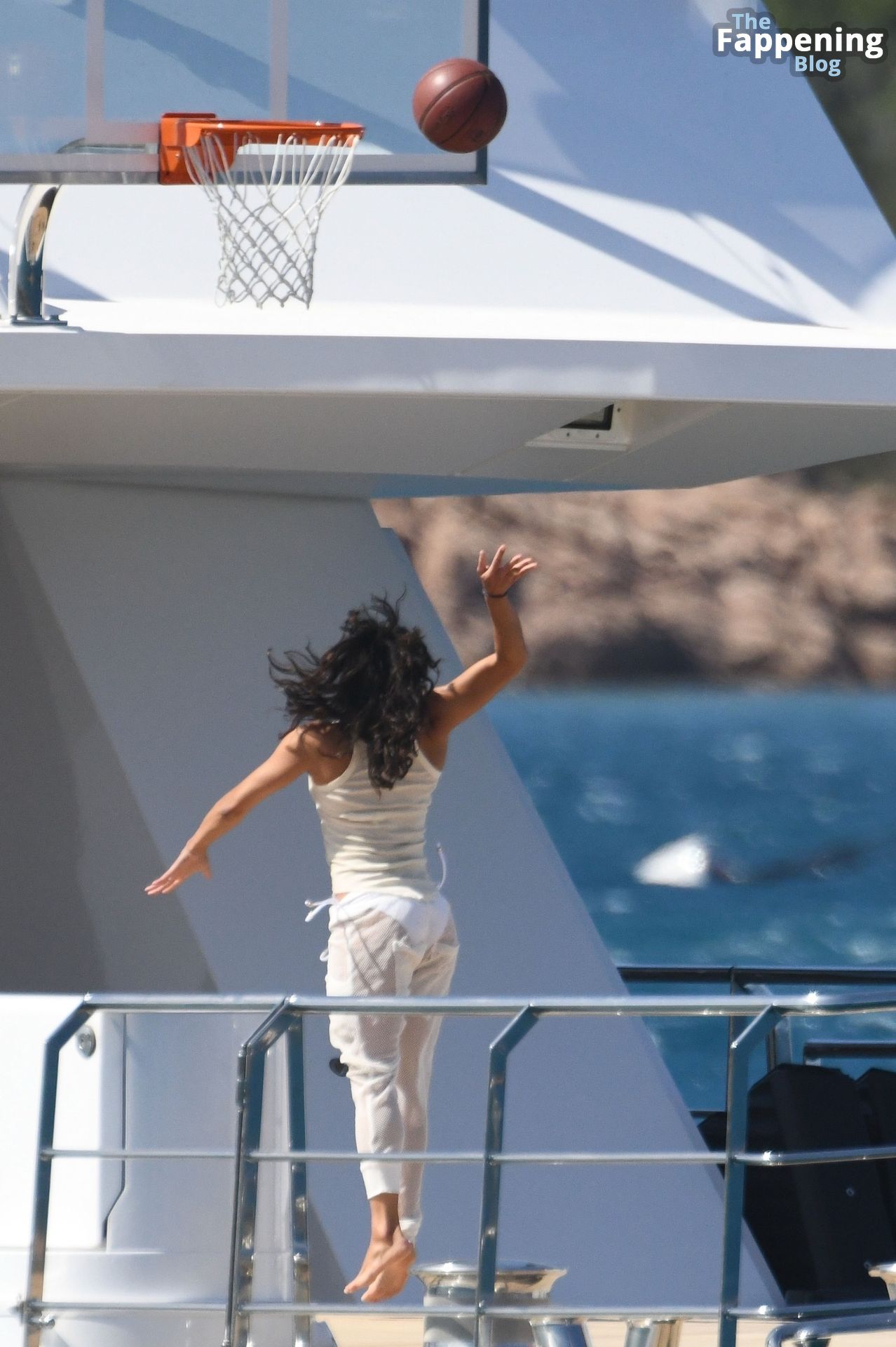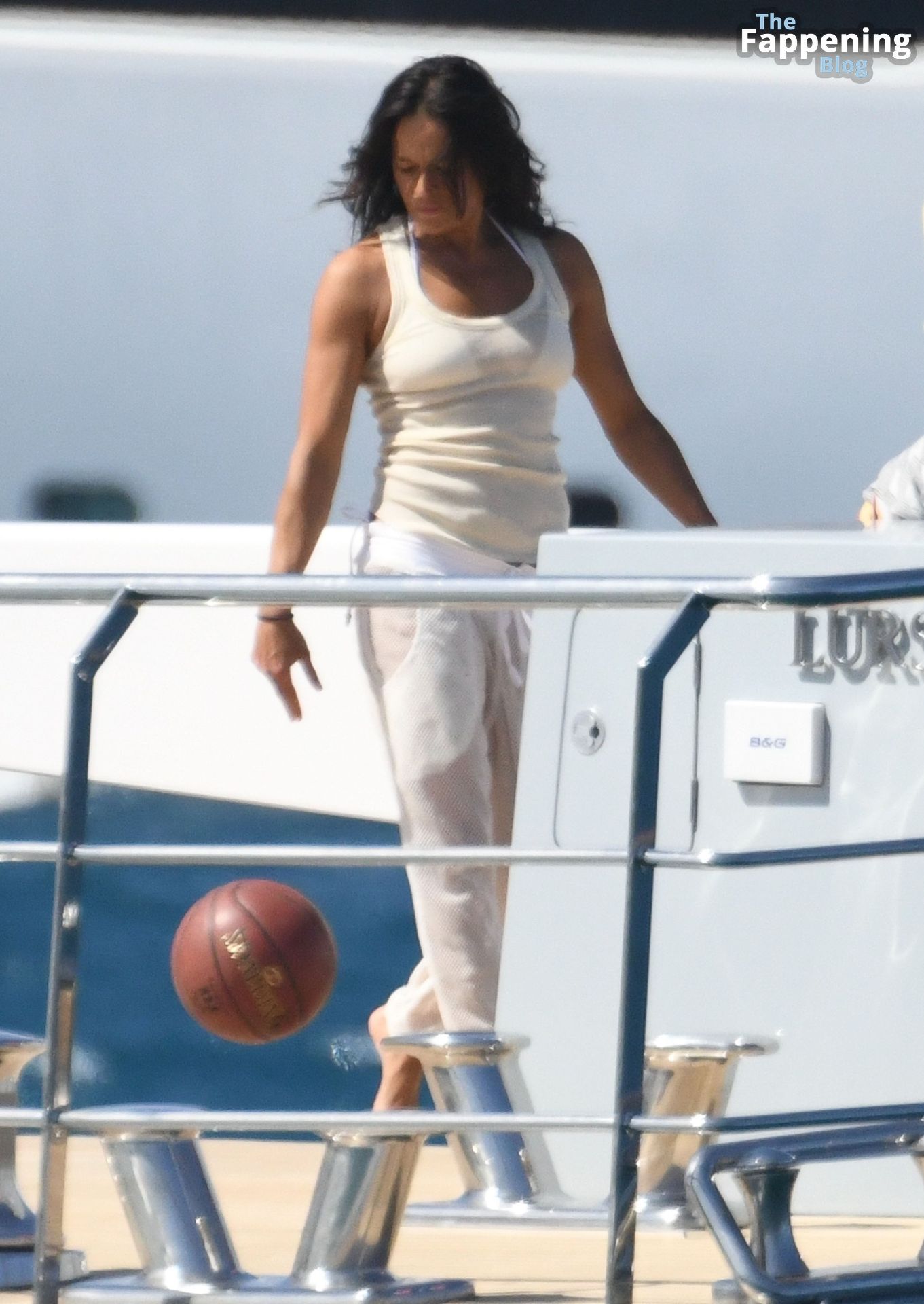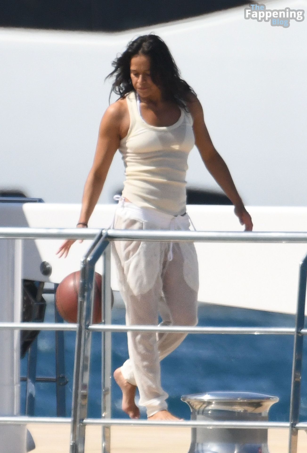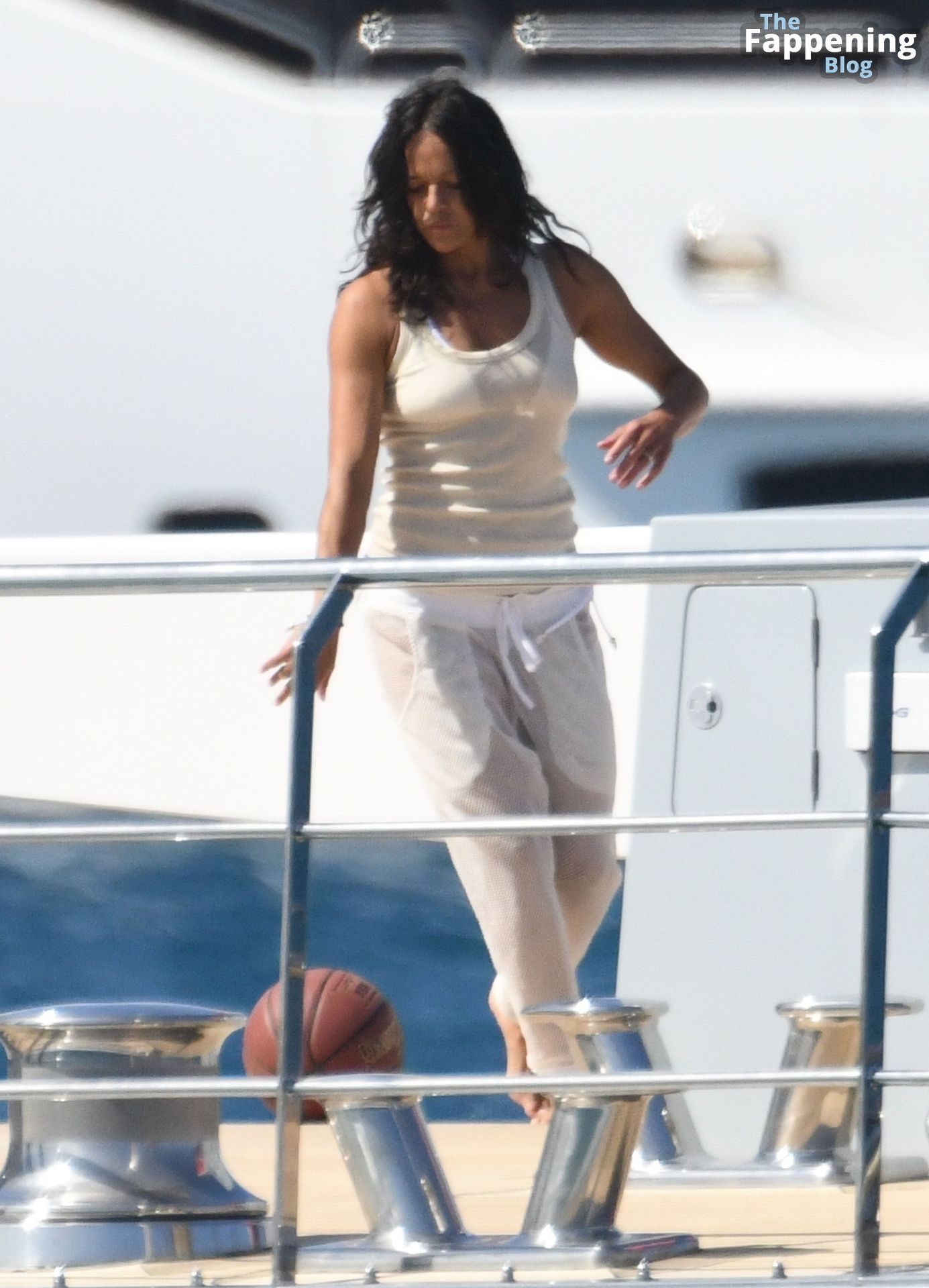 Purtroppo per Michelle, il divertimento con il basket è finito quando la palla è rotolata in mare, ma Eiza è intervenuta in soccorso tuffandosi in acqua per recuperare la palla; poi Eiza è tornata sullo yacht per fare una doccia, mostrando il suo fisico sexy.
