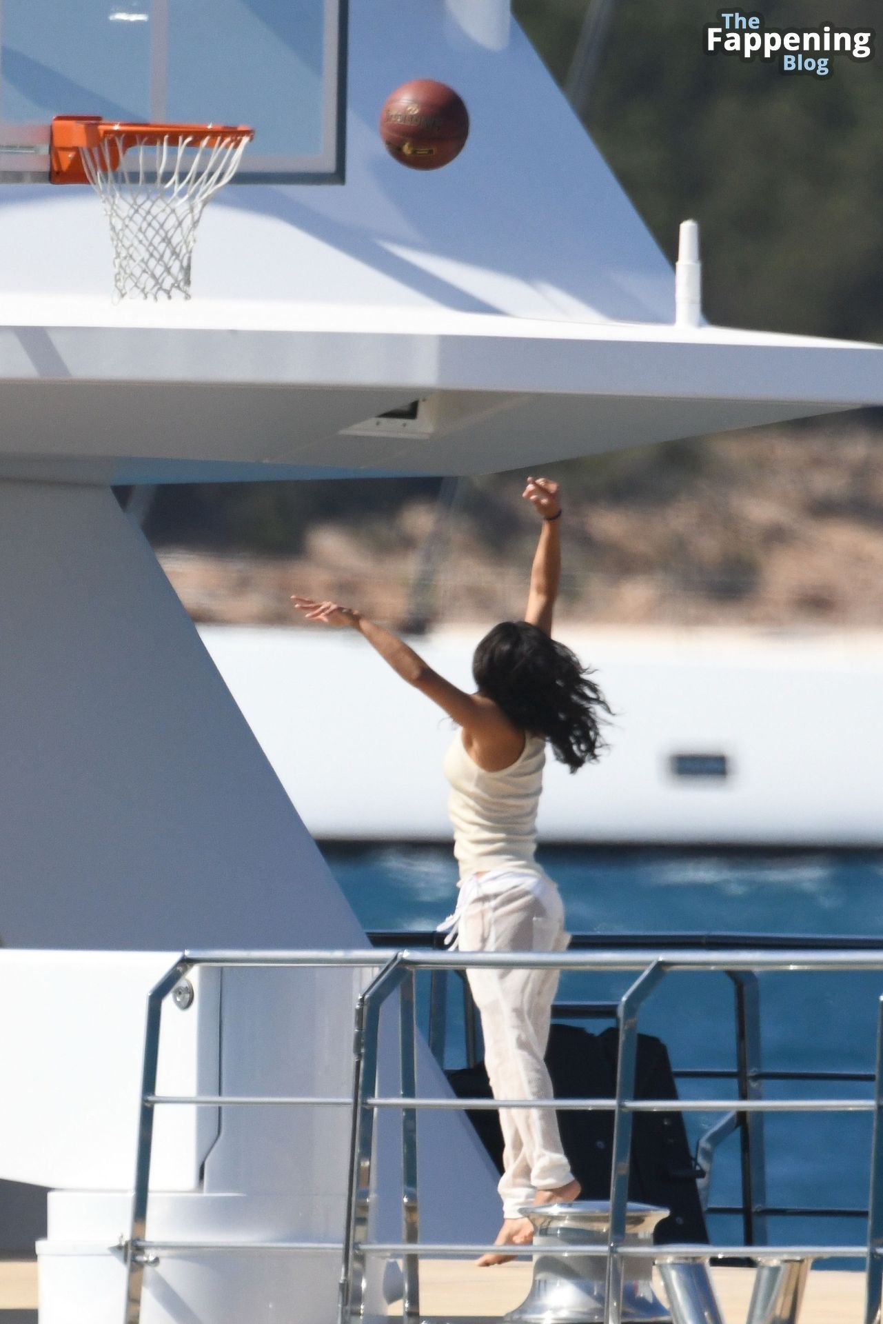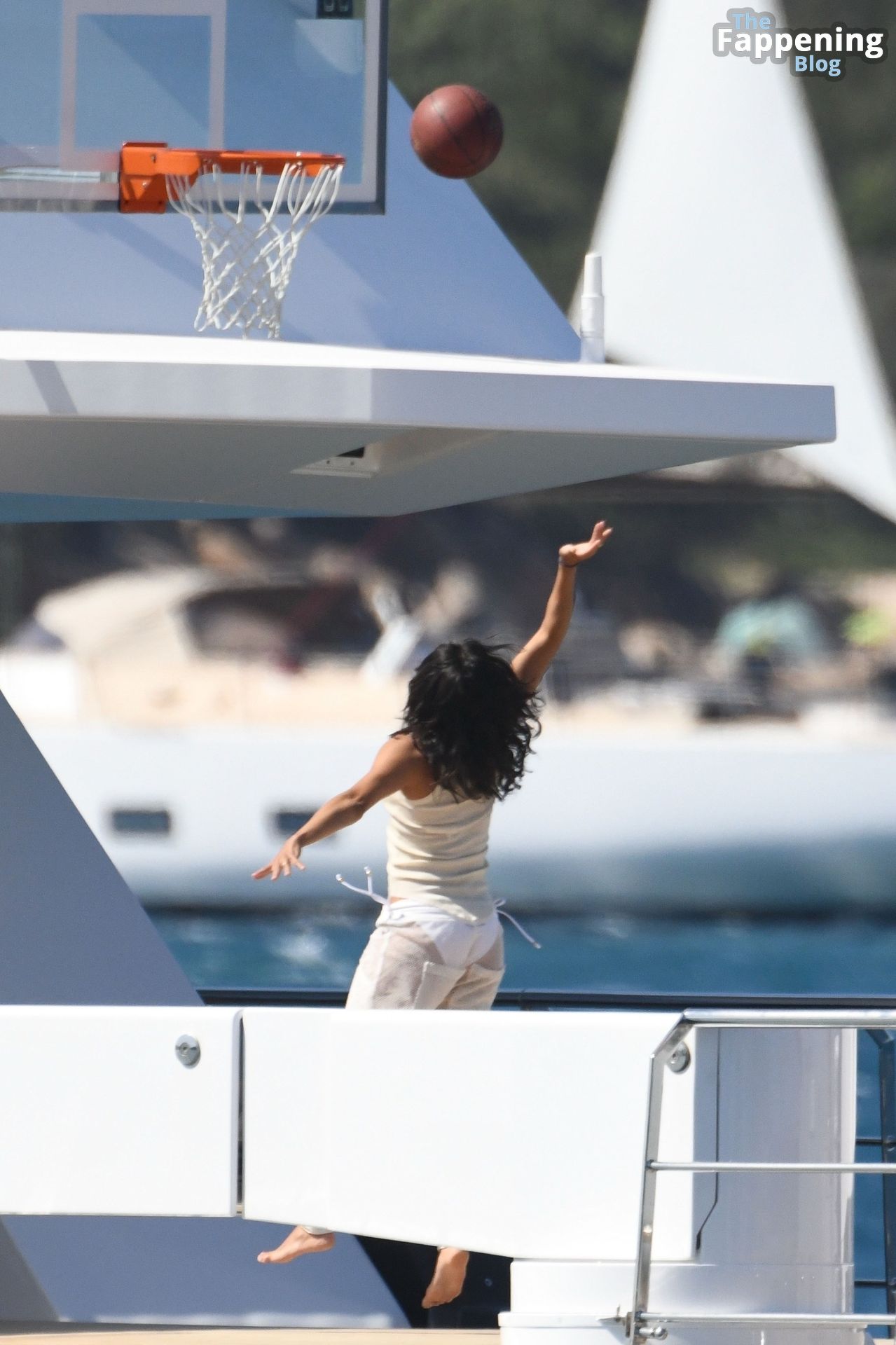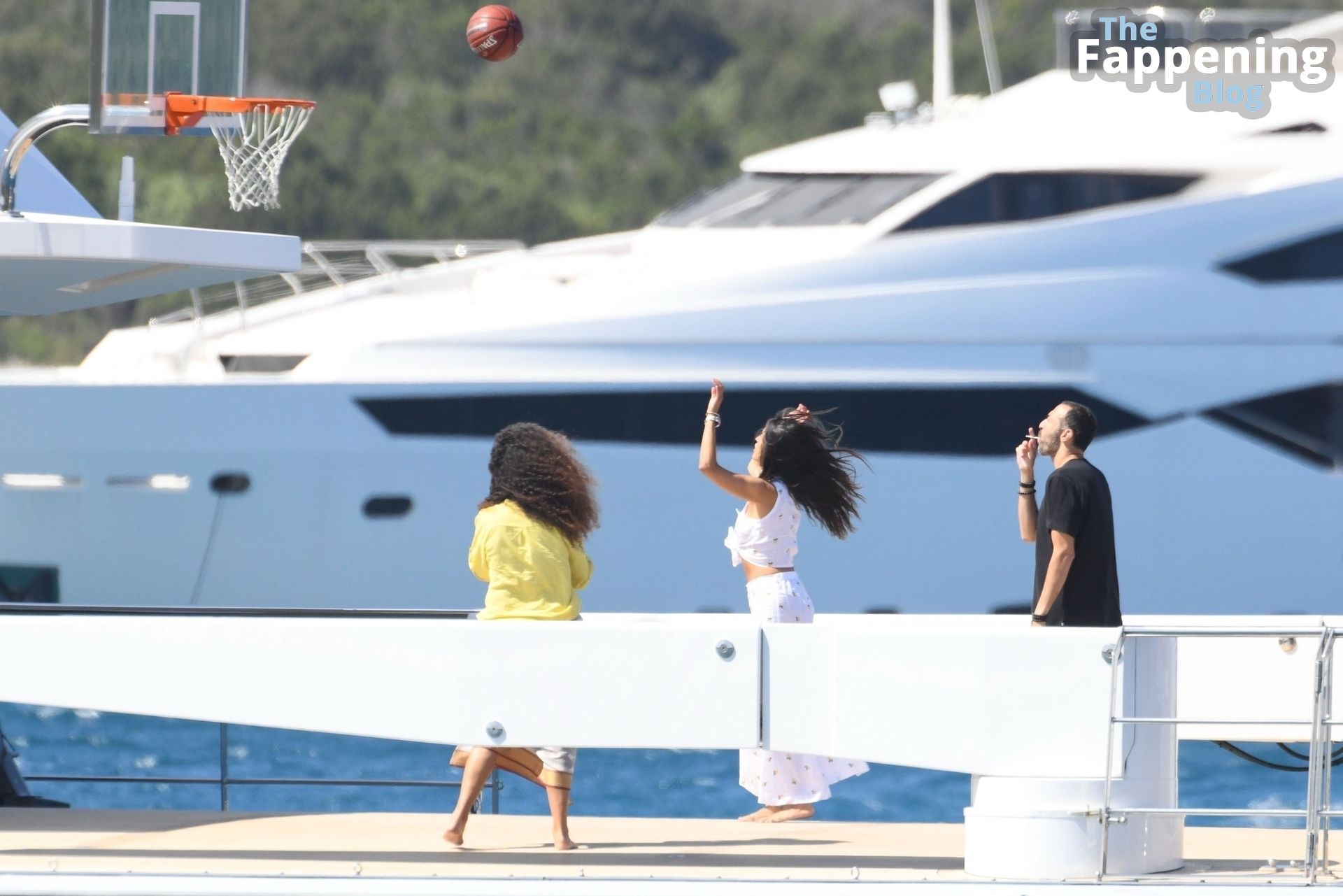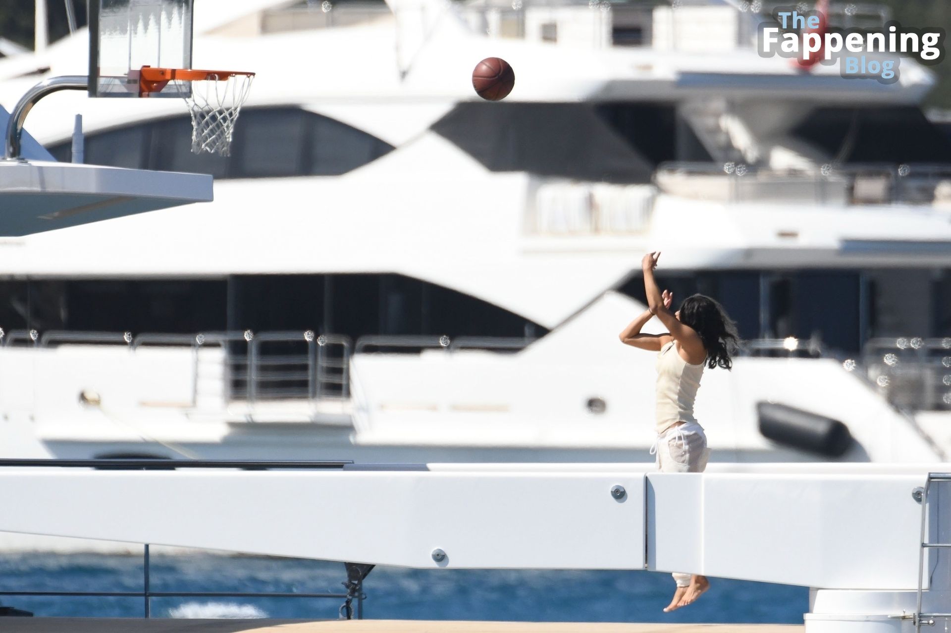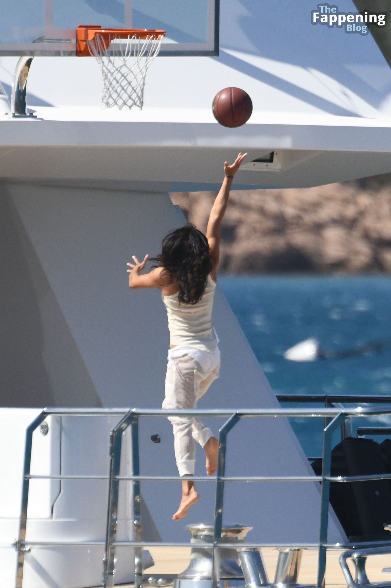 Purtroppo per Michelle, il divertimento con il basket è finito quando la palla è rotolata in mare, ma Eiza è intervenuta in soccorso tuffandosi in acqua per recuperare la palla; poi Eiza è tornata sullo yacht per fare una doccia, mostrando il suo fisico sexy.