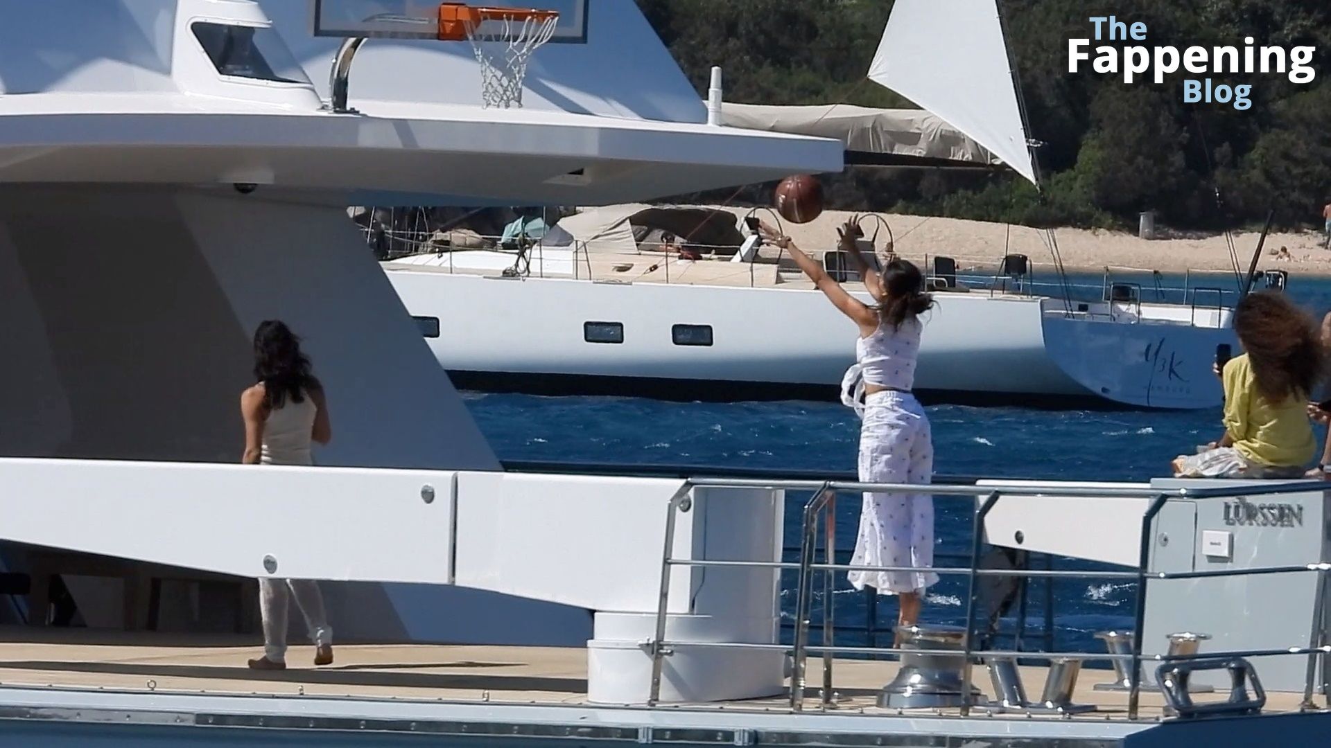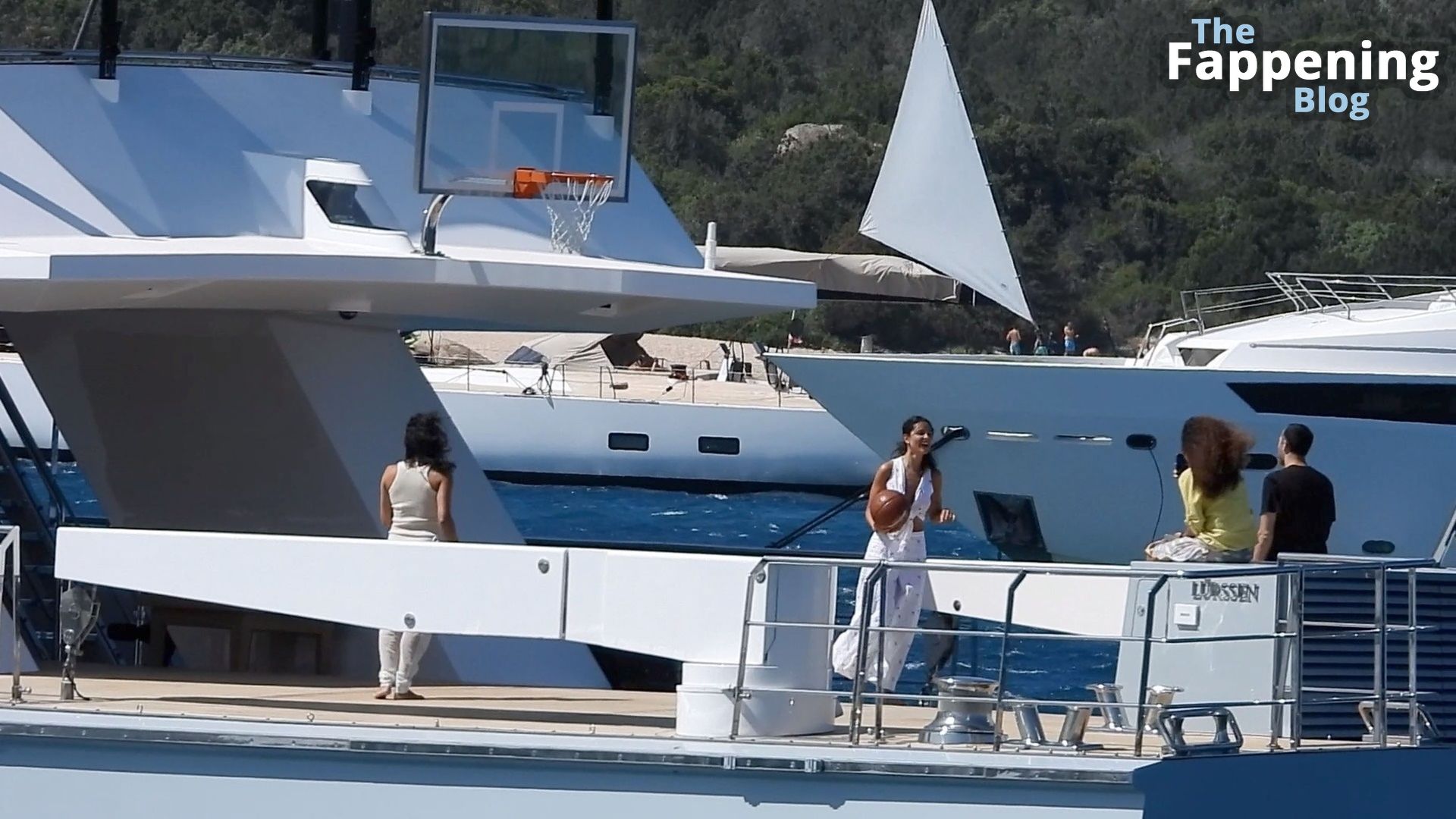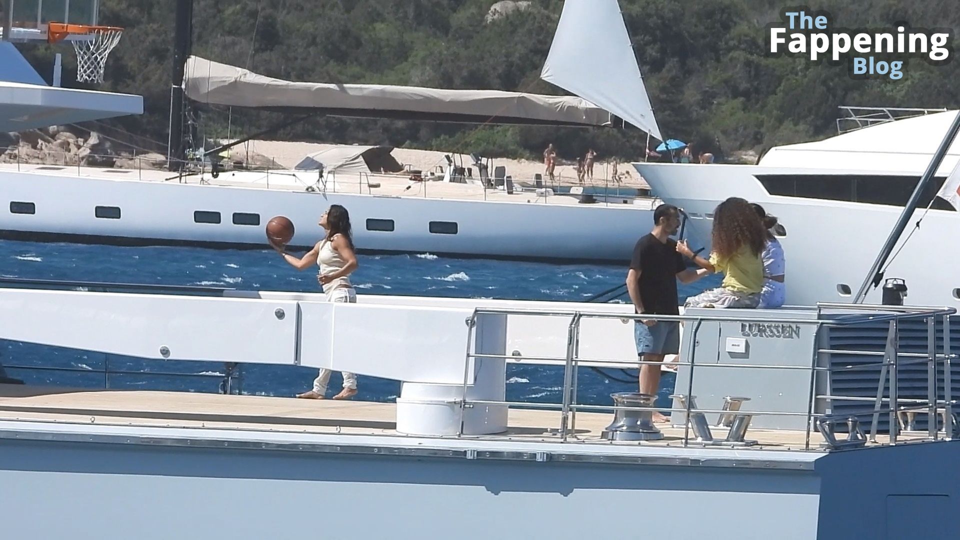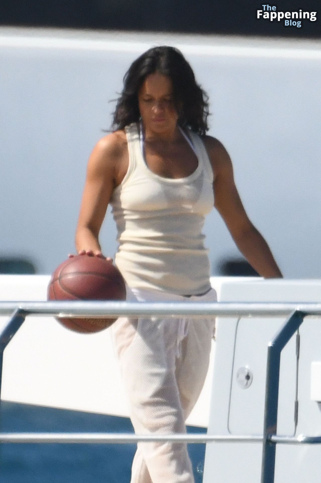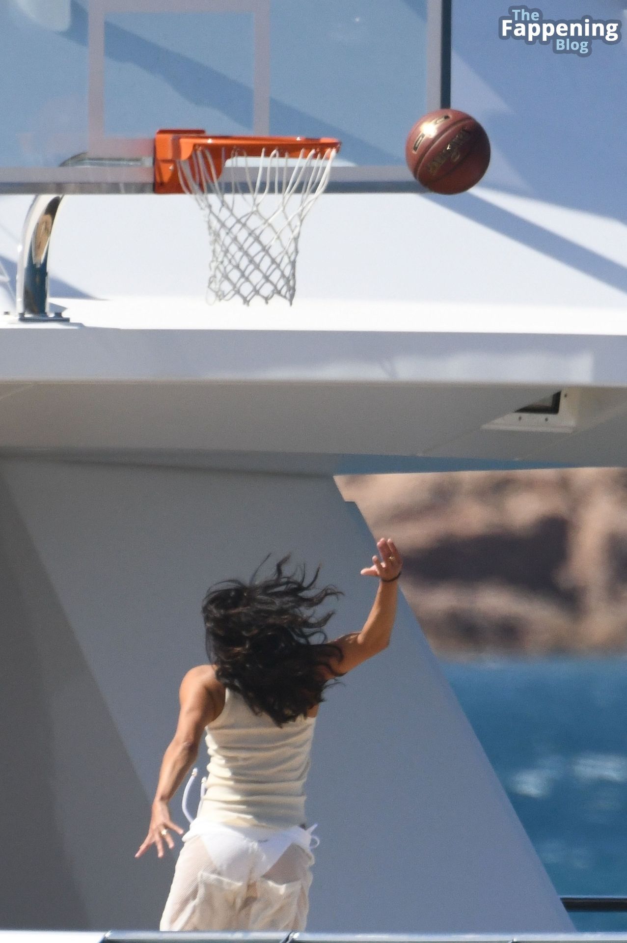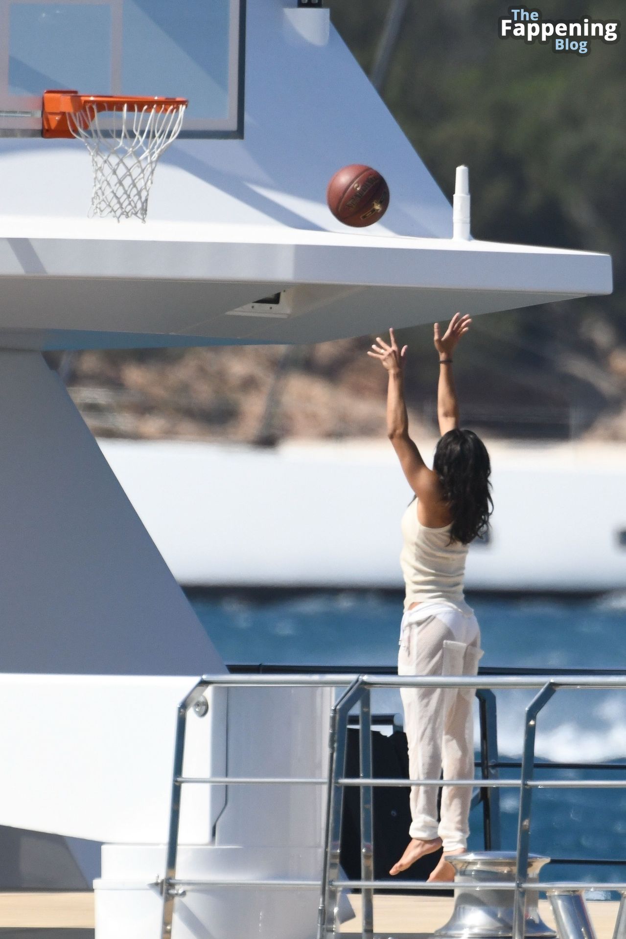 Purtroppo per Michelle, il divertimento con il basket è finito quando la palla è rotolata in mare, ma Eiza è intervenuta in soccorso tuffandosi in acqua per recuperare la palla; poi Eiza è tornata sullo yacht per fare una doccia, mostrando il suo fisico sexy.