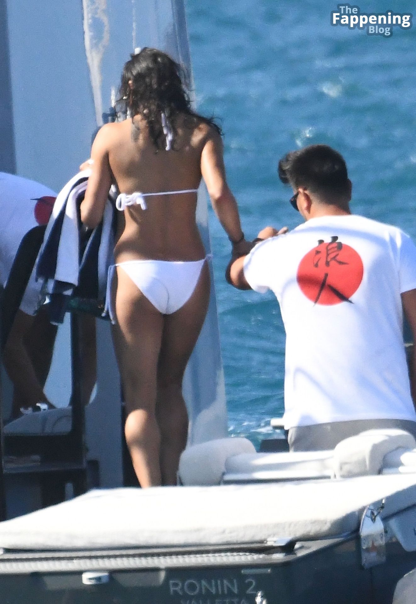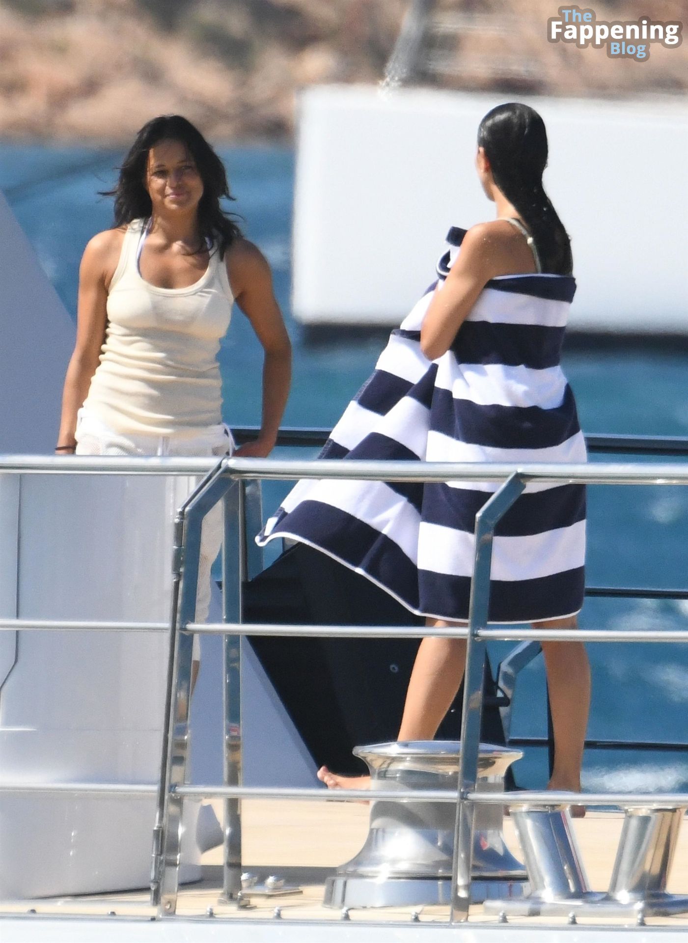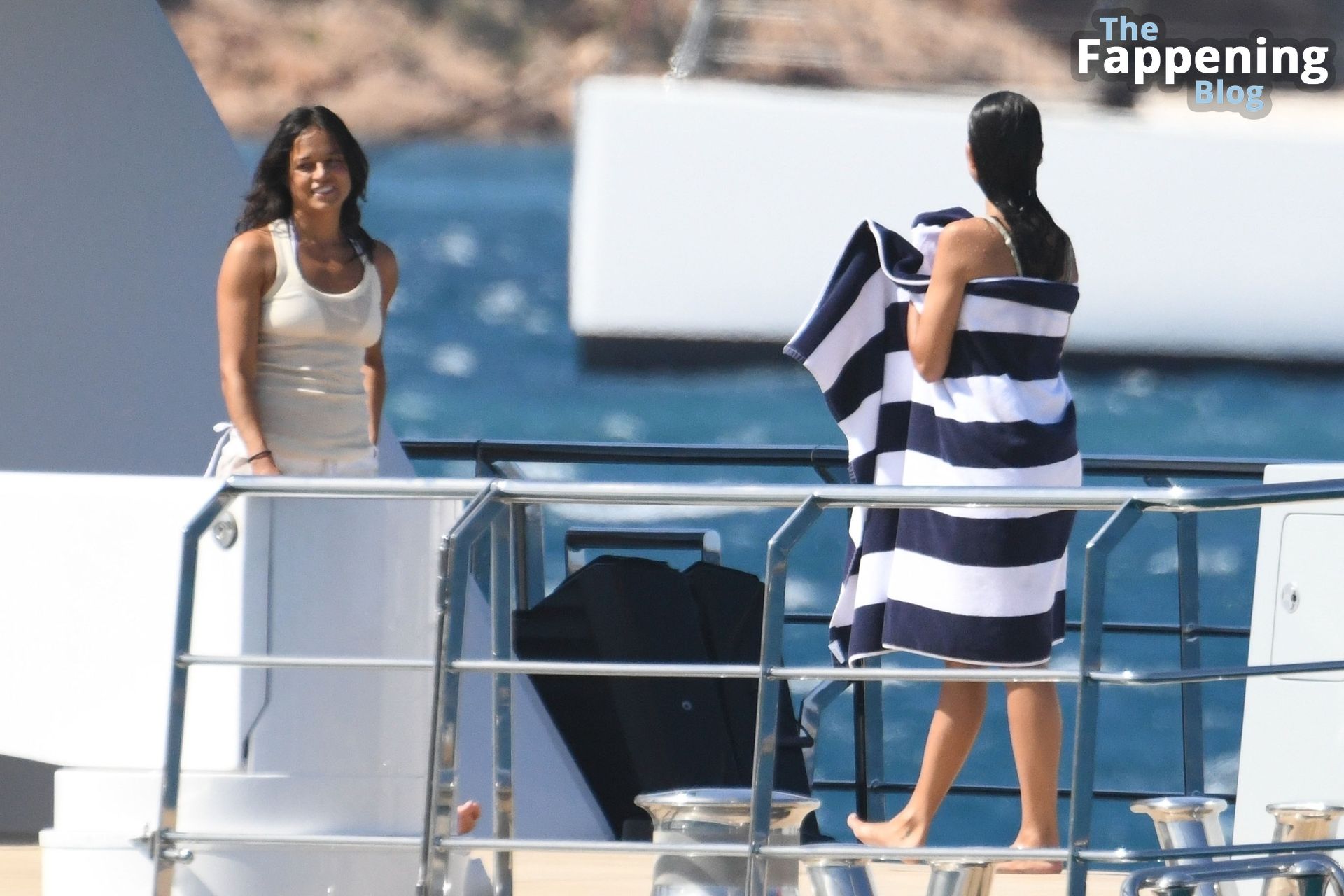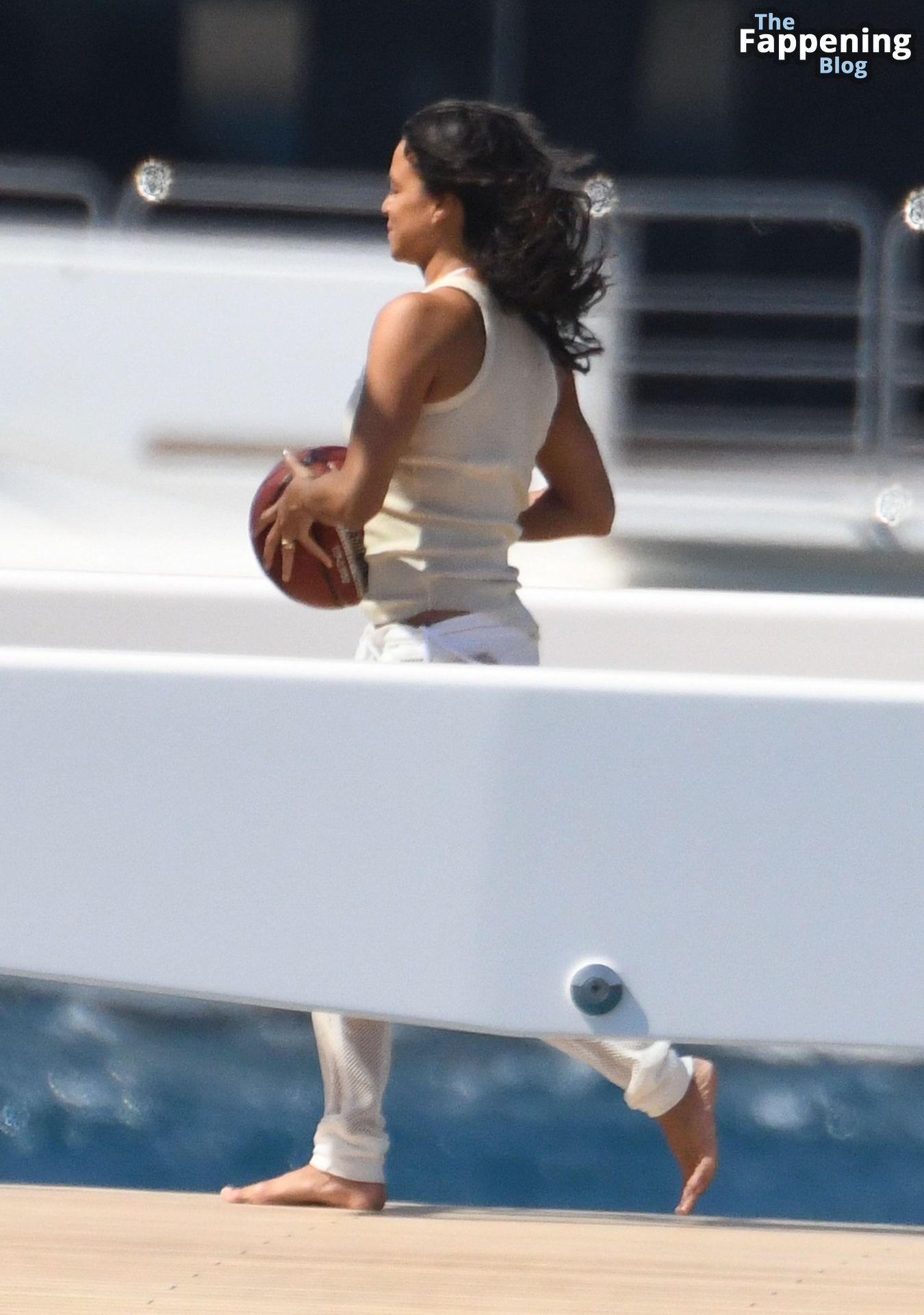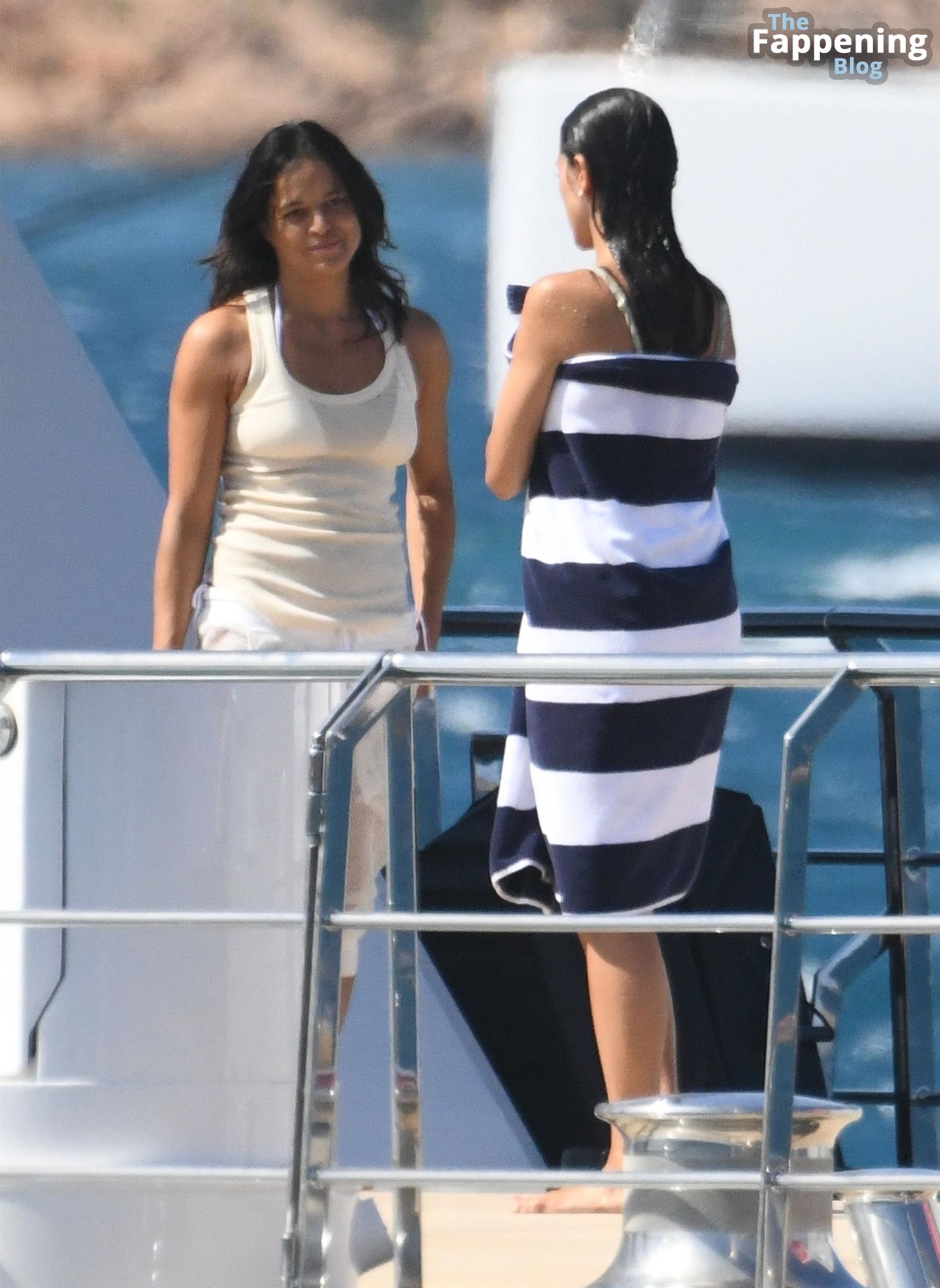 Purtroppo per Michelle, il divertimento con il basket è finito quando la palla è rotolata in mare, ma Eiza è intervenuta in soccorso tuffandosi in acqua per recuperare la palla; poi Eiza è tornata sullo yacht per fare una doccia, mostrando il suo fisico sexy.